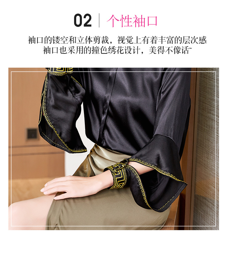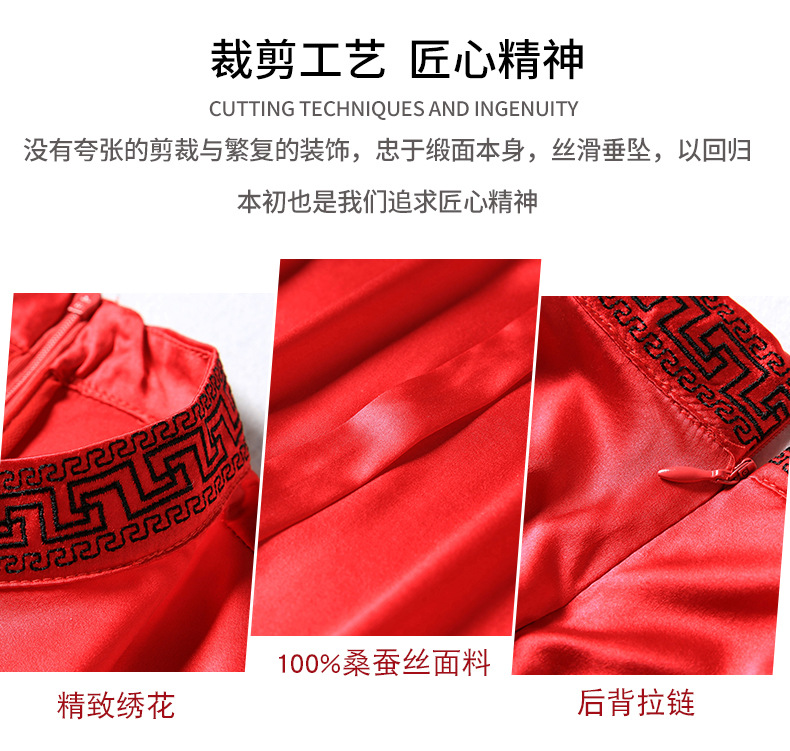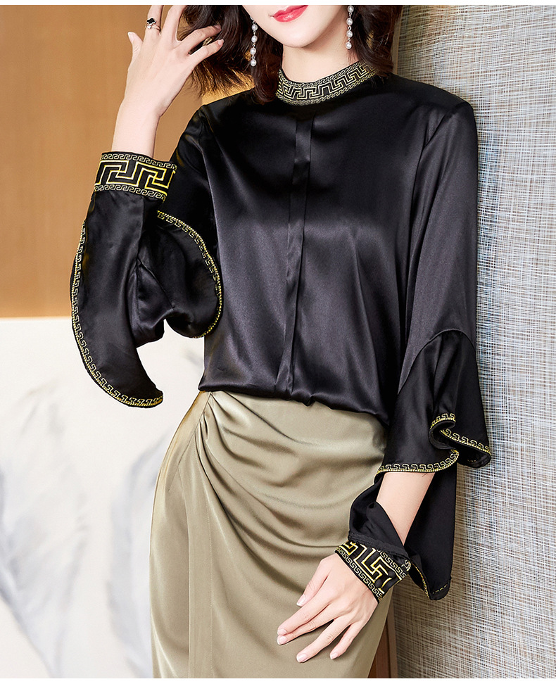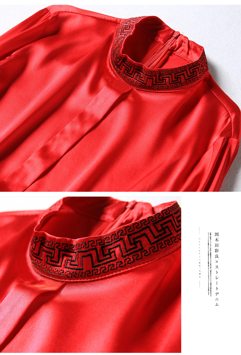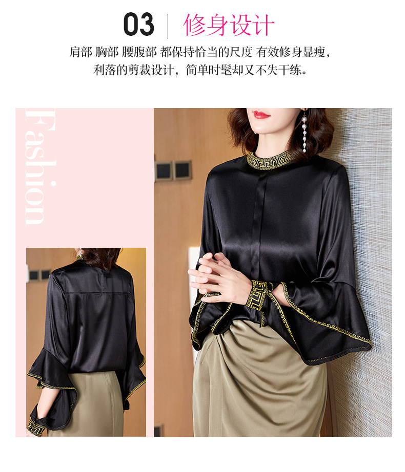 NYT-YR040春夏新款时尚刺绣立领真丝弹力缎衬衣