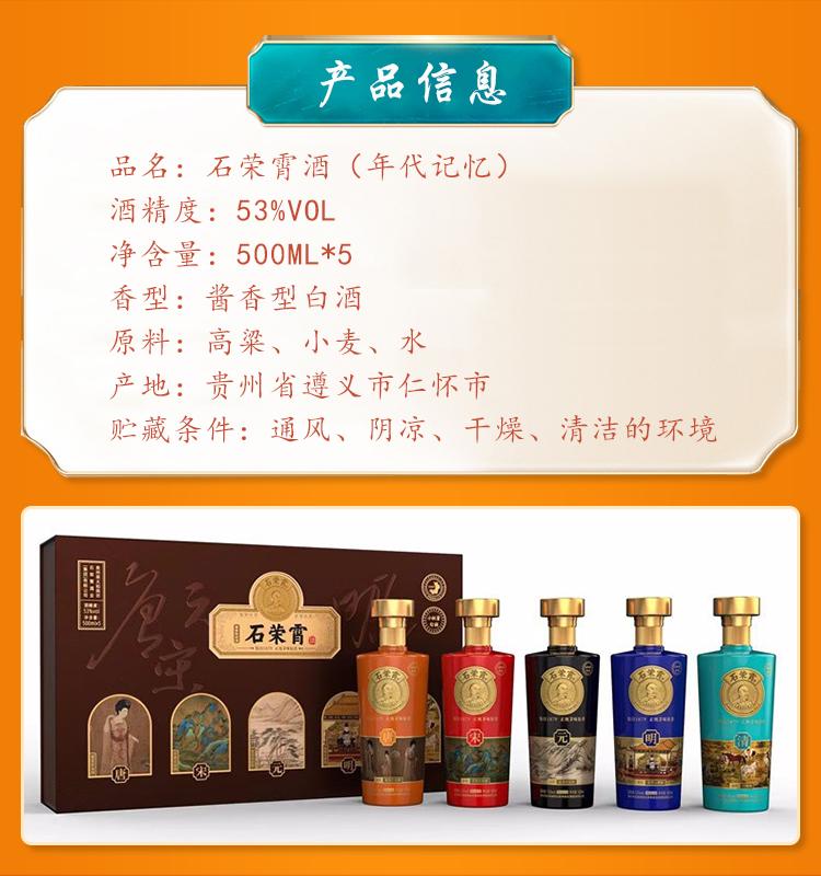 【清仓包装不好】茅台镇 石荣霄 唐宋元明清 礼盒装 酱香型 53度 500ml*5