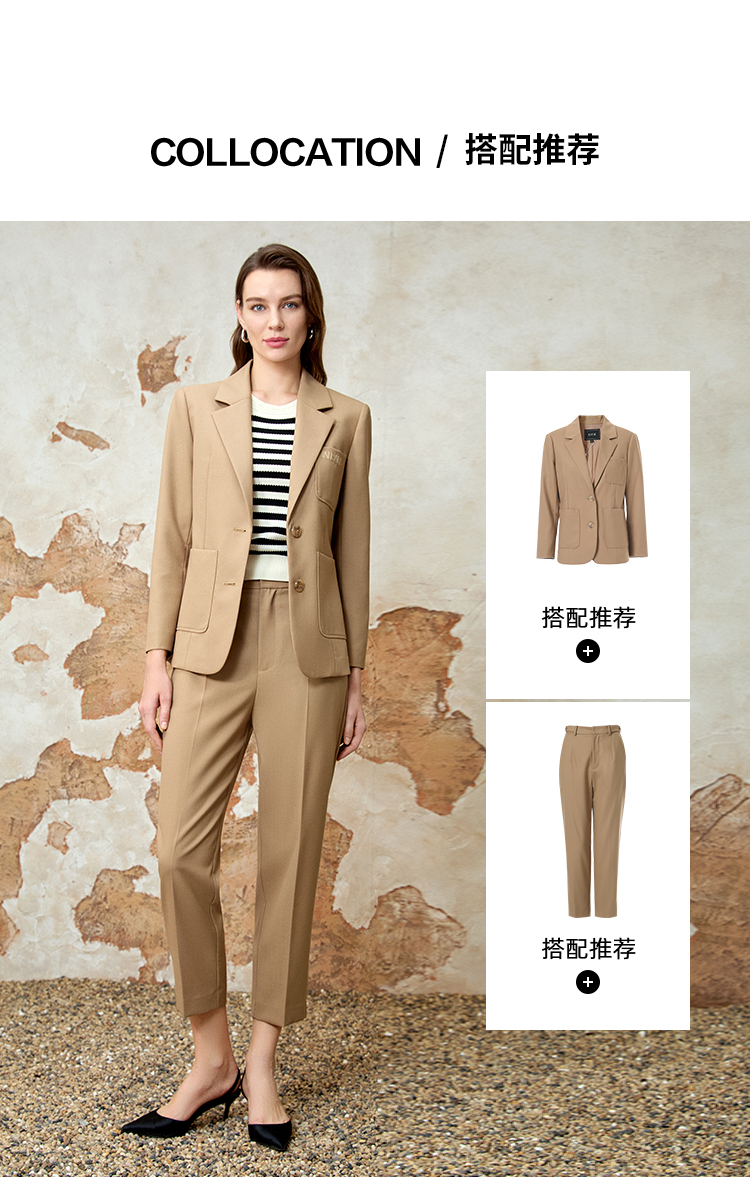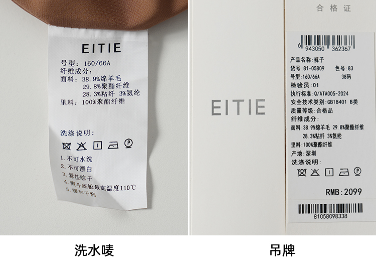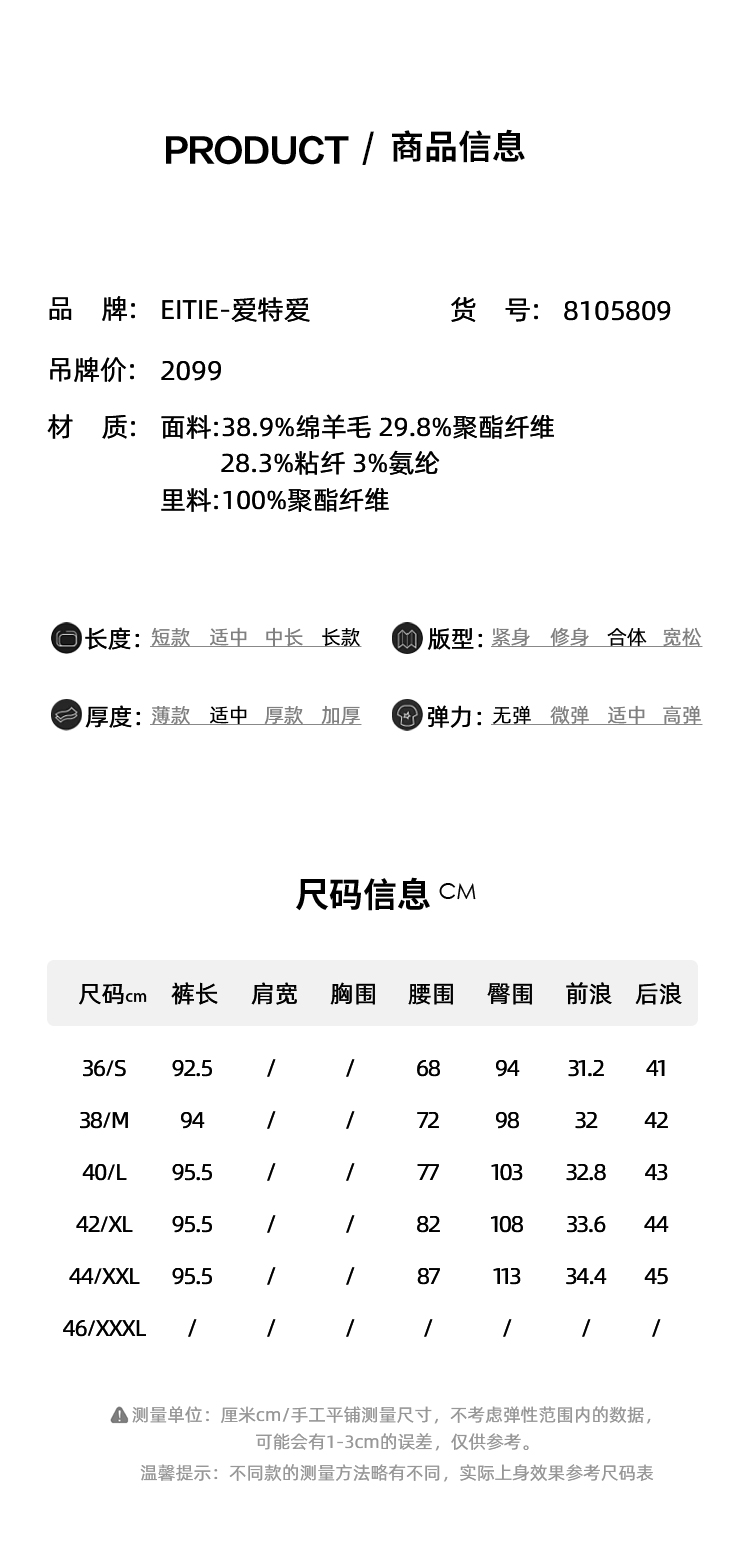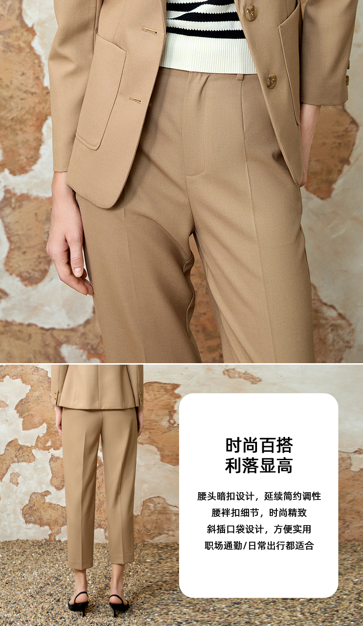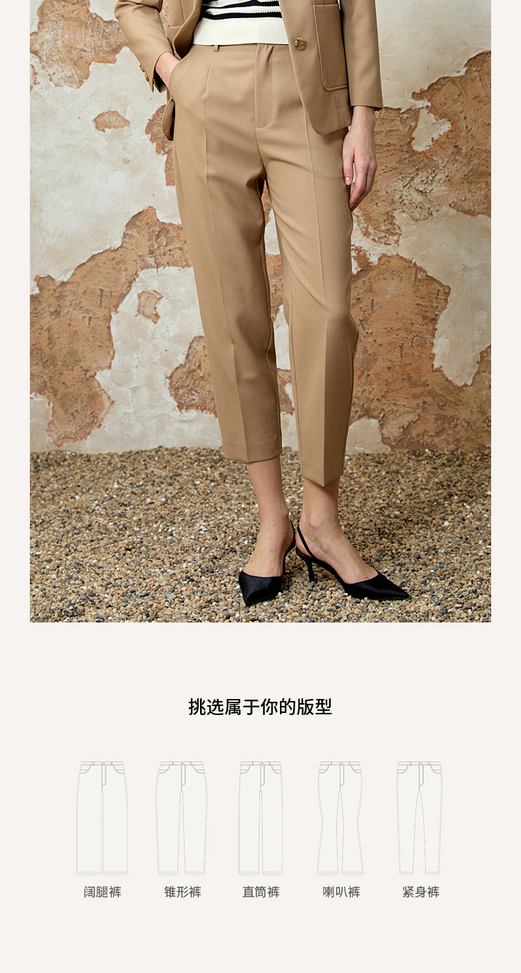 EITIE爱特爱气质高腰锥形显瘦极简通勤裤子春季新款8105809