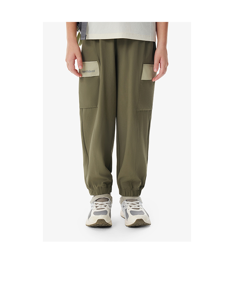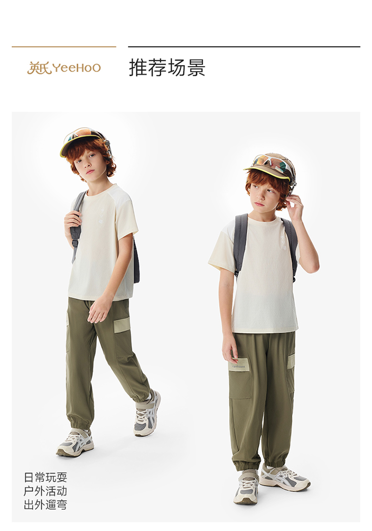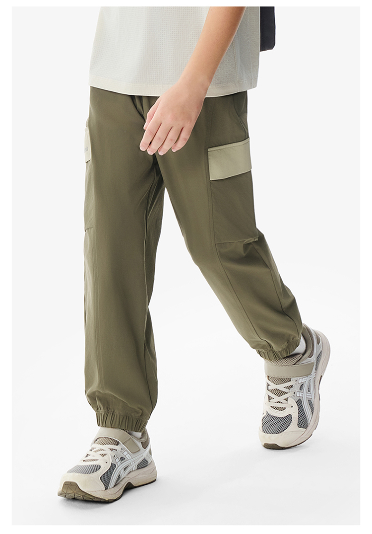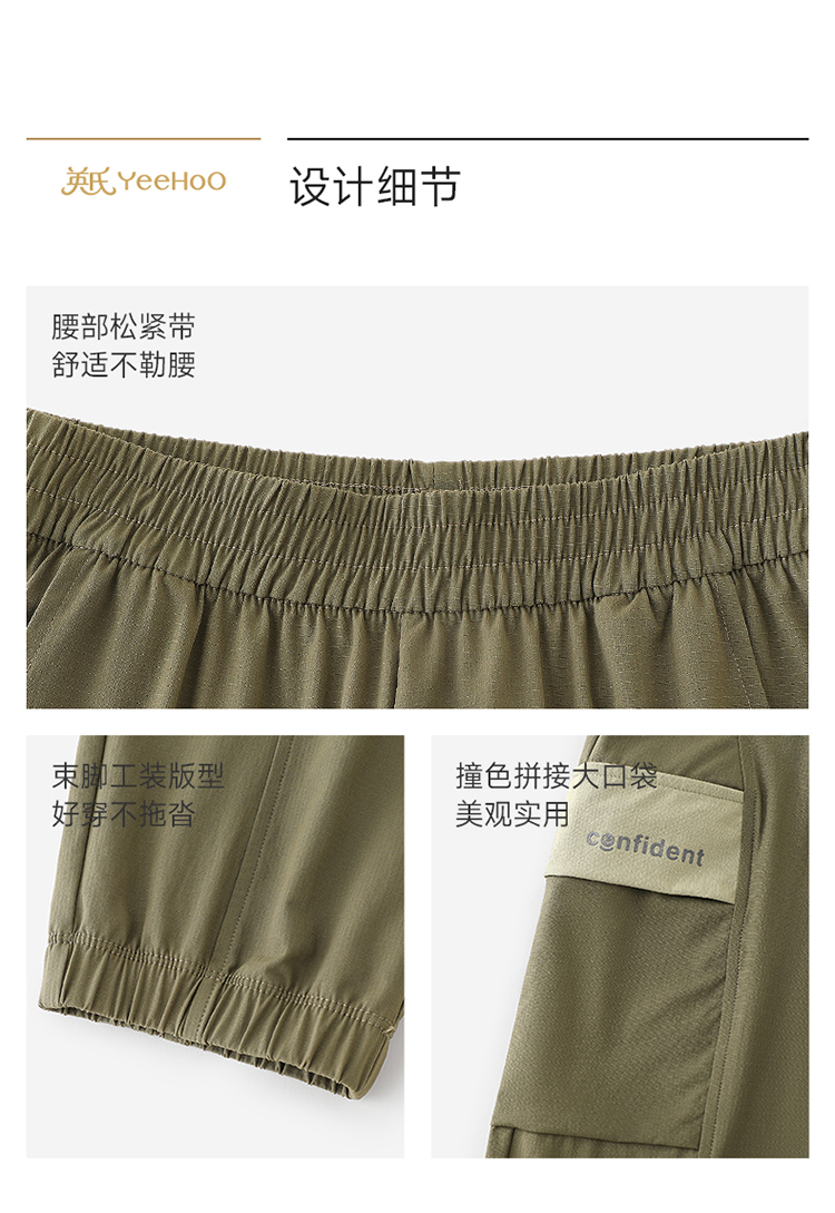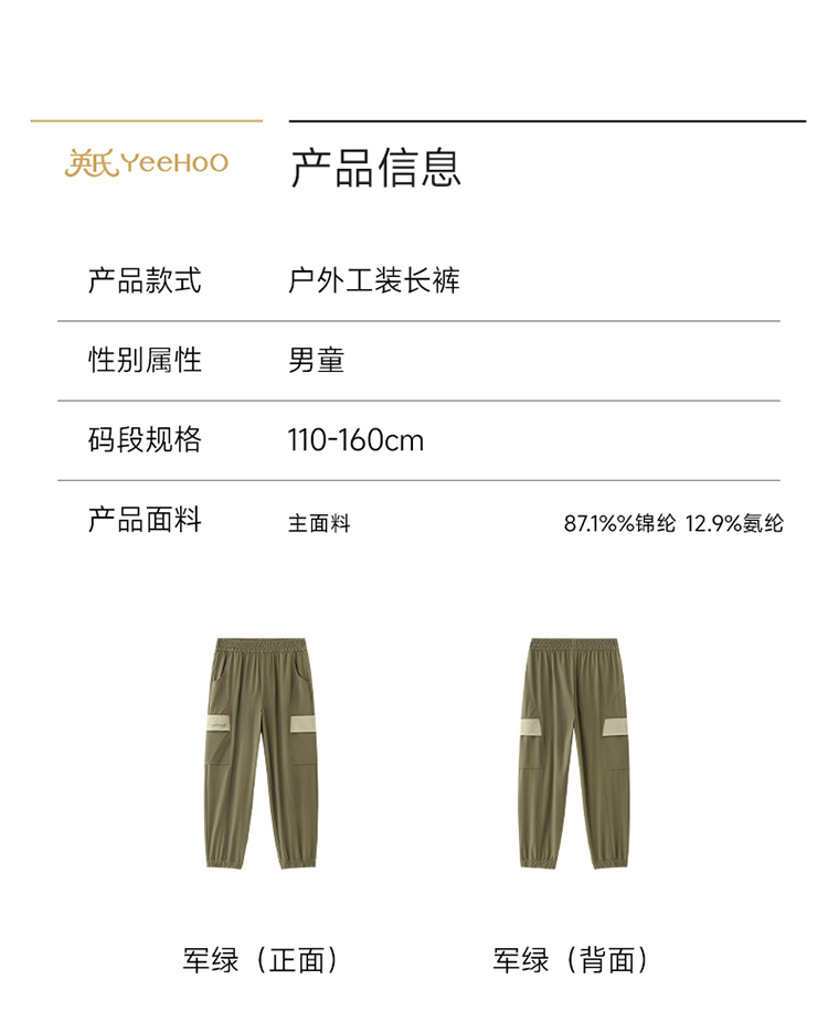 【耐磨抗造】英氏儿童长裤男童裤子春夏款中大童休闲裤军绿色户外百搭束脚裤