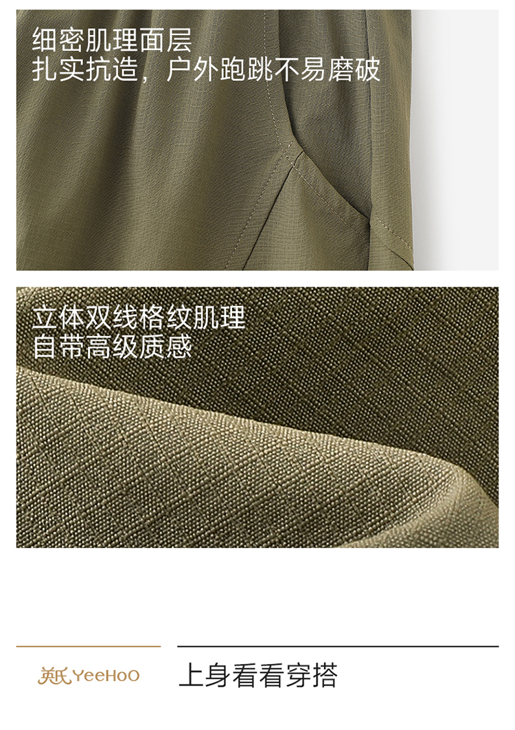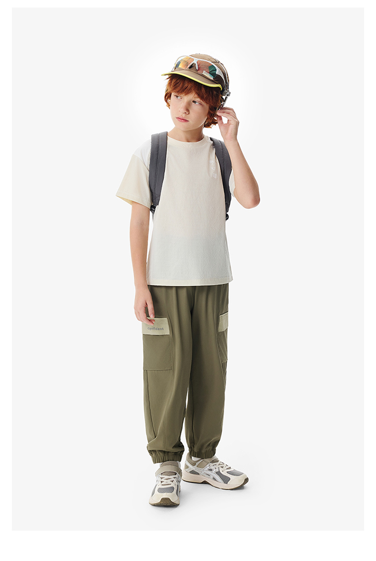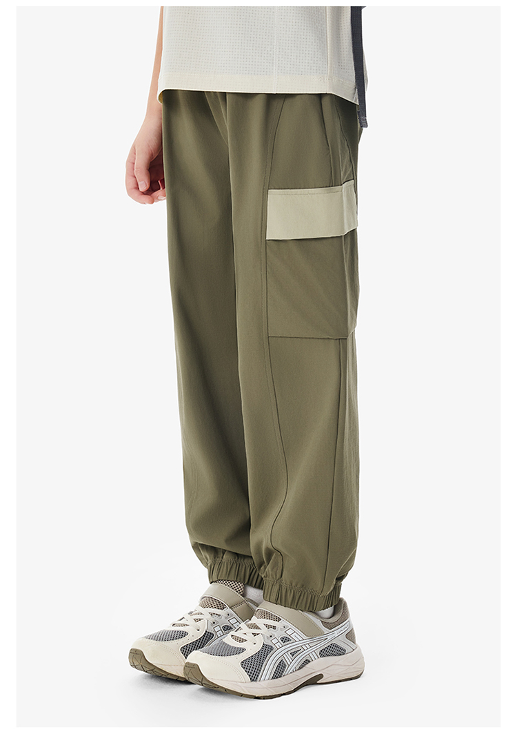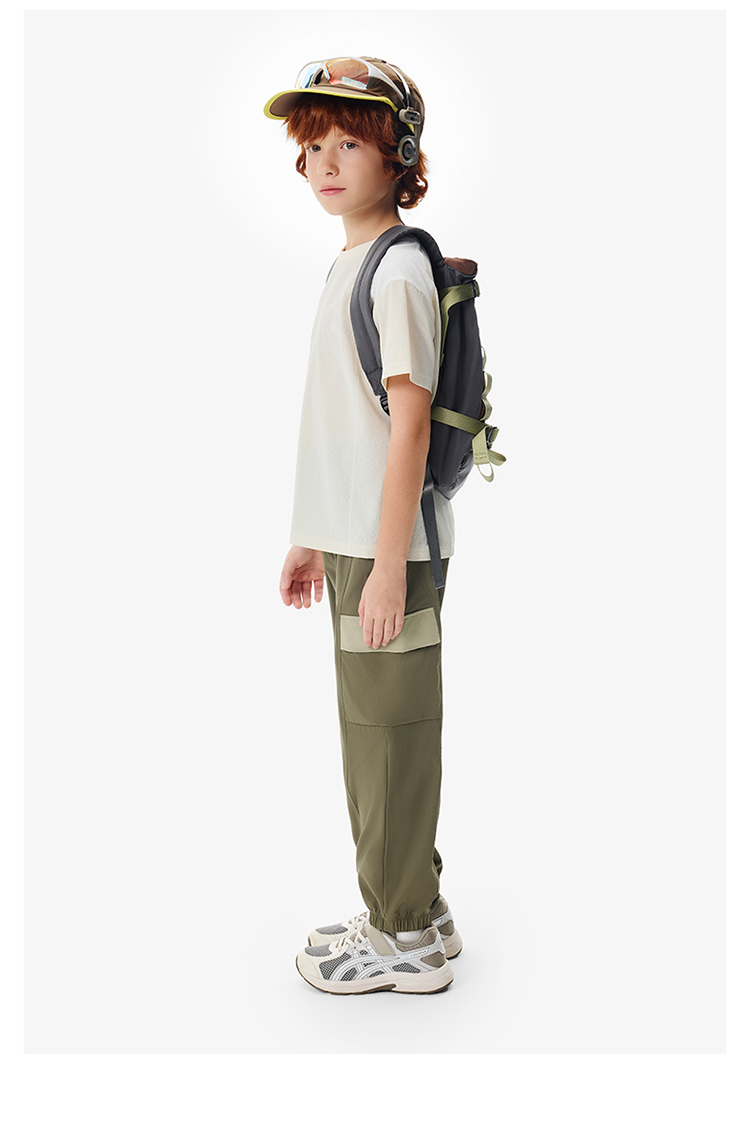 【耐磨抗造】英氏儿童长裤男童裤子春夏款中大童休闲裤军绿色户外百搭束脚裤