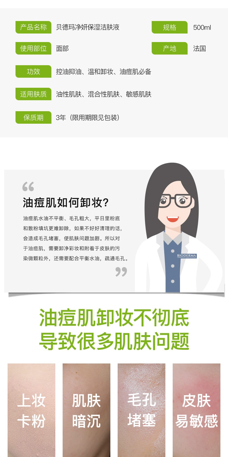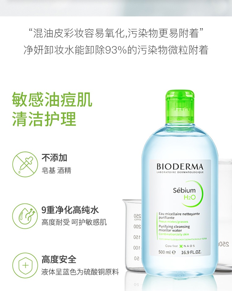 【Bioderma贝德玛】 净妍控油洁肤液 500ml