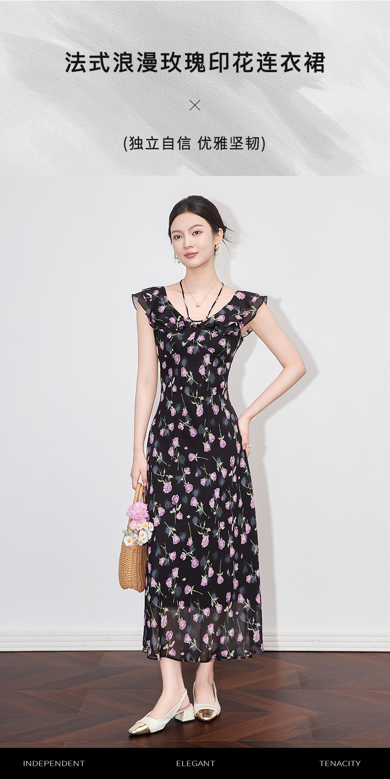 「高货wl」全新升级【铂金会员321/天猫429/差价108】(90028)洛诗琳法式浪漫印花裙2025夏季设计感收腰显瘦连衣裙女