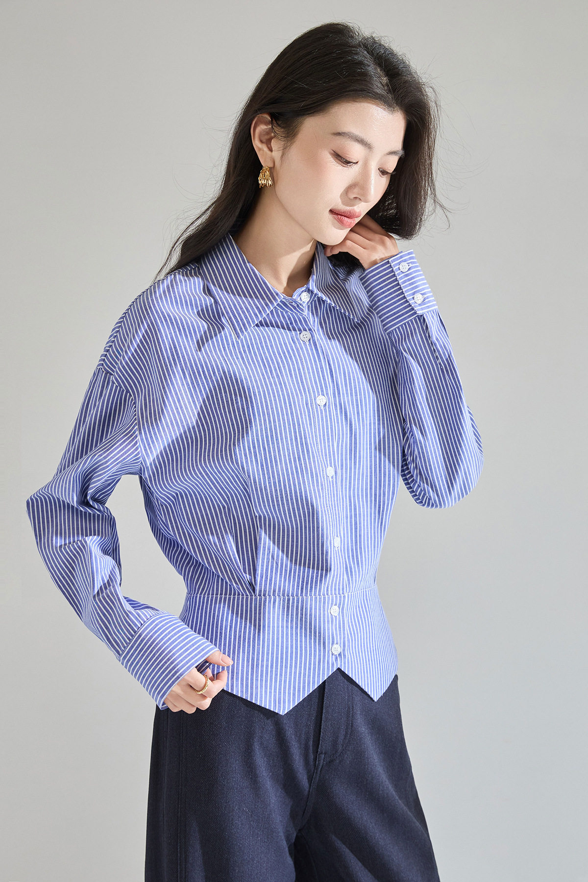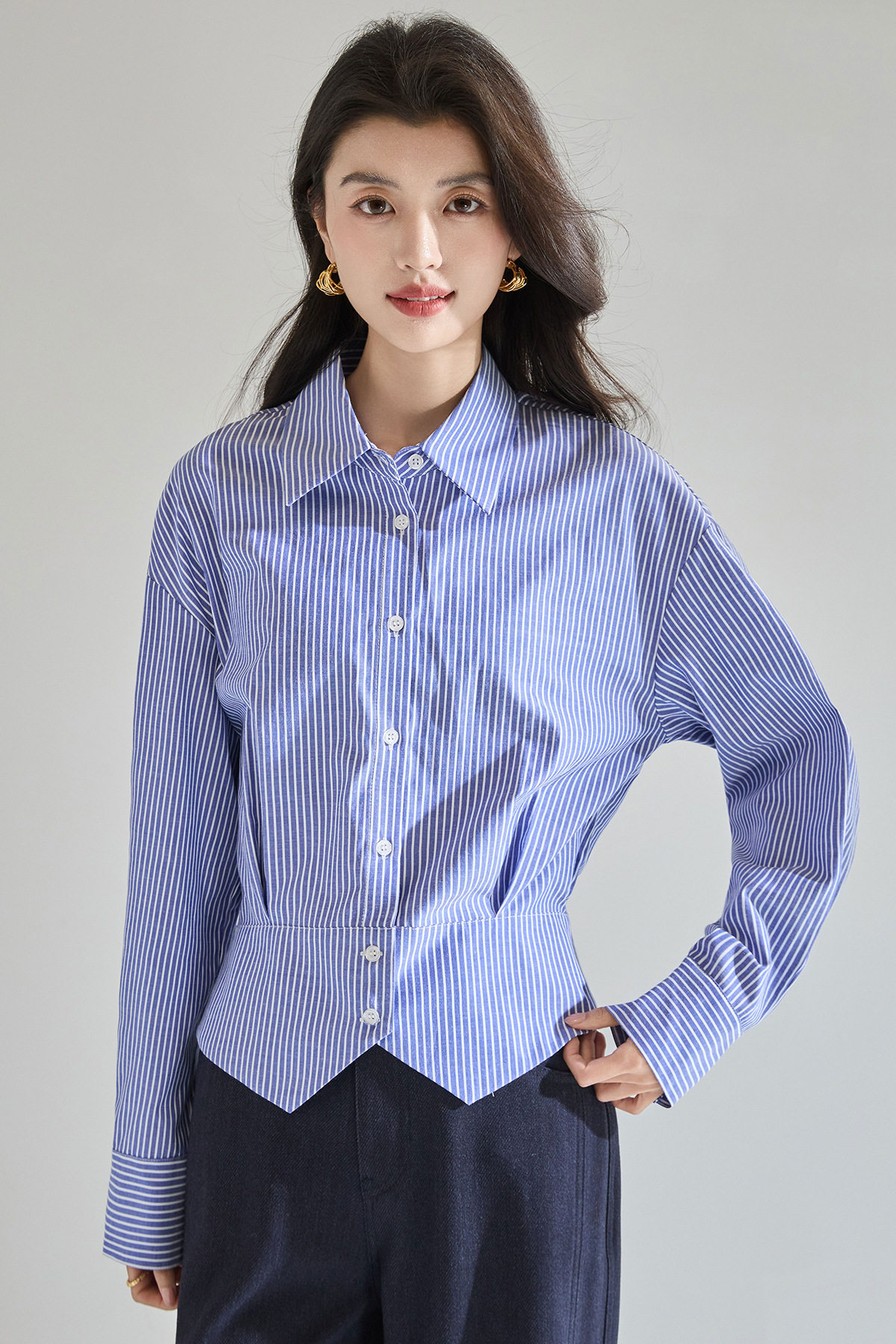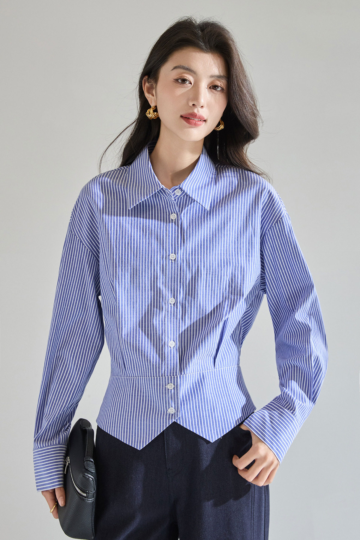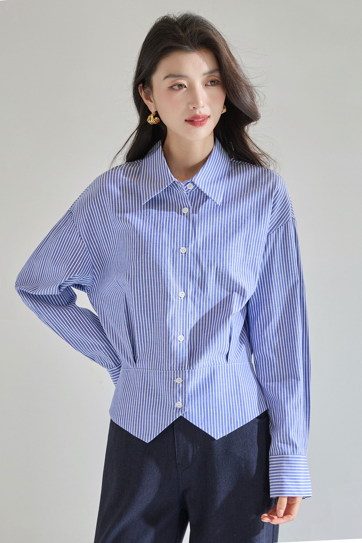 「预售」「高货sh」全新升级【铂金会员183/天猫249/差价66】(00402)洛诗琳气质miu系蓝色条纹收腰衬衫2026春季新款抗皱免烫百搭通勤衬衣
