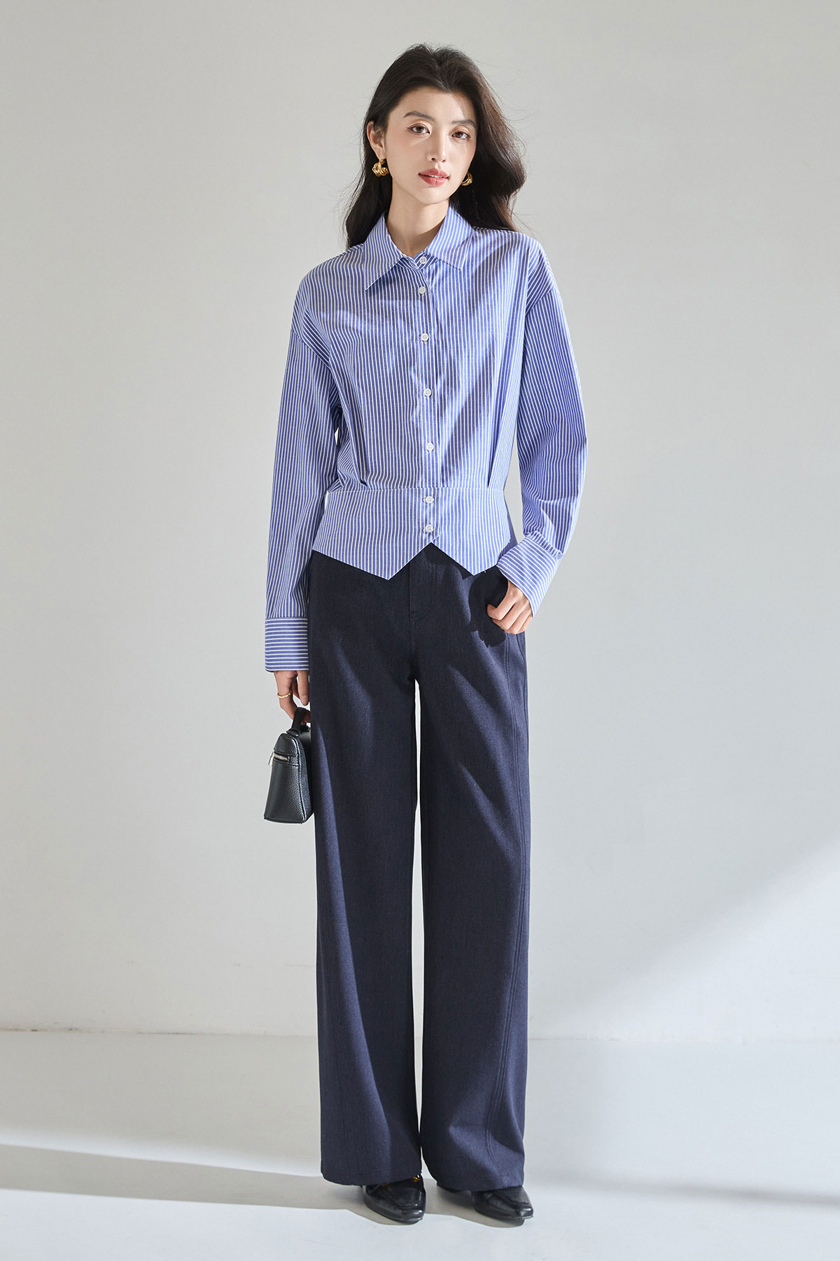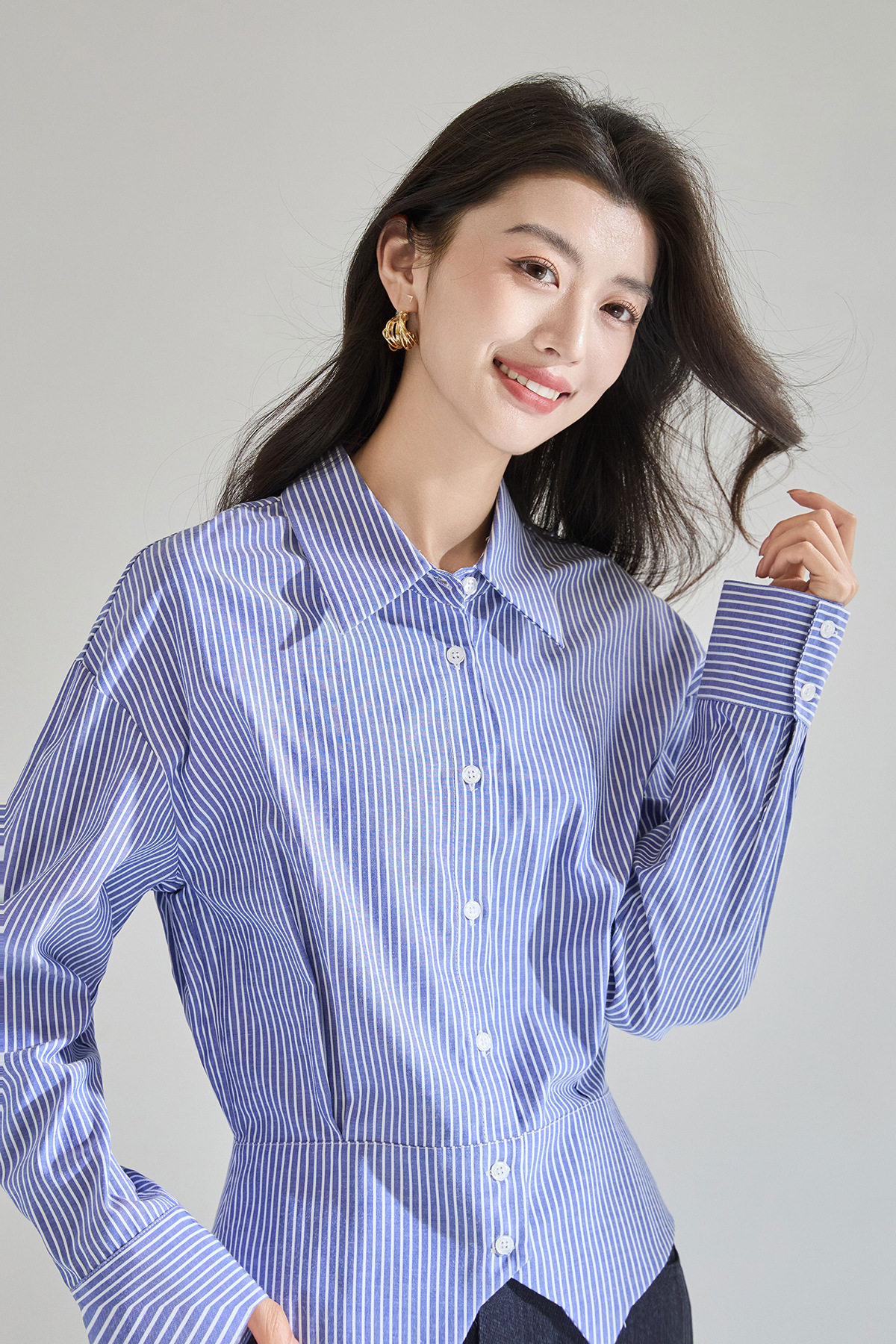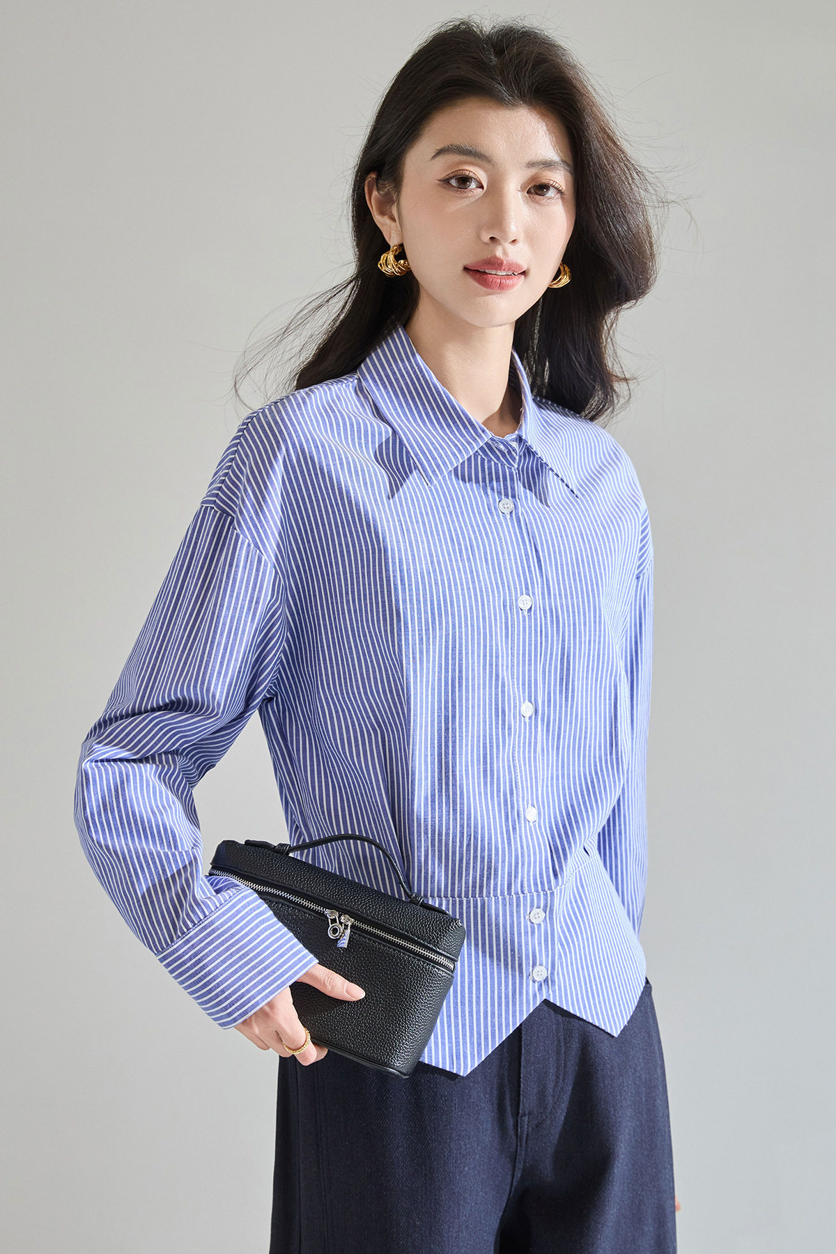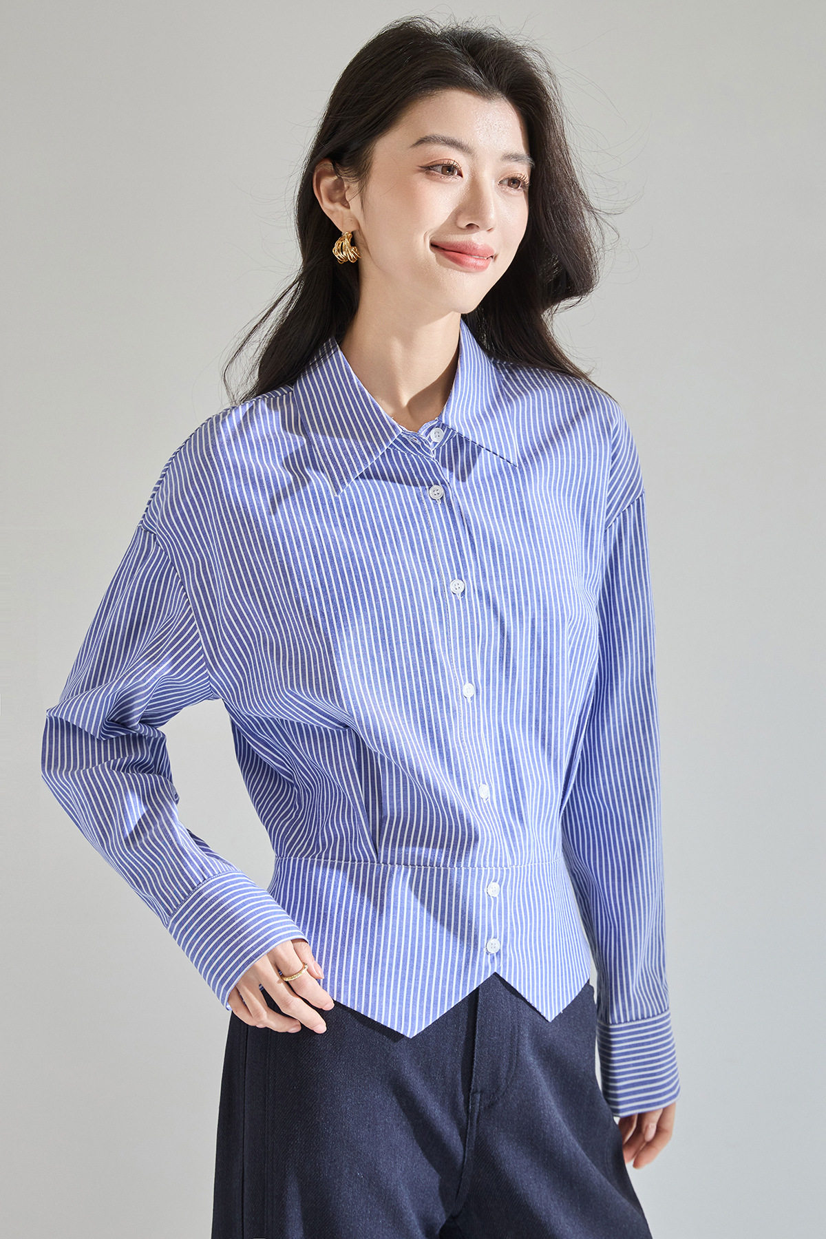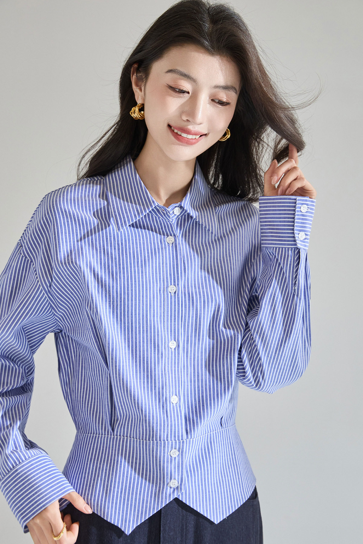 「预售」「高货sh」全新升级【铂金会员183/天猫249/差价66】(00402)洛诗琳气质miu系蓝色条纹收腰衬衫2026春季新款抗皱免烫百搭通勤衬衣