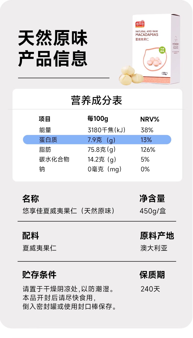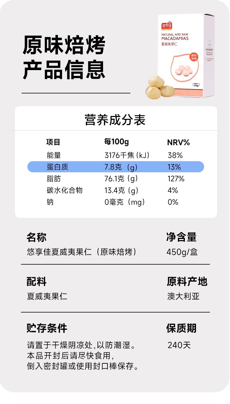 悠享佳坚果果仁 | 450g/500g 腰果仁 巴旦木仁 南瓜籽仁 夏威夷果仁 原味烘焙 自然原香 坚果炒货零食「随单送随机颜色封口夹」