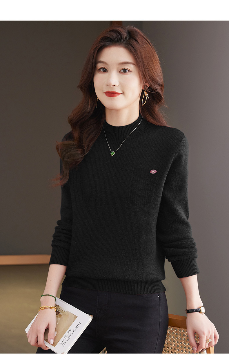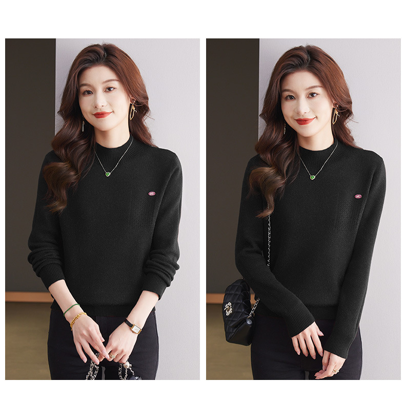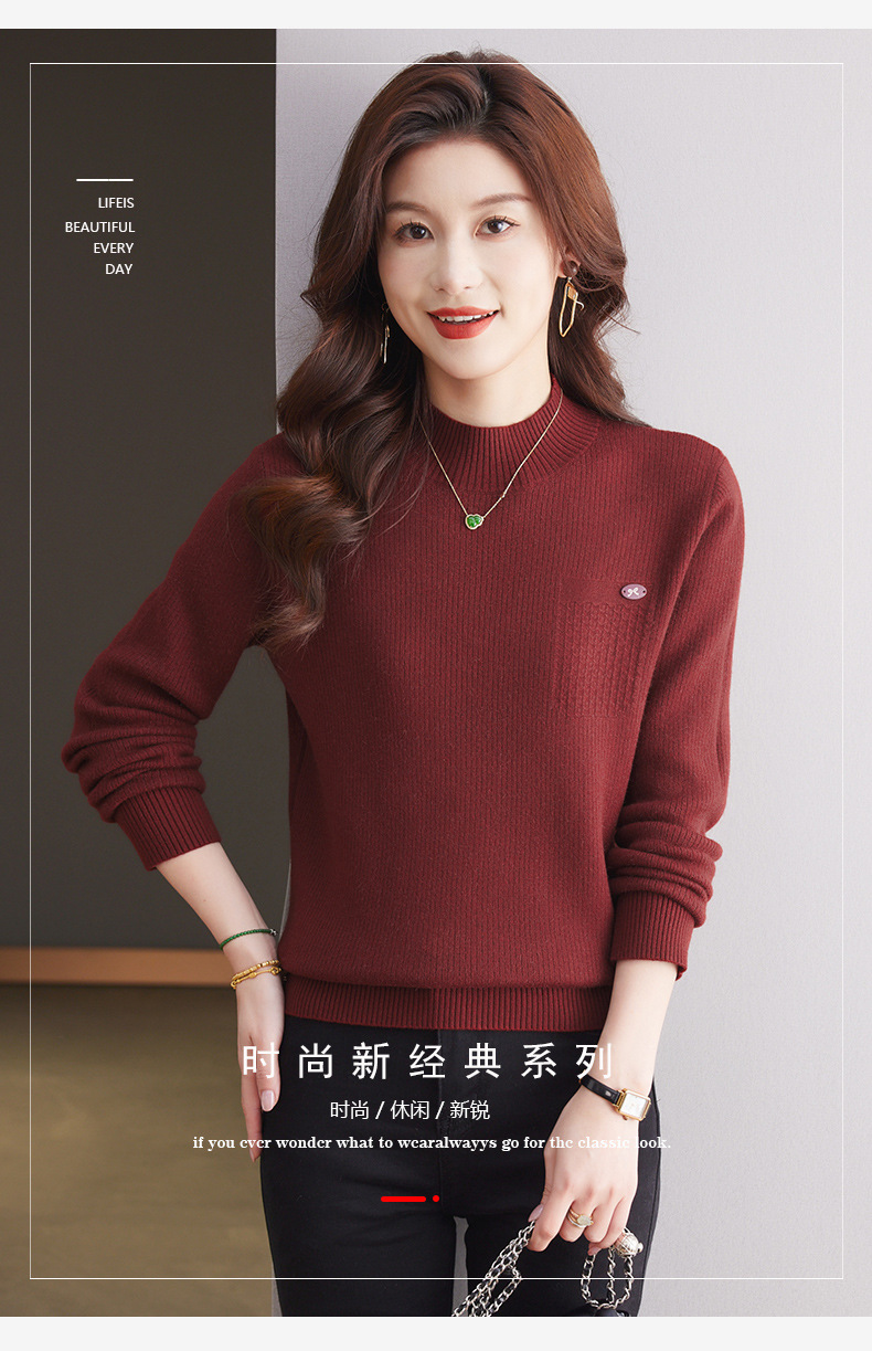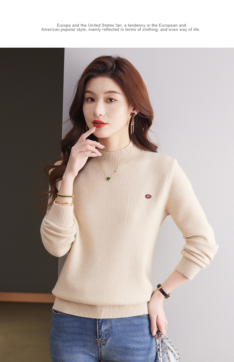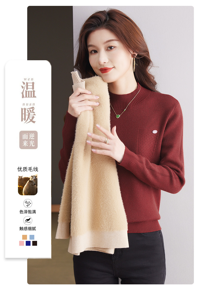 CC-MY-9331加绒厚款打底衫女士秋冬季一体绒2024新款半高领宽松毛衣