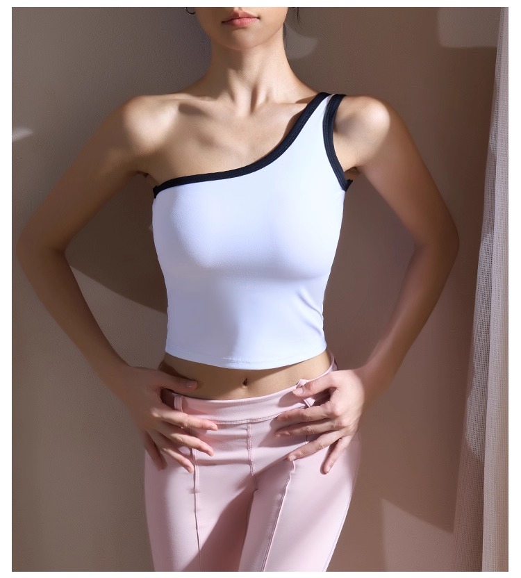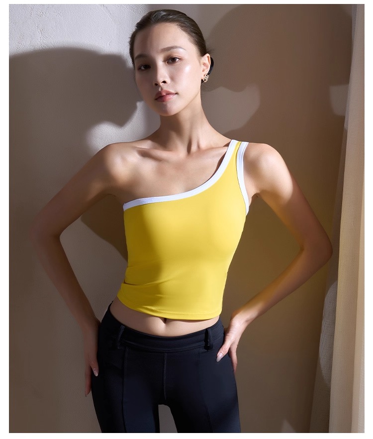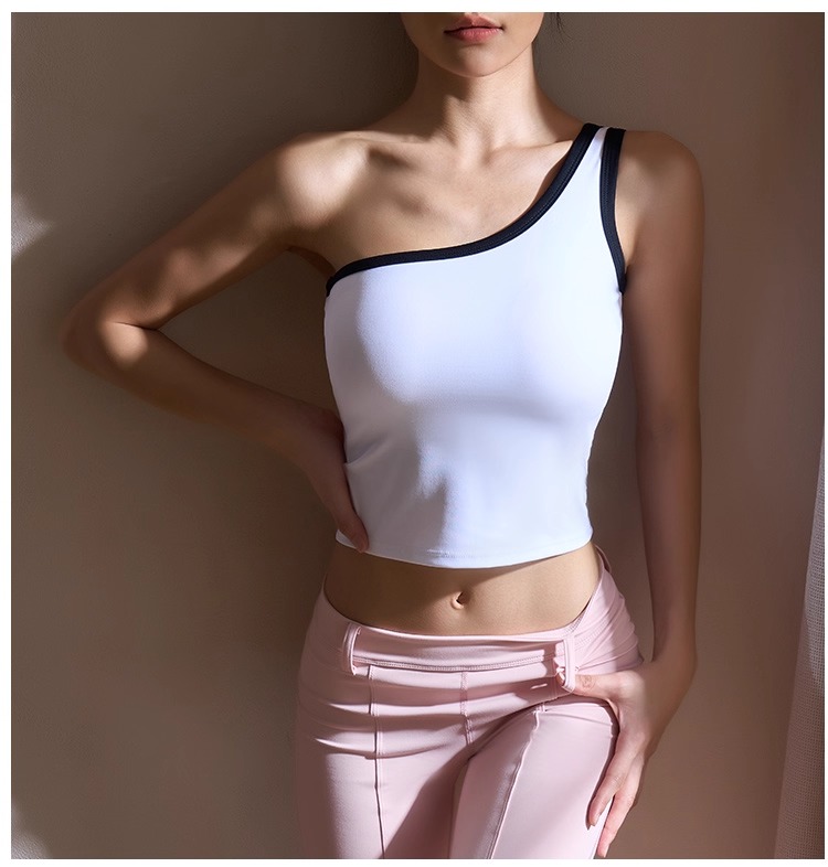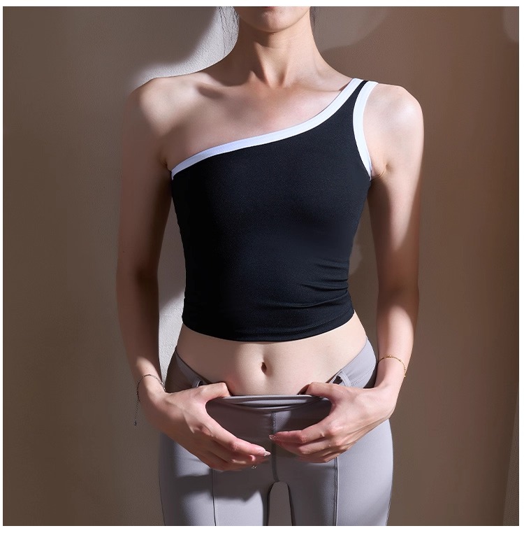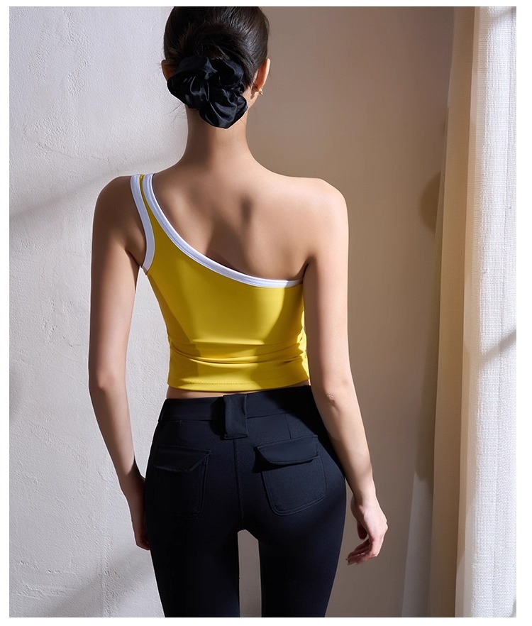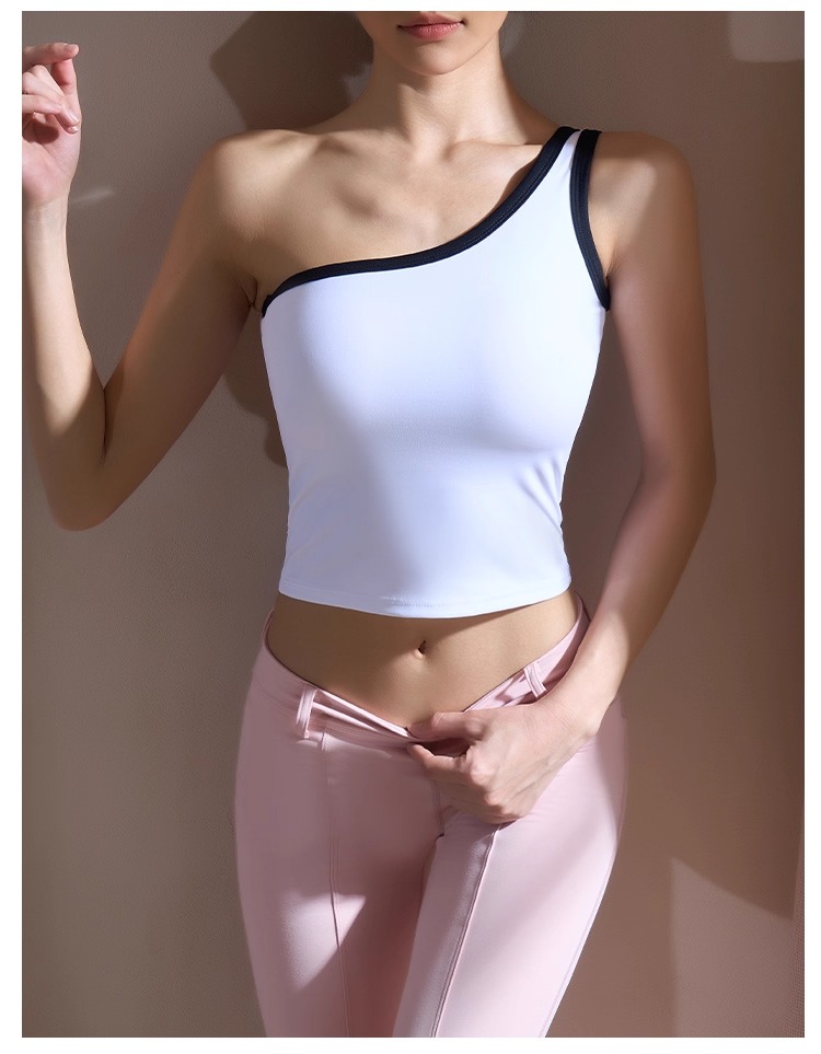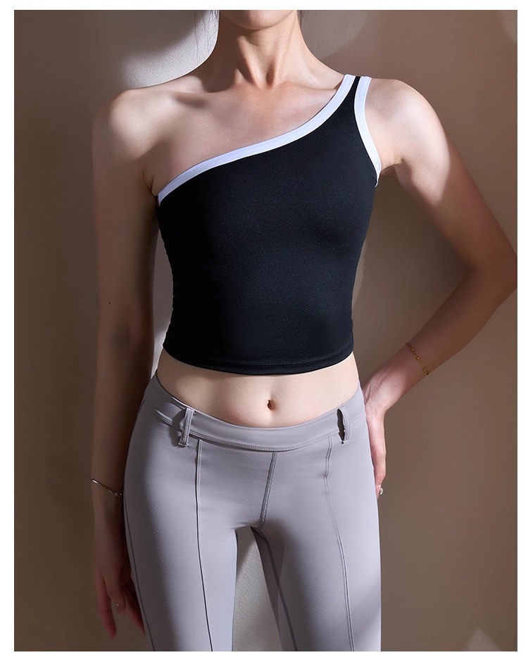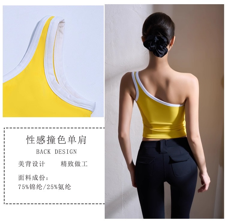 【126元任选2件】跃牌【漫西】系列 时尚美颈单肩吊带撞色吊带背心运动健身文胸带胸垫Y282