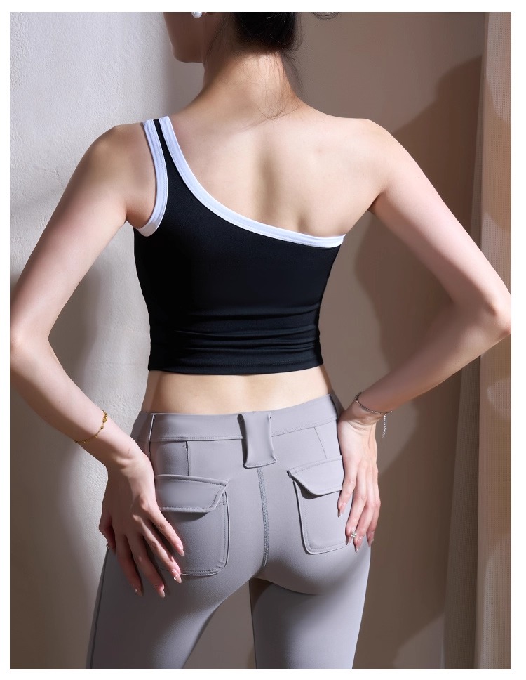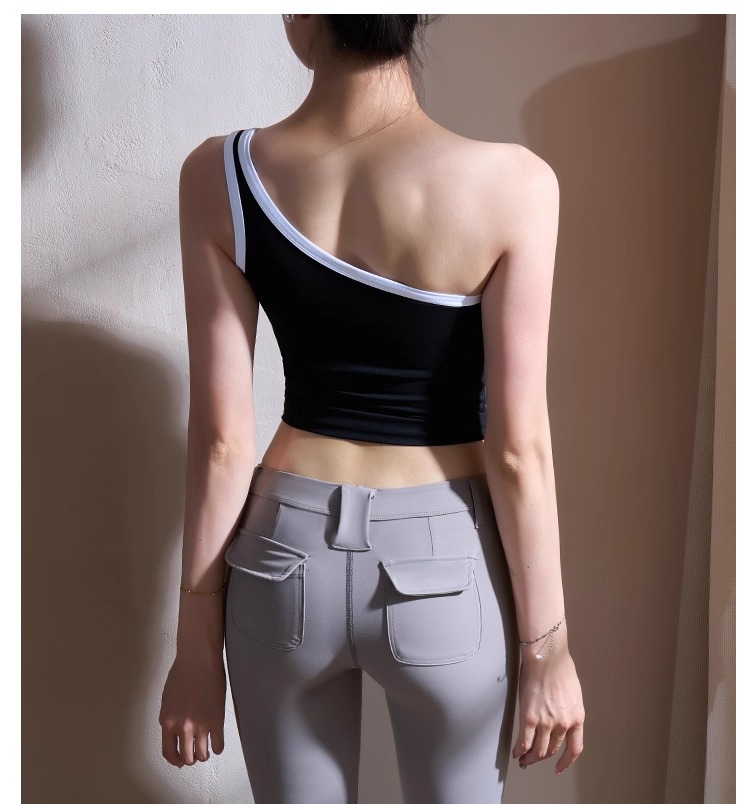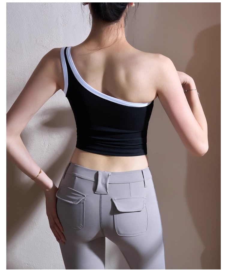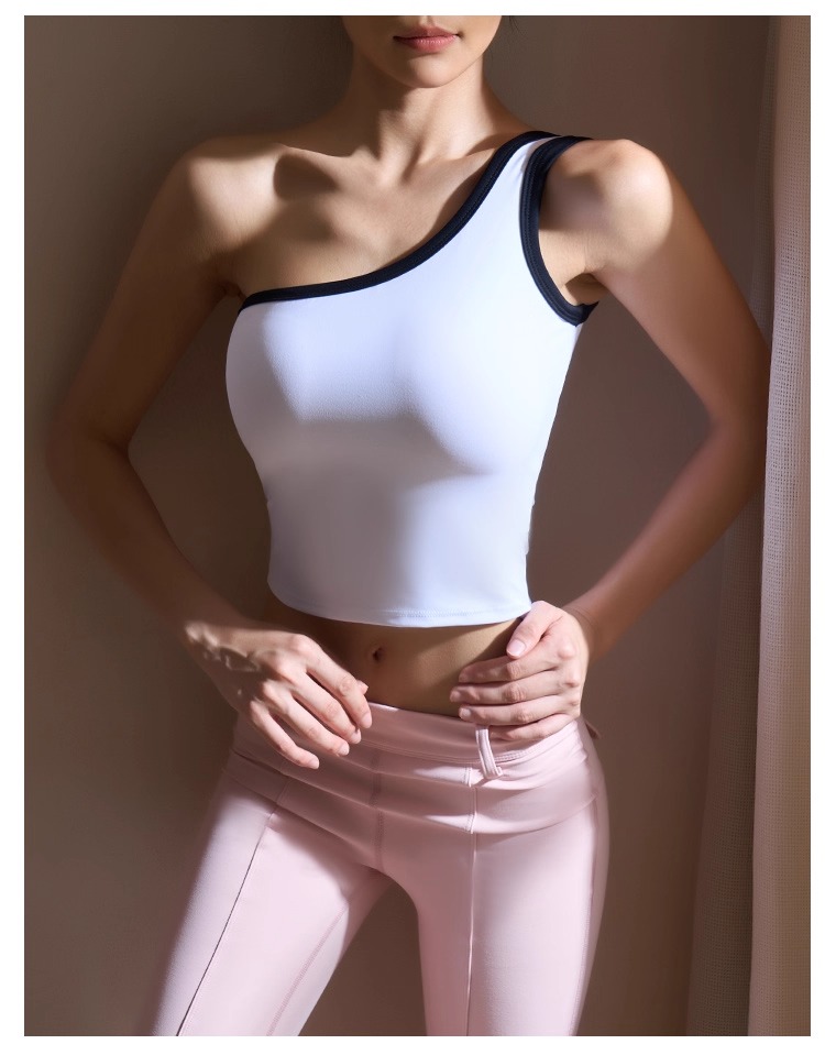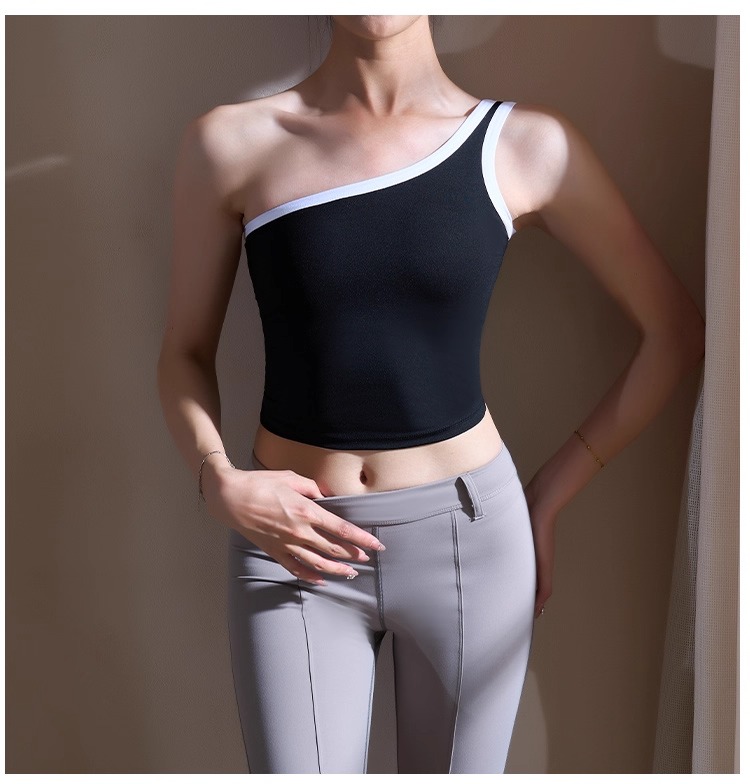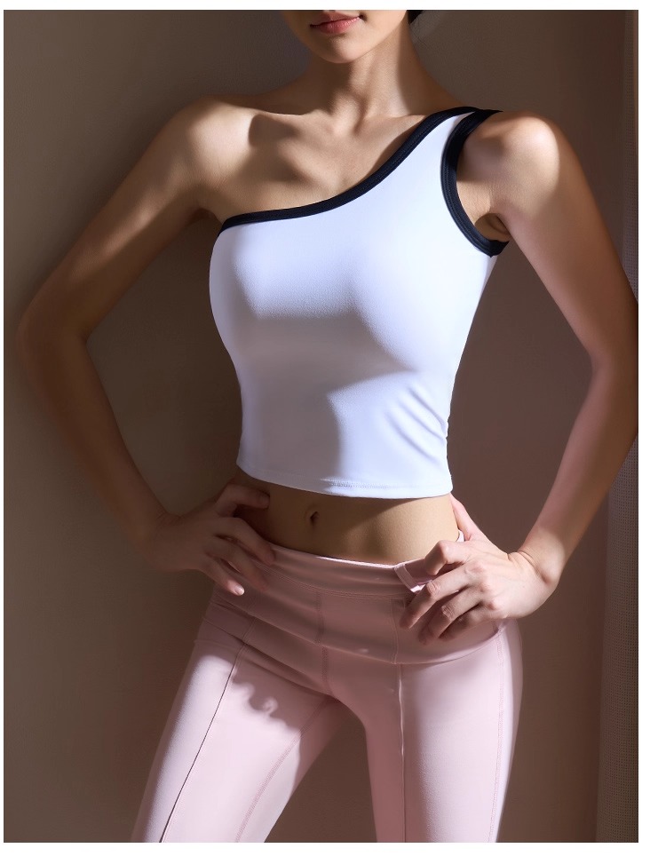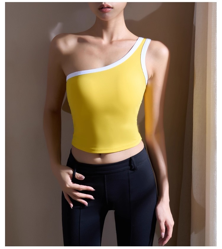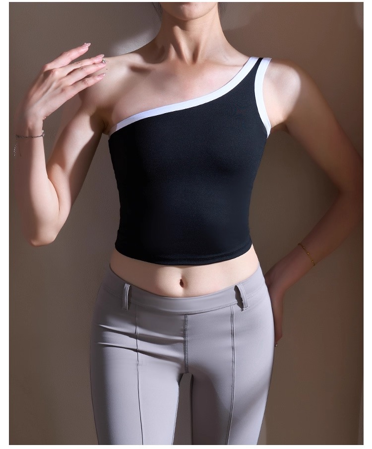 【126元任选2件】跃牌【漫西】系列 时尚美颈单肩吊带撞色吊带背心运动健身文胸带胸垫Y282