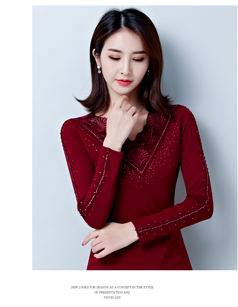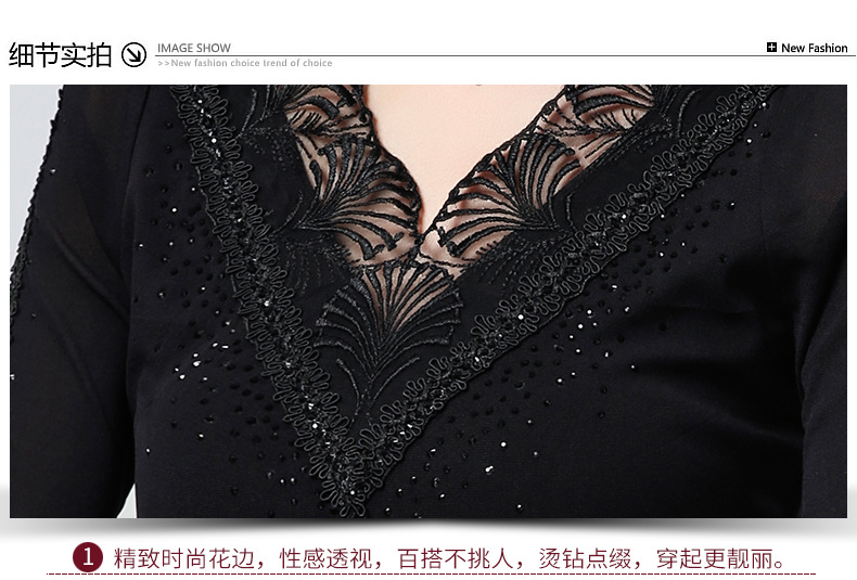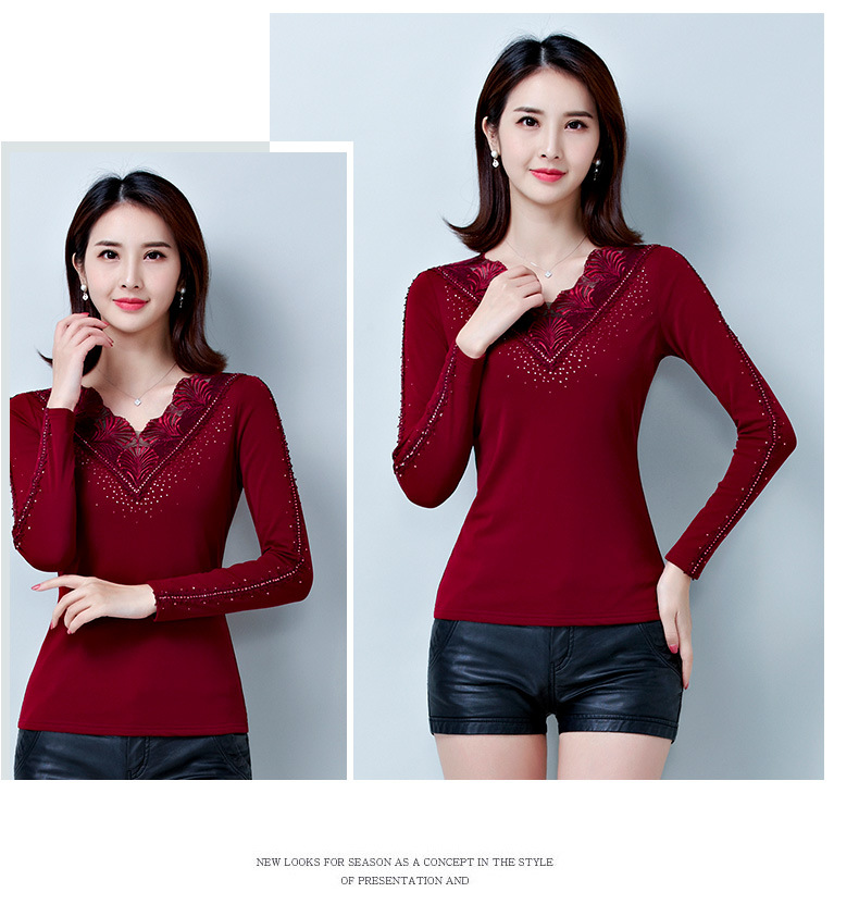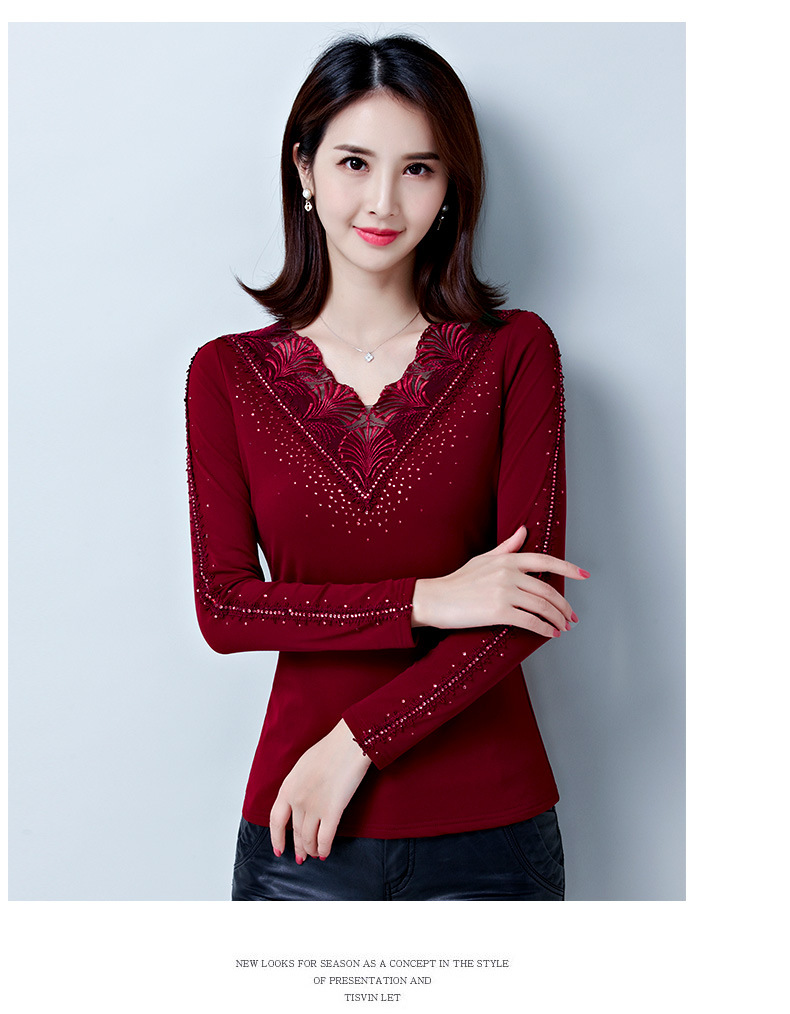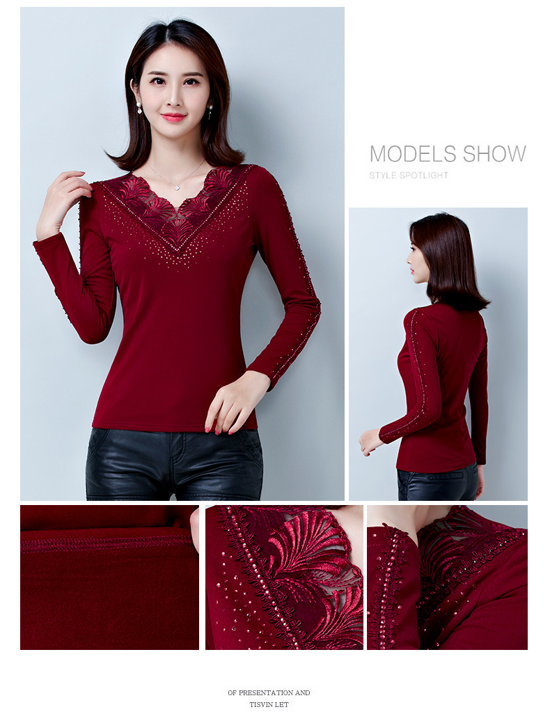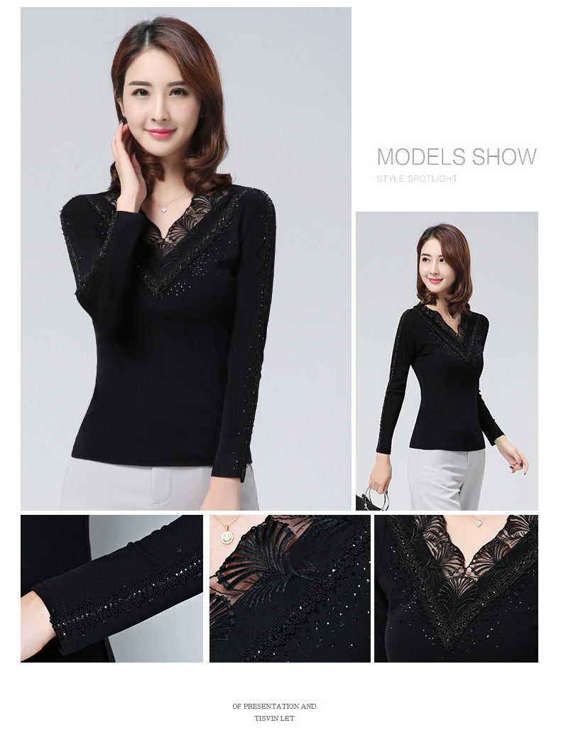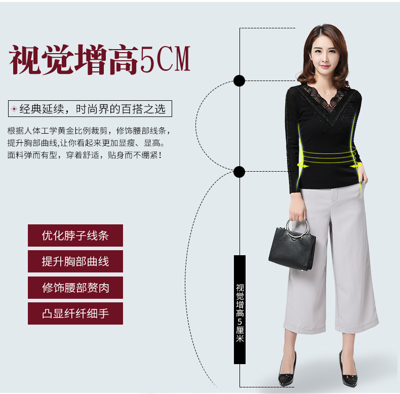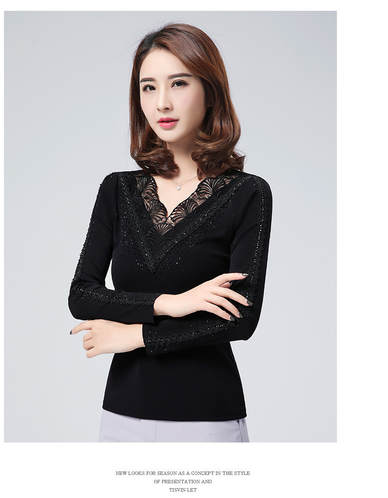 LXG-LR3163新款冬装蕾丝花边V领加绒加厚打底衫