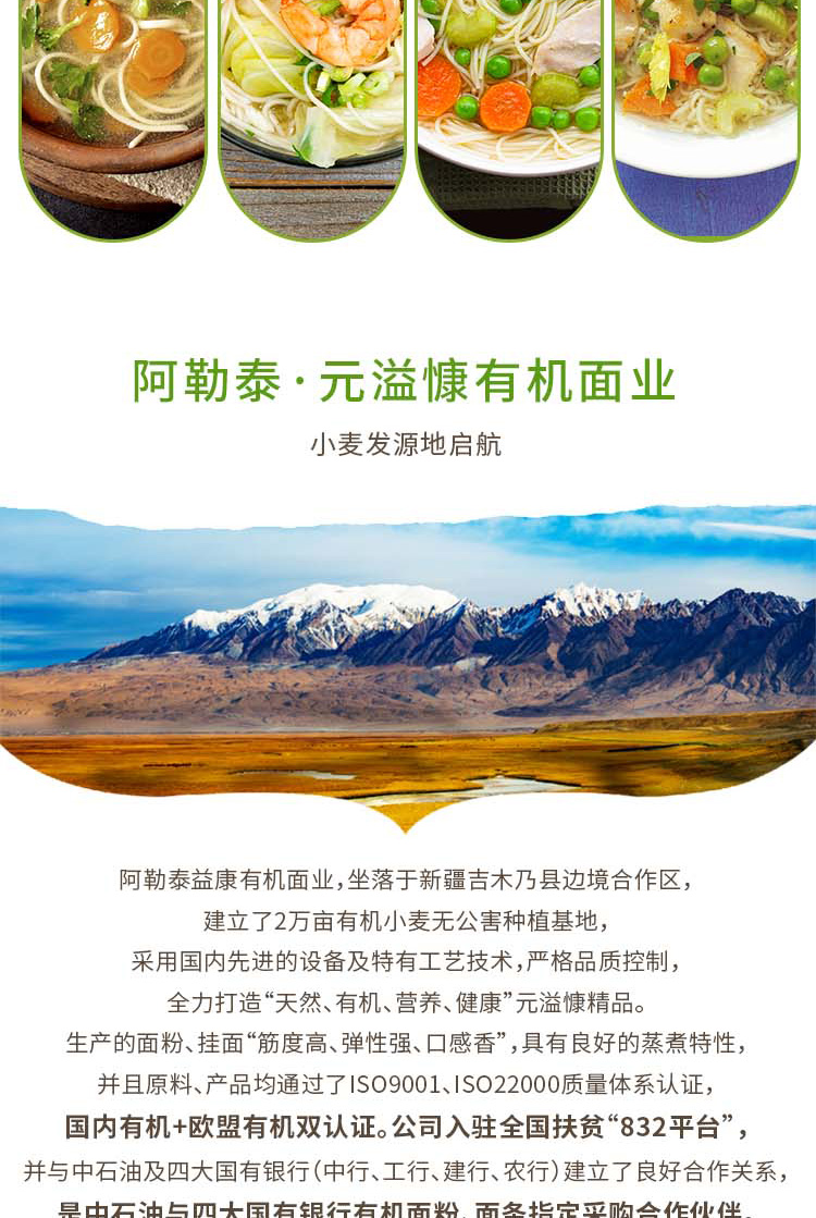 元溢慷 新疆阿勒泰有机面条 Q弹好煮好咀嚼 营养更全面