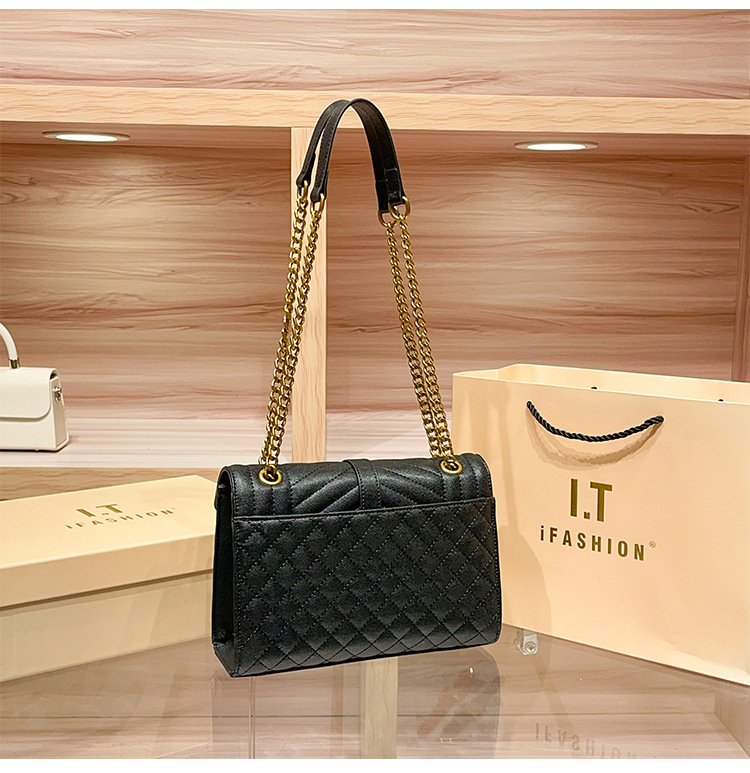 丁摩 牛皮链条菱格腋下单肩包新款欧美大牌时尚行包包百搭斜挎小包5ZF-4212