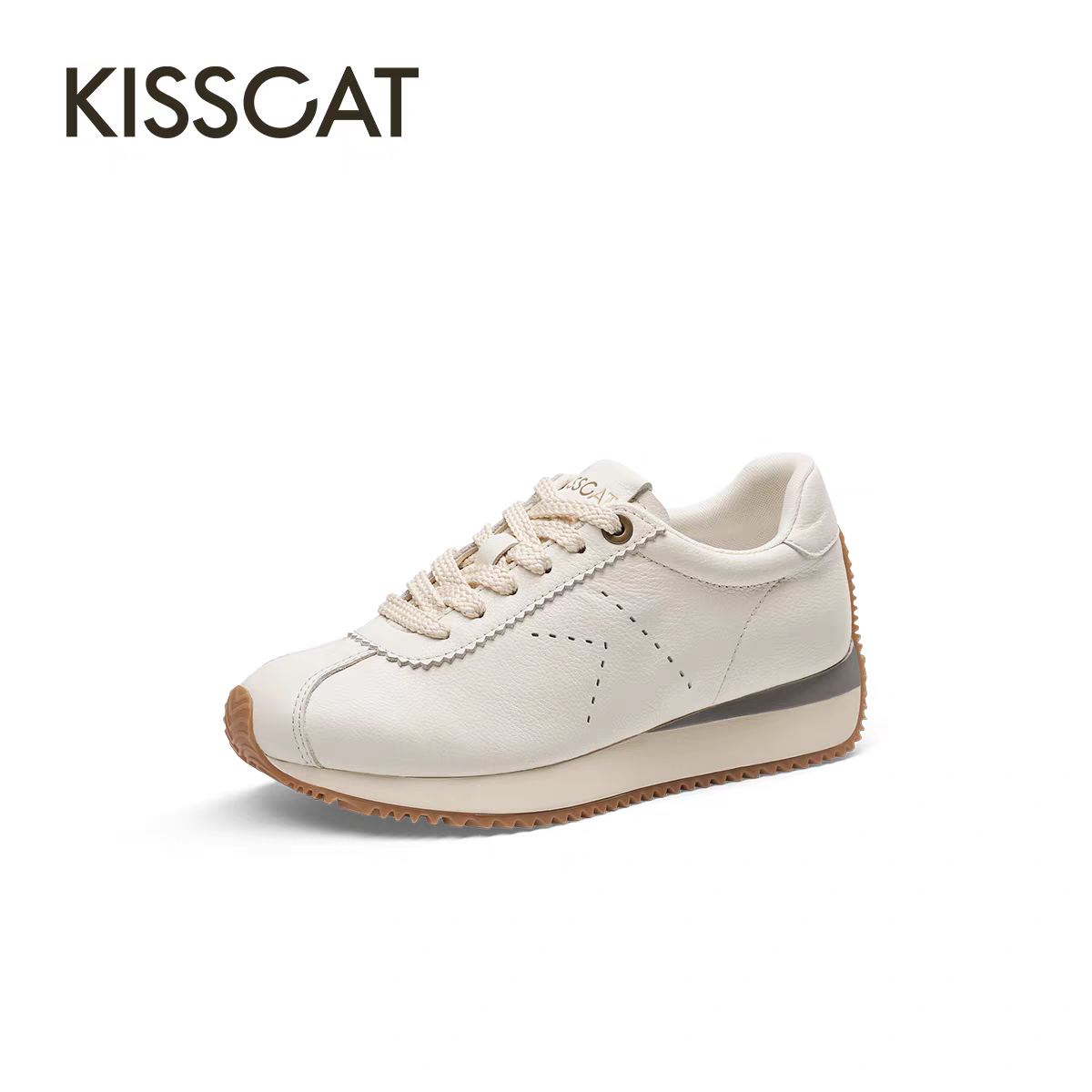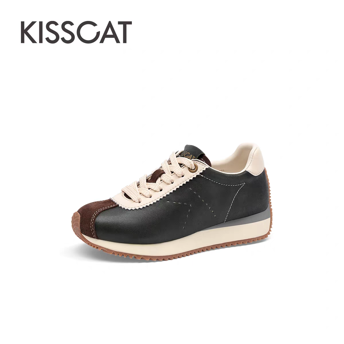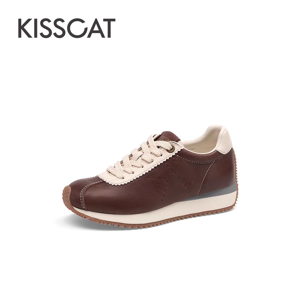 「[沈月/热巴]同款接吻猫[摩卡德训]厚底增高休闲鞋复古皮质德训鞋」
