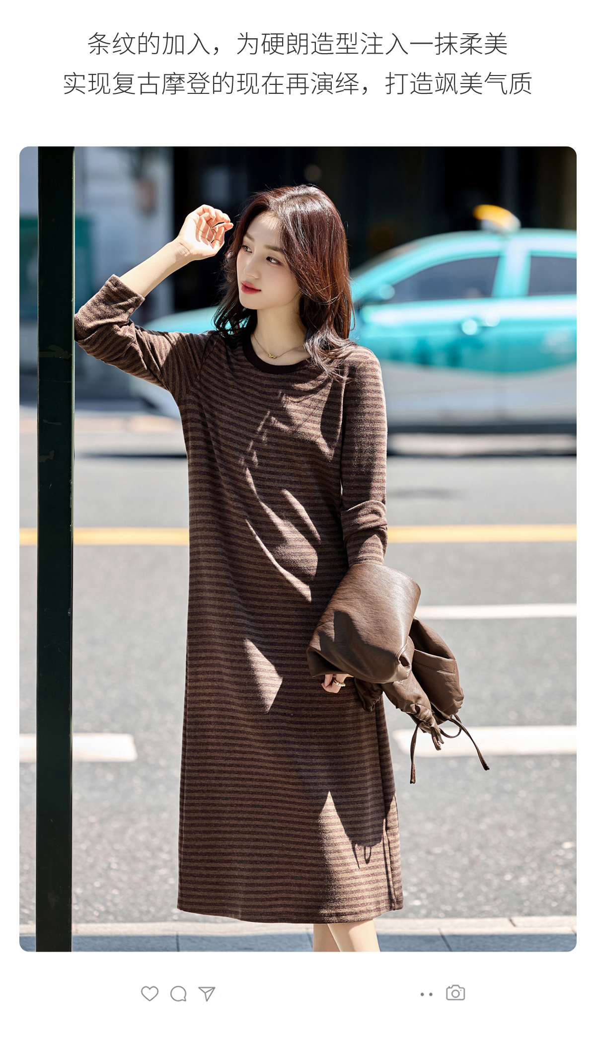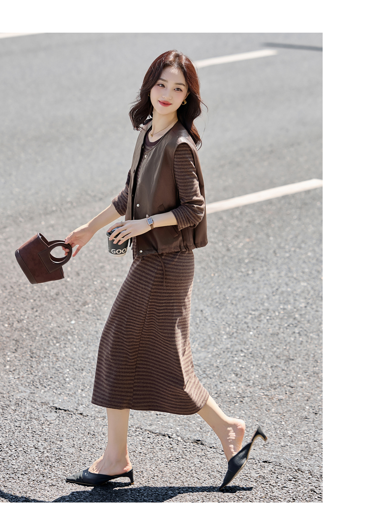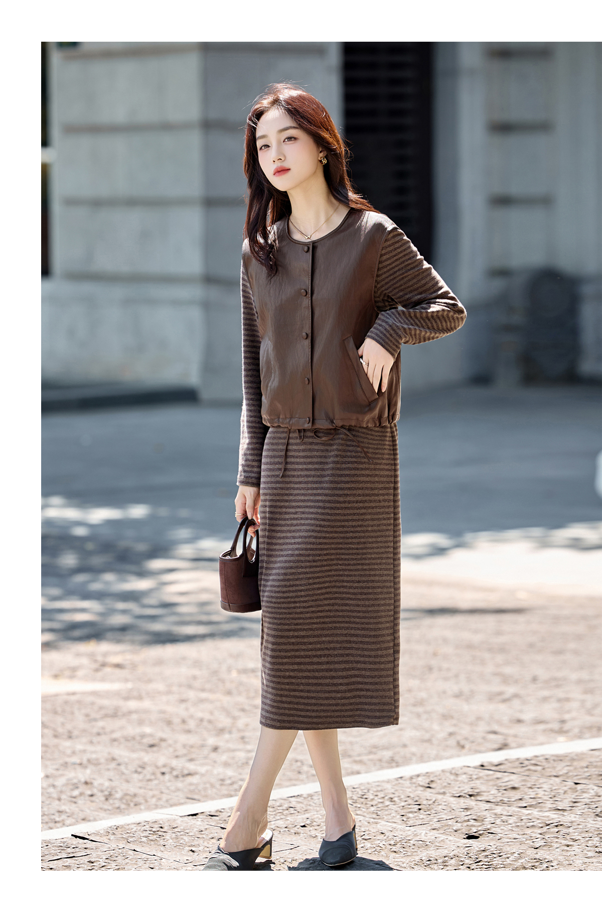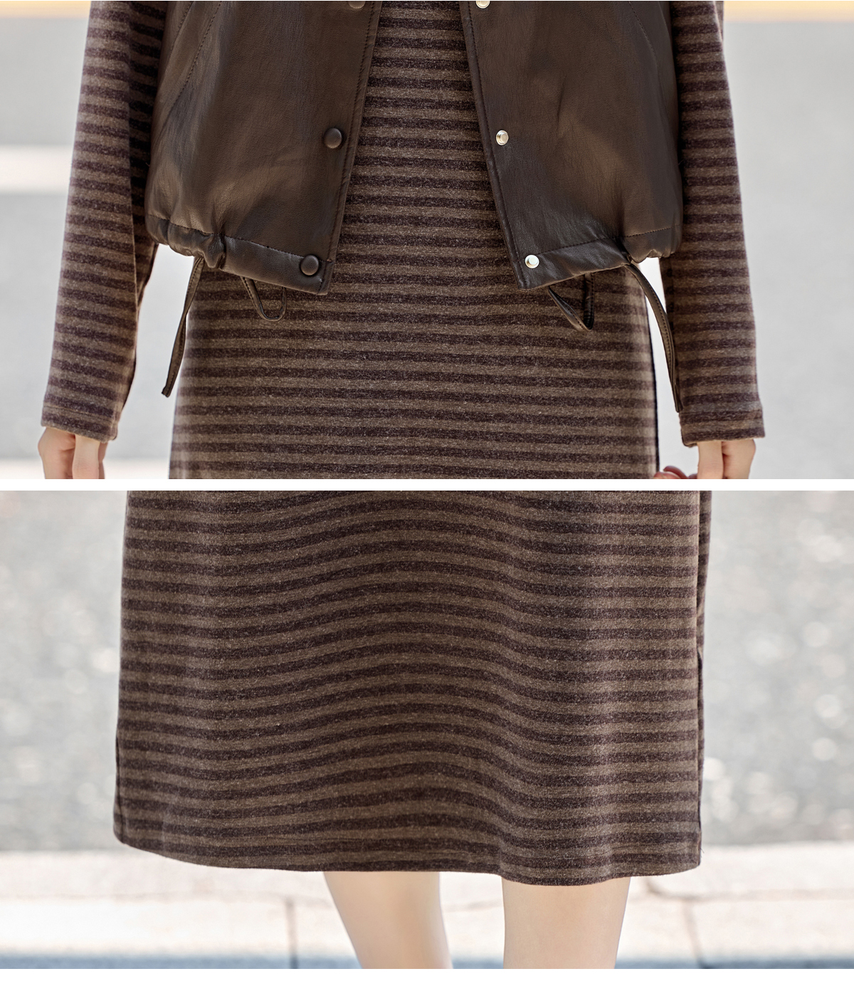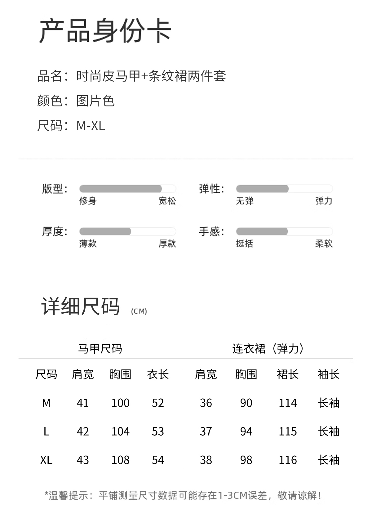 休闲百搭皮马甲条纹裙,套装两件套长袖连衣裙HR-YF2622