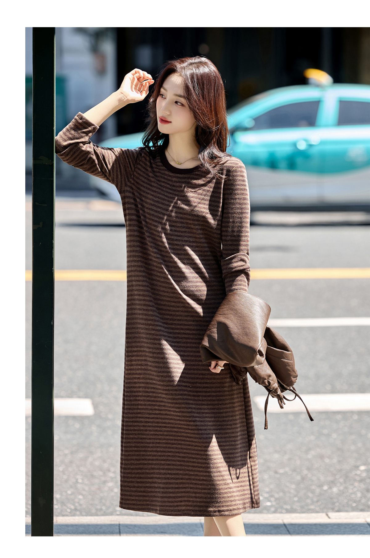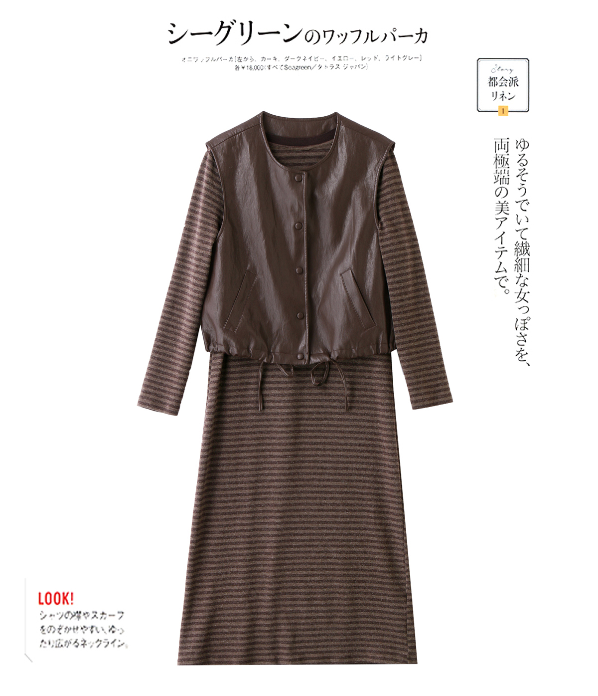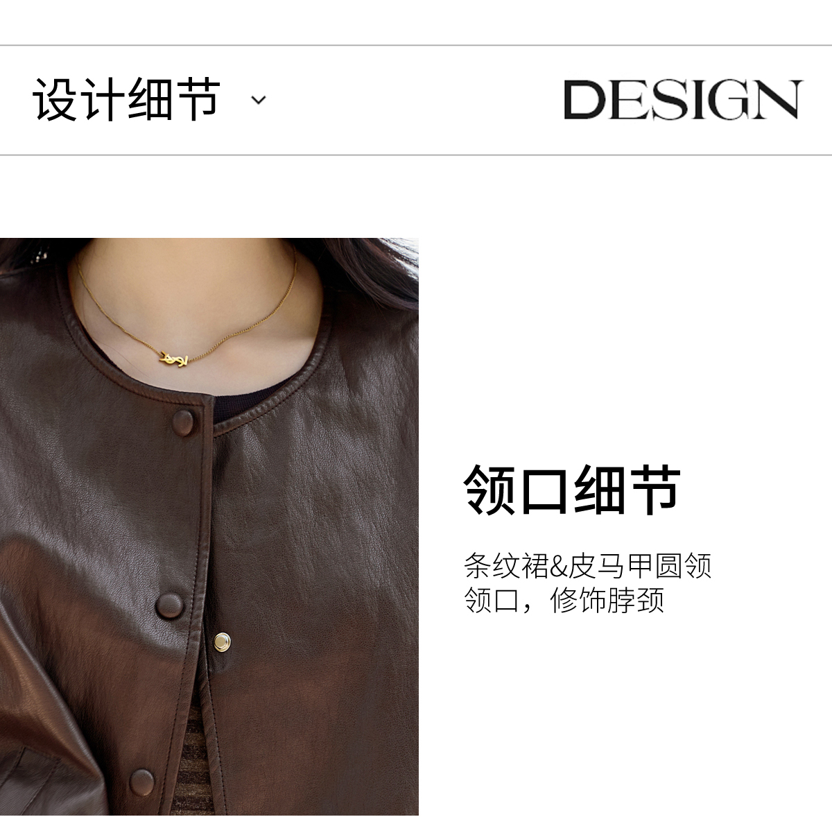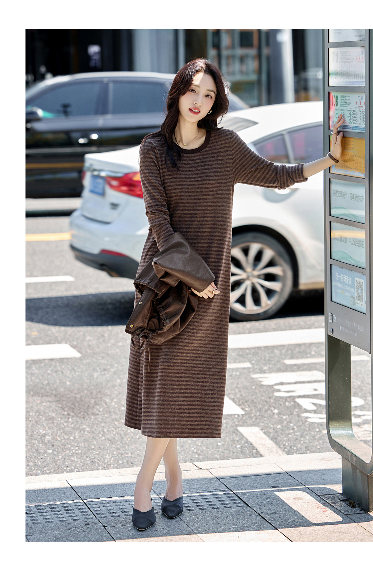 休闲百搭皮马甲条纹裙,套装两件套长袖连衣裙HR-YF2622