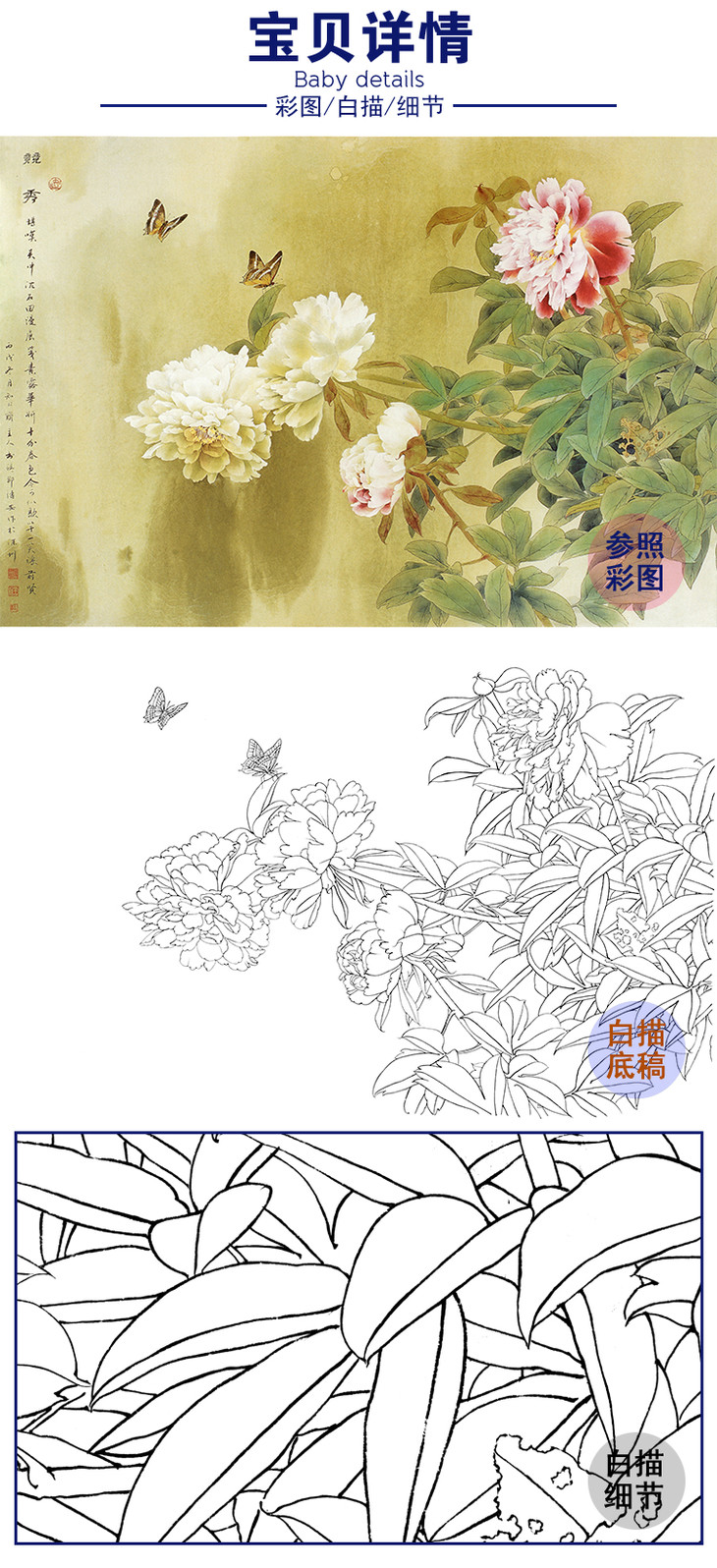 横幅工笔花鸟白描底稿-邹传安-牡丹竞秀-A199