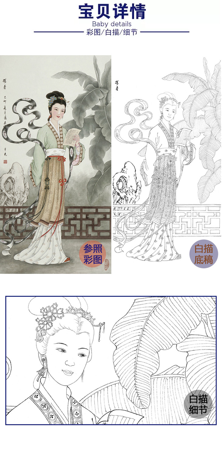 白描底稿-金陵十二钗红楼传统人物贾探春-JD04