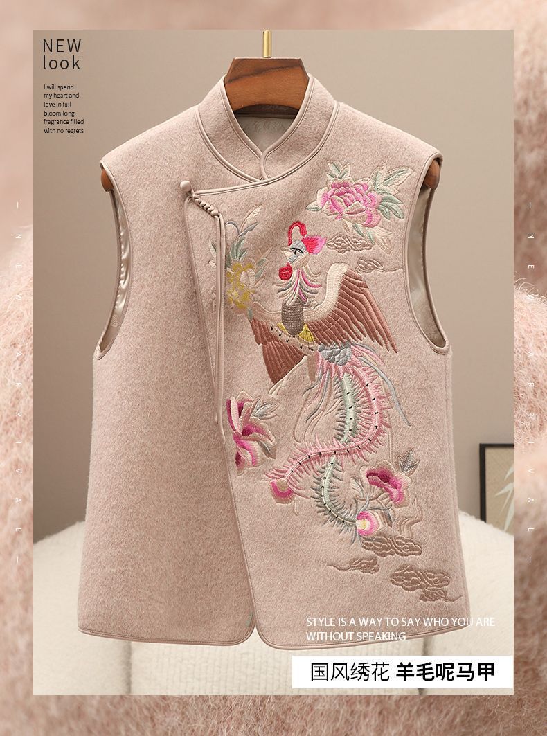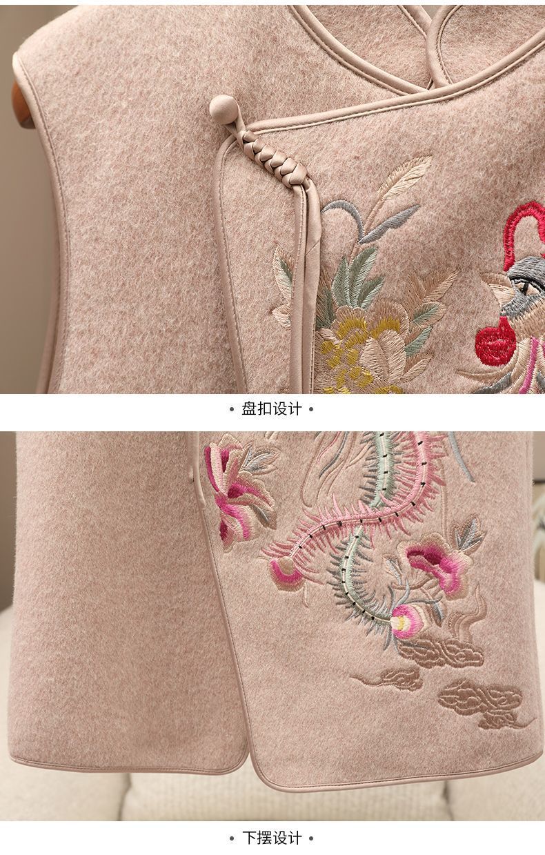 断码清仓价HH 25111309羊毛外套中式国风刺绣小立领马甲