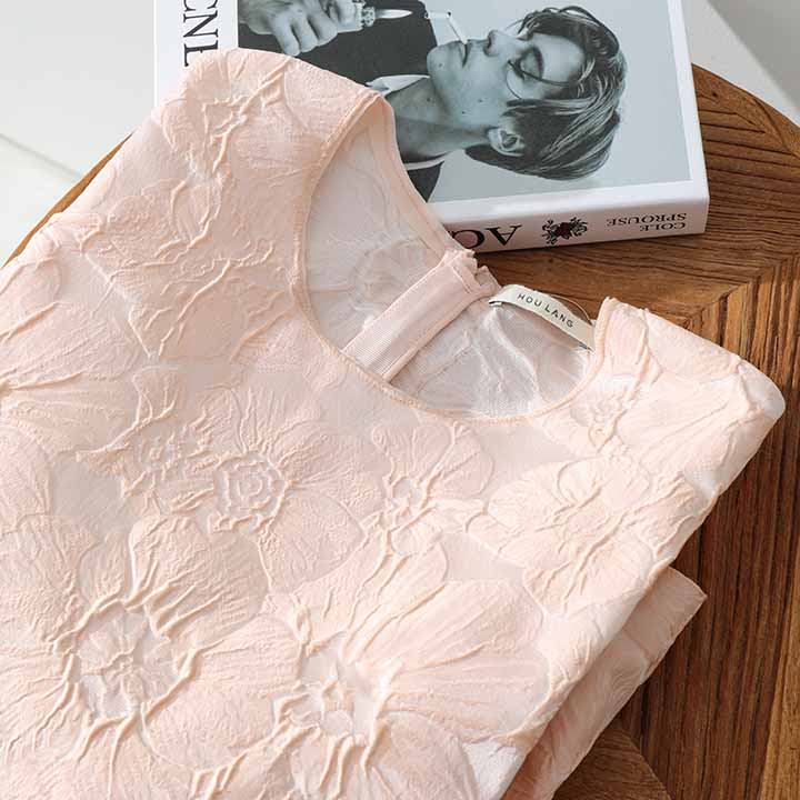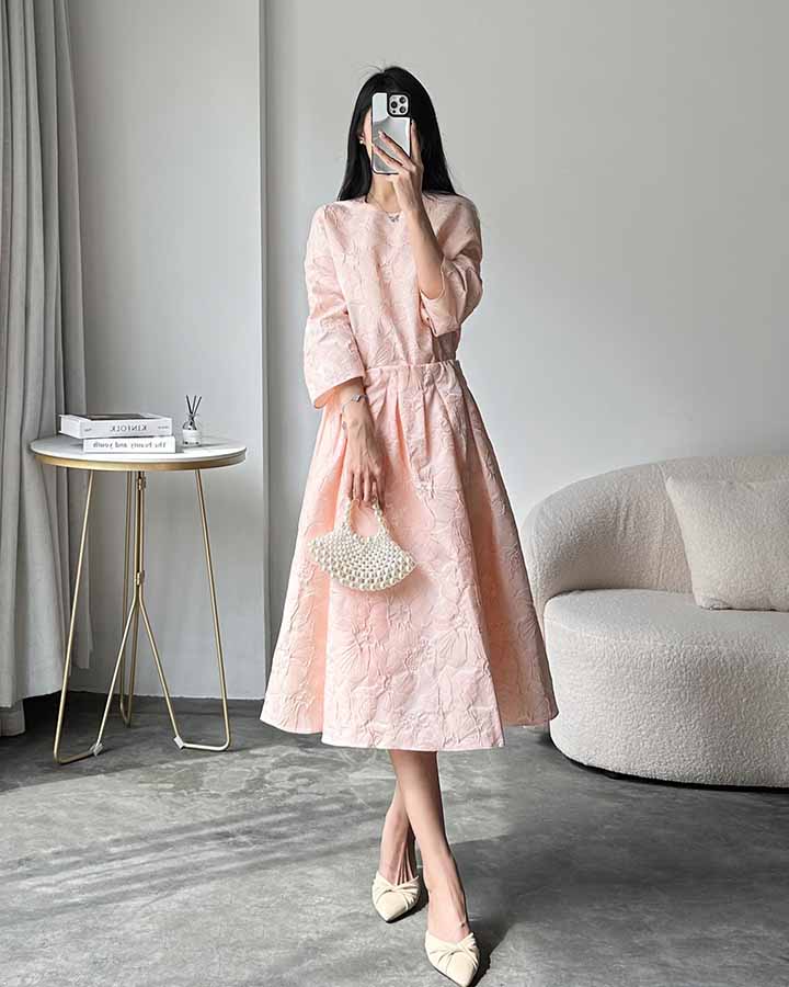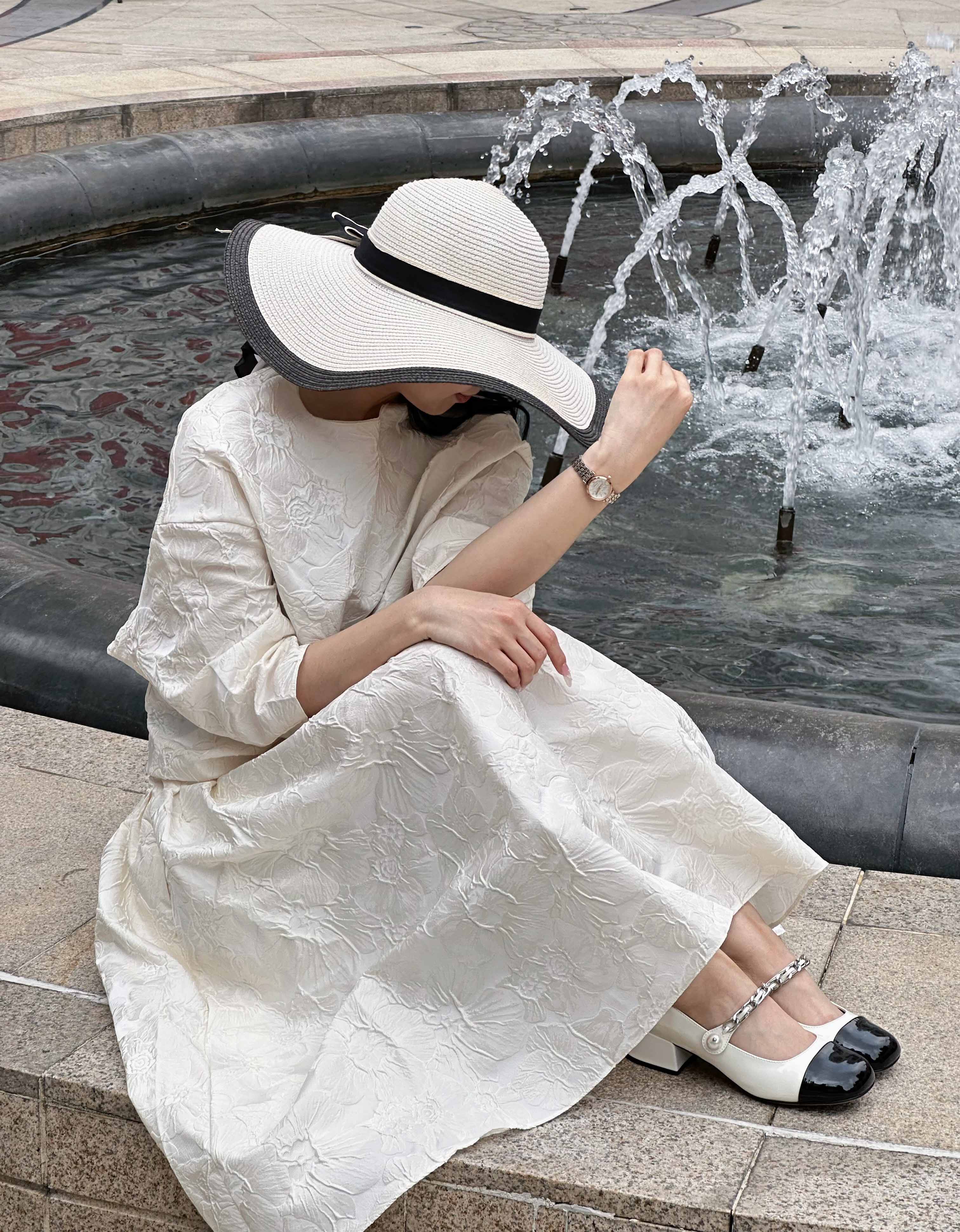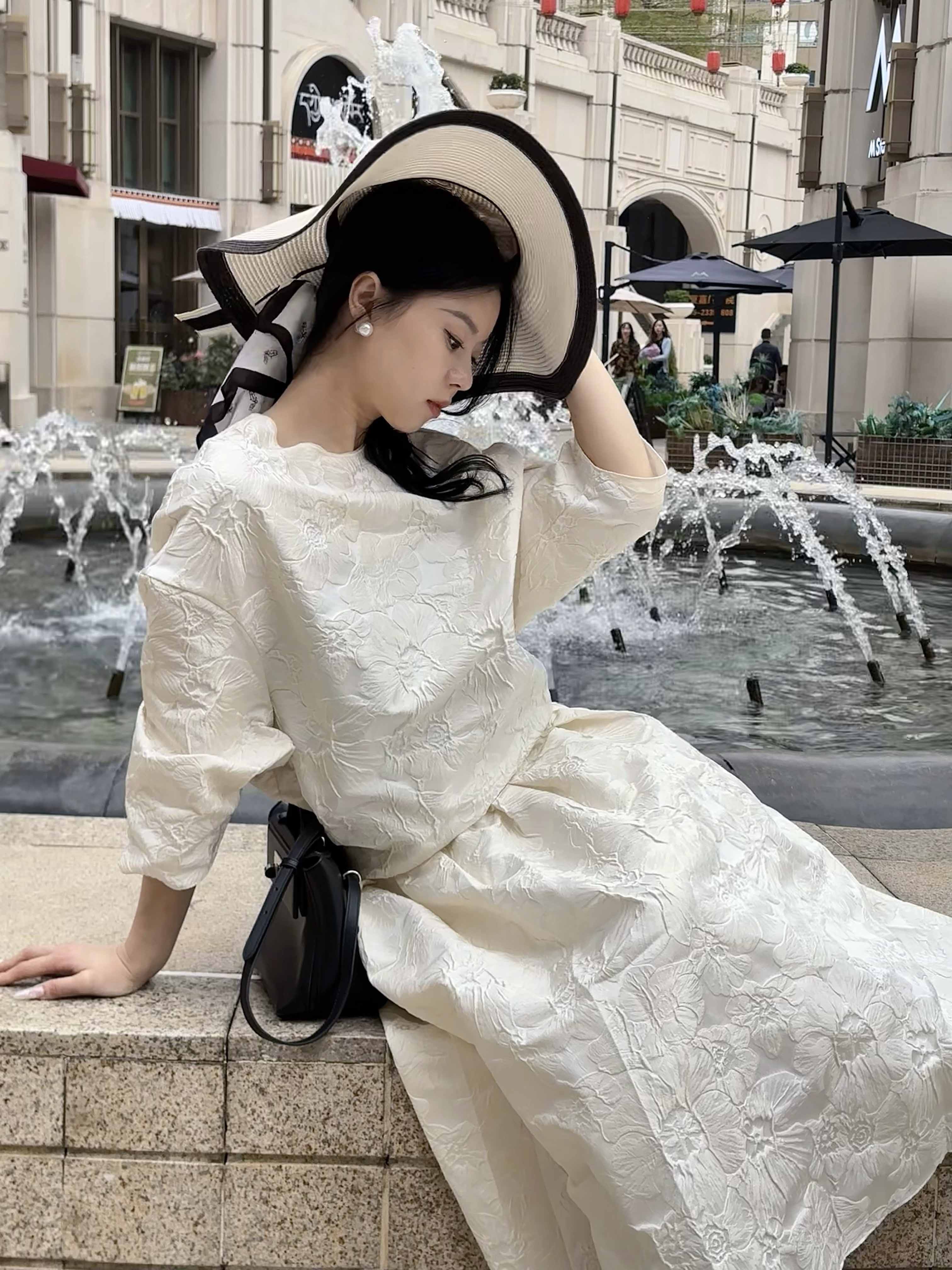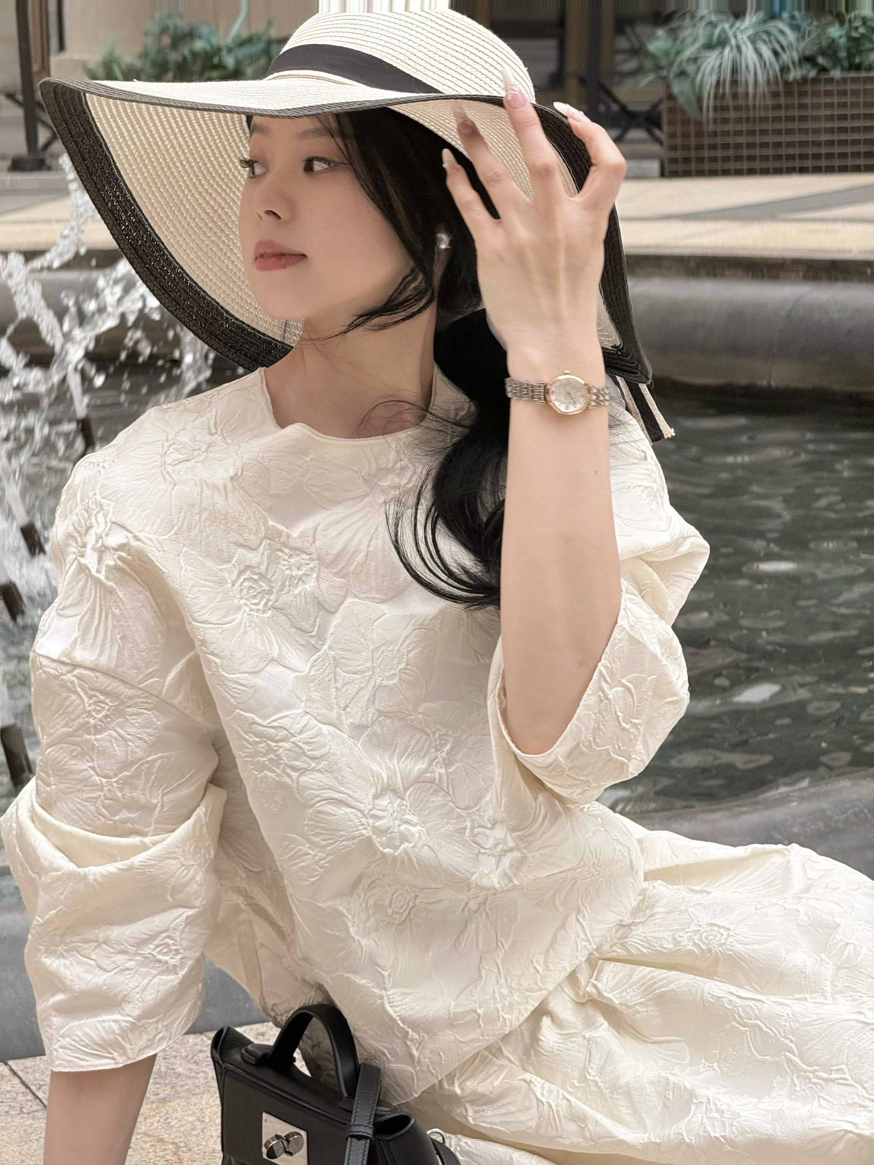 顺丰包邮洛诗琳99750小圆领宽松上衣肌理感阔褶蓬蓬伞裙套装85061