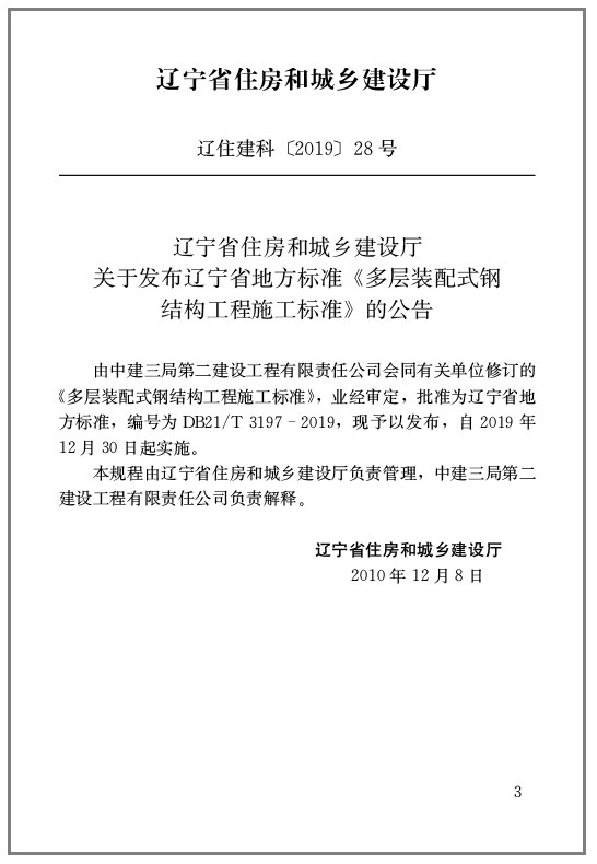 书名:多层装配式钢结构工程施工标准 DB21/T3197-2019