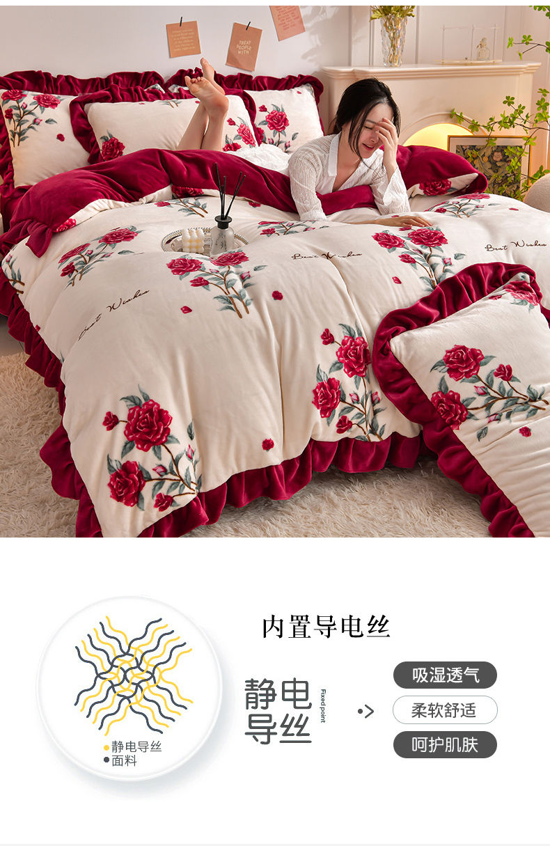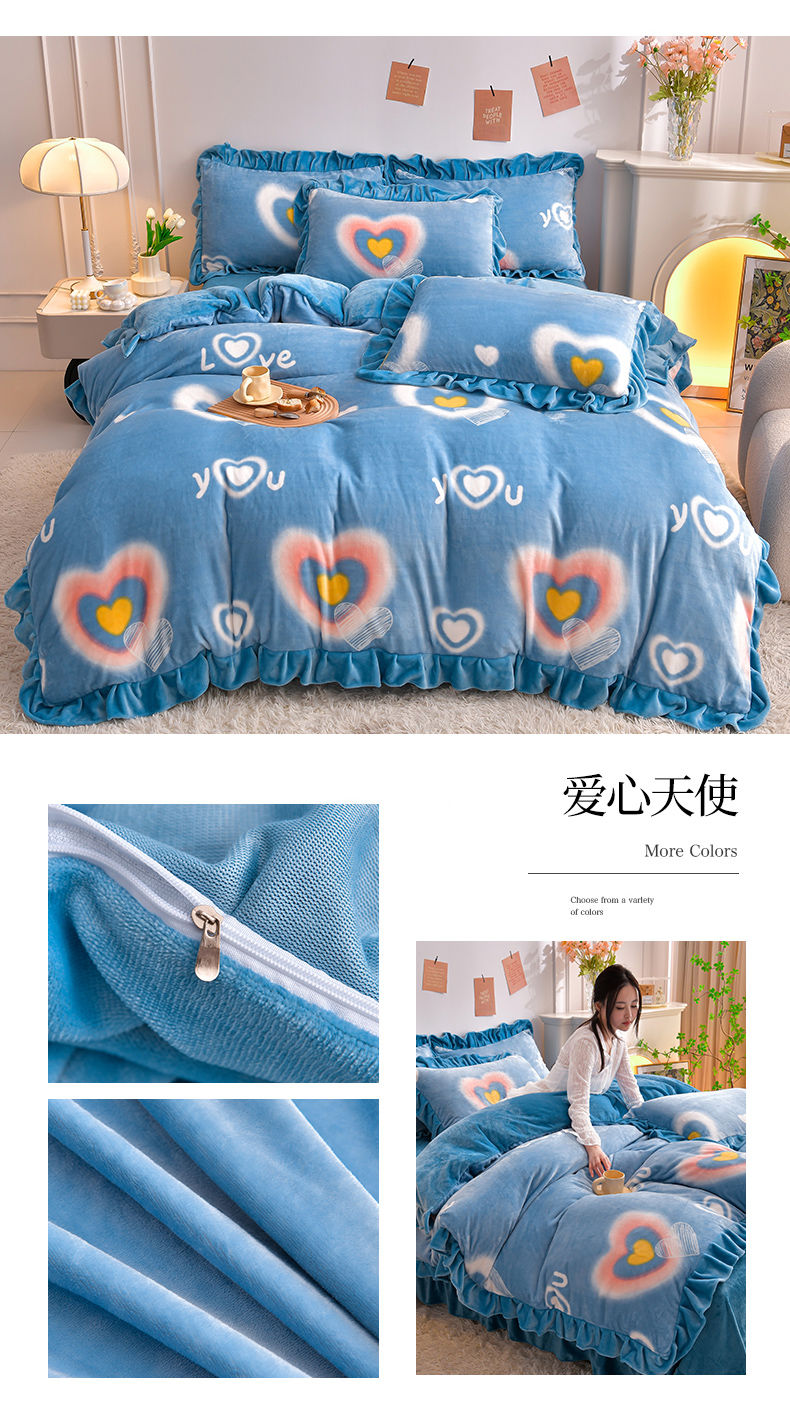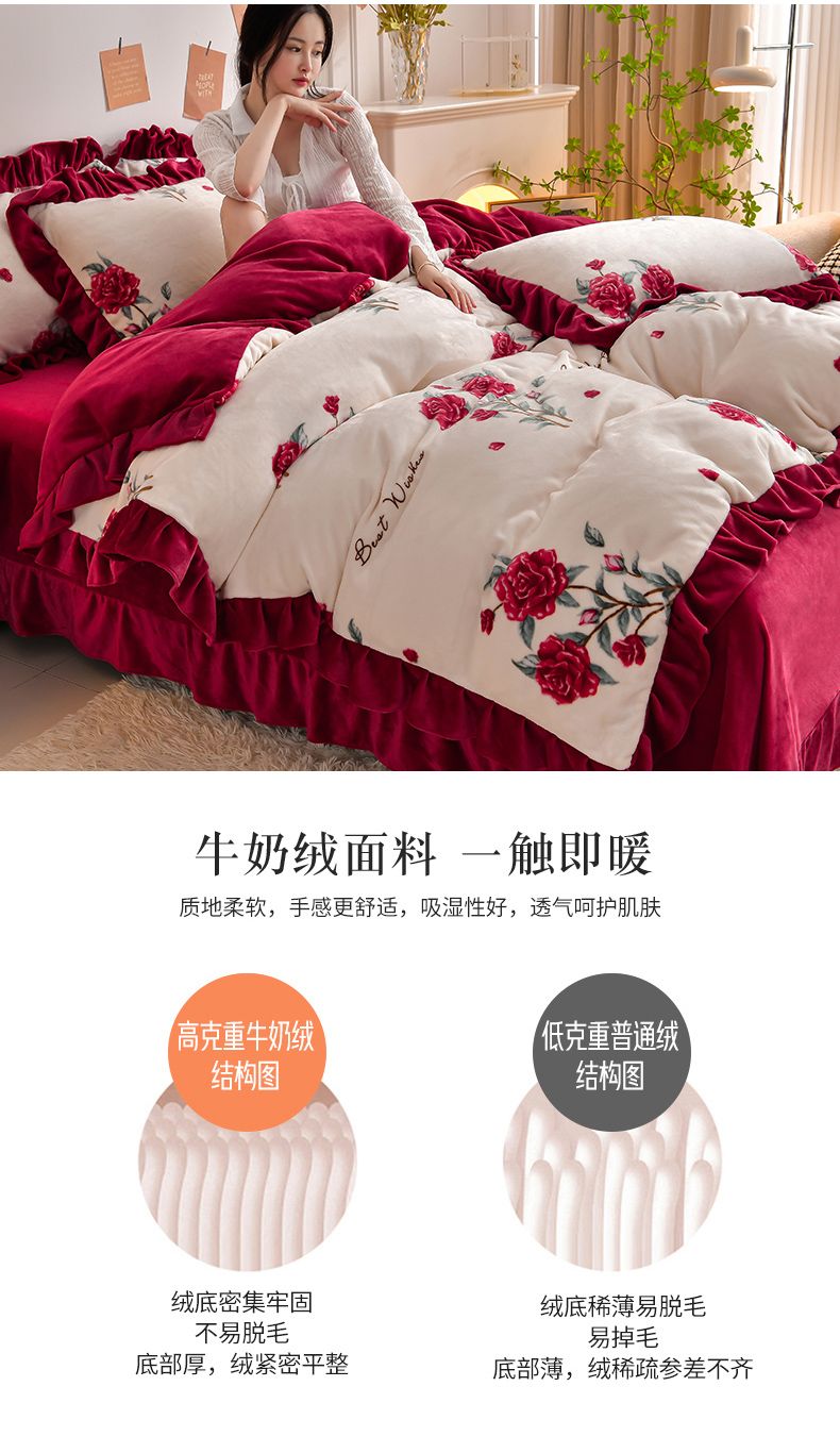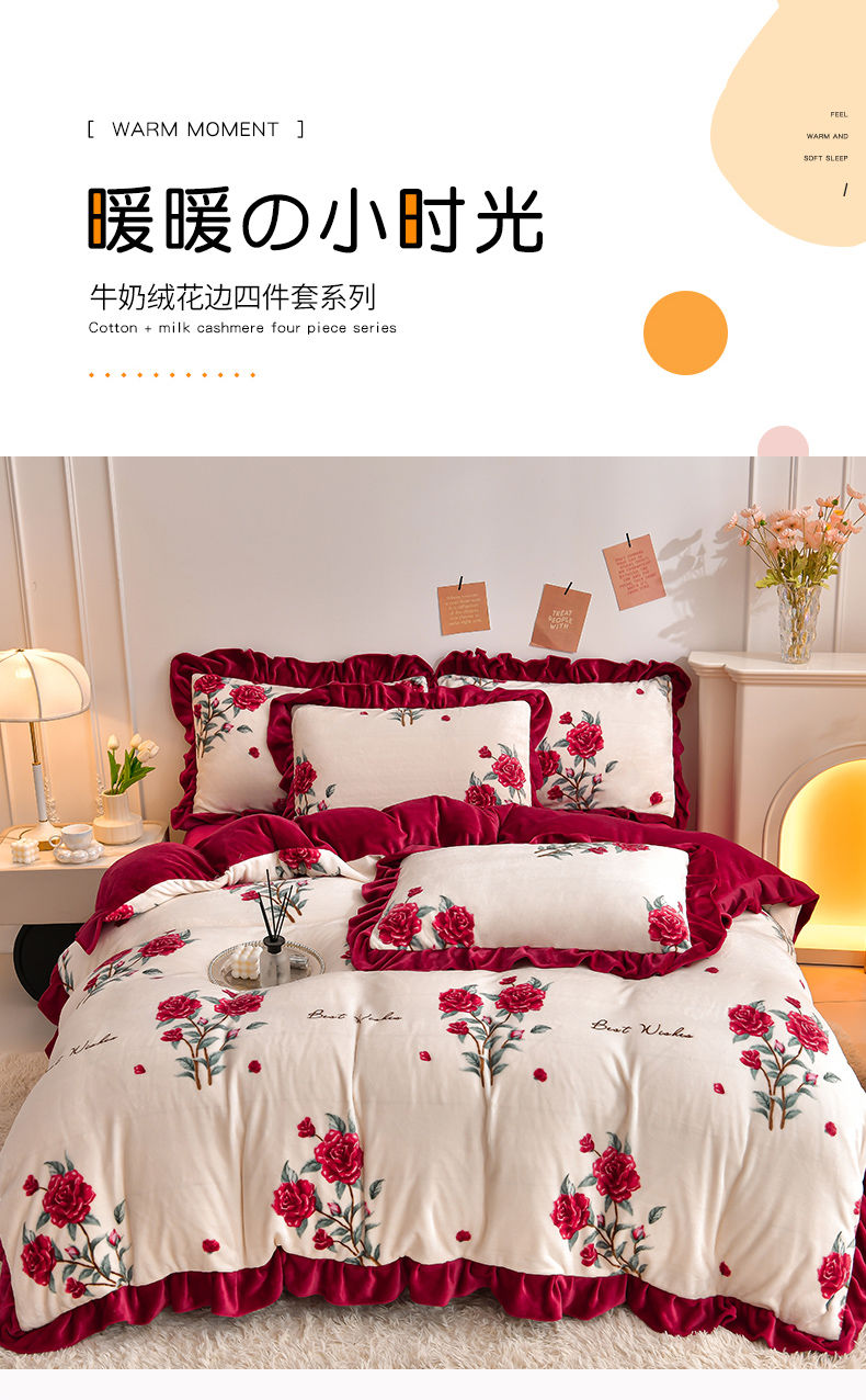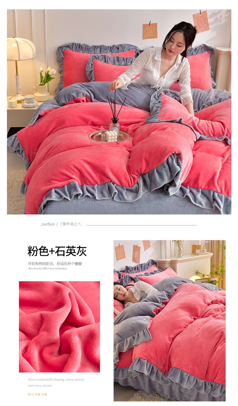 DD-新款冬季加厚牛奶绒四件套床裙款珊瑚绒花边双面被套床上用品
