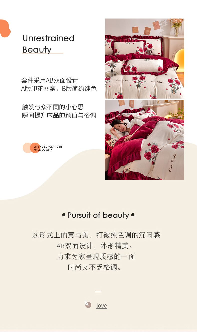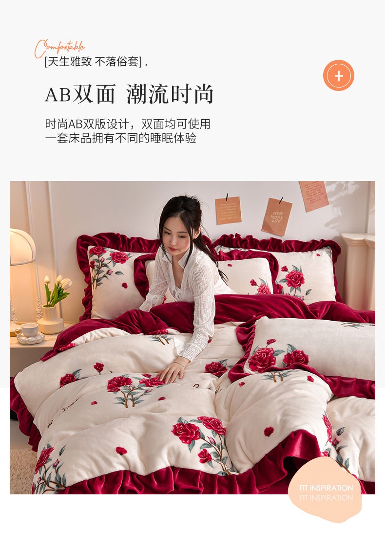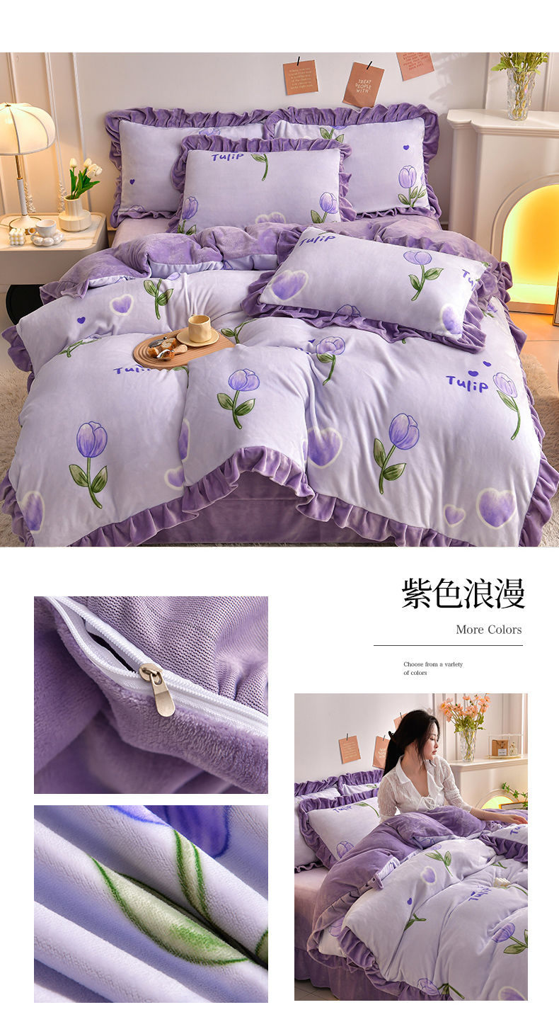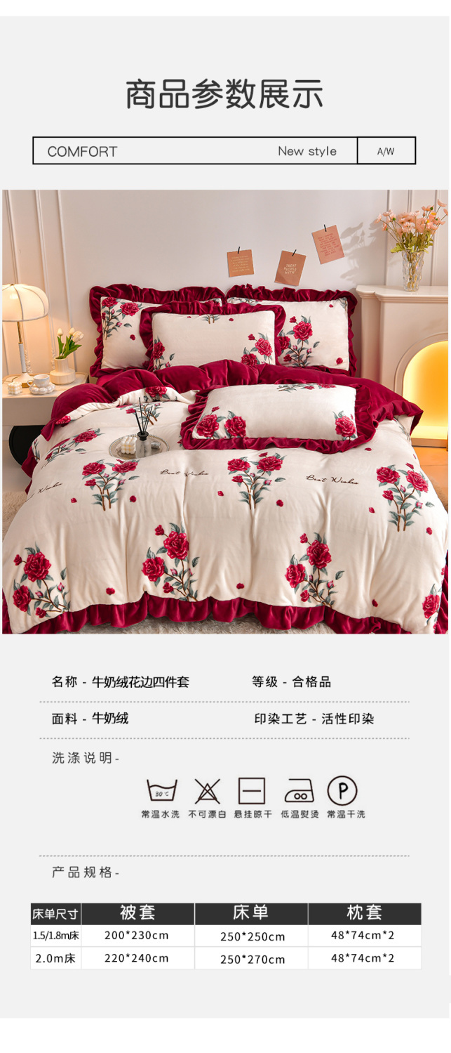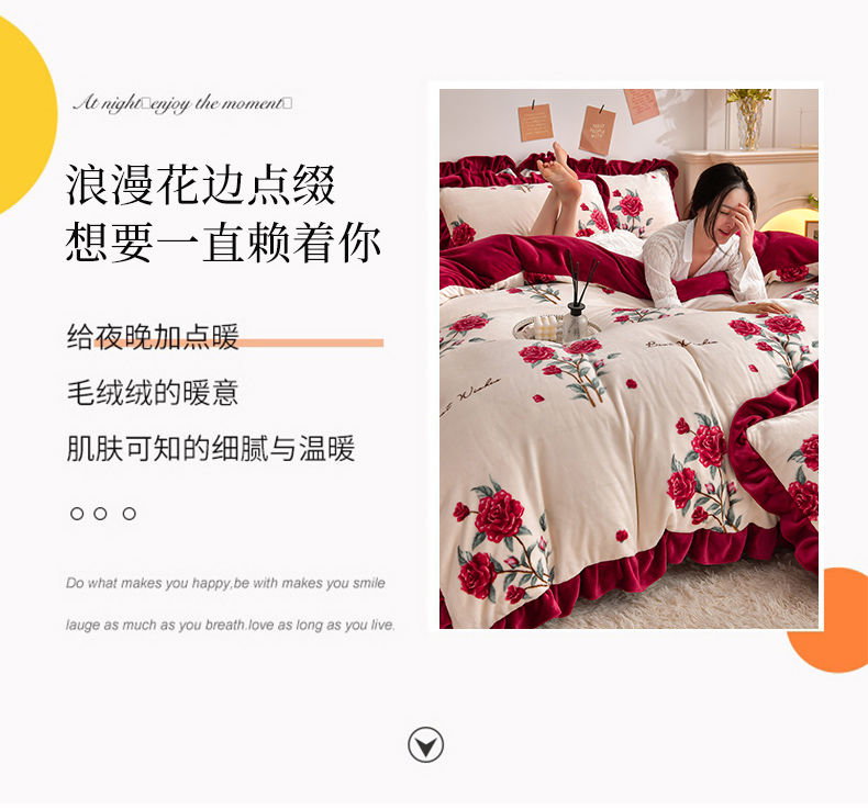 DD-新款冬季加厚牛奶绒四件套床裙款珊瑚绒花边双面被套床上用品