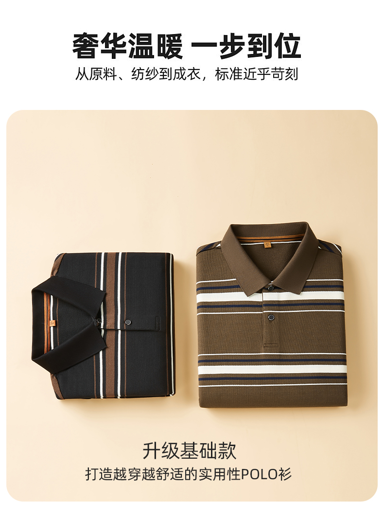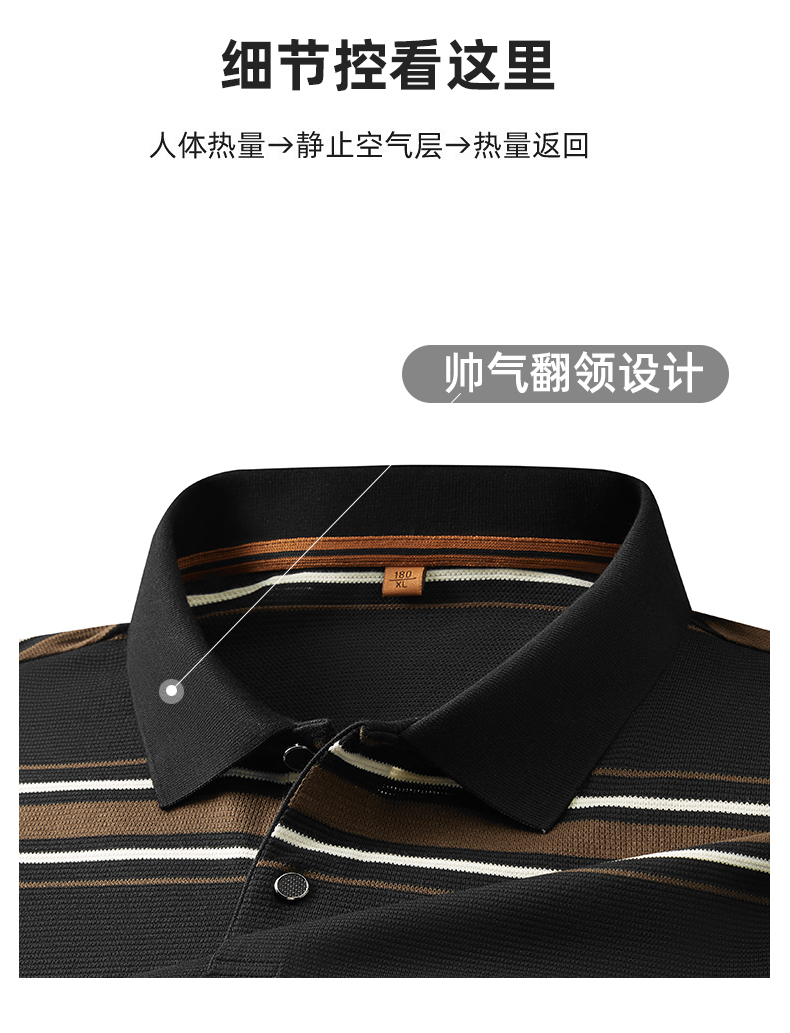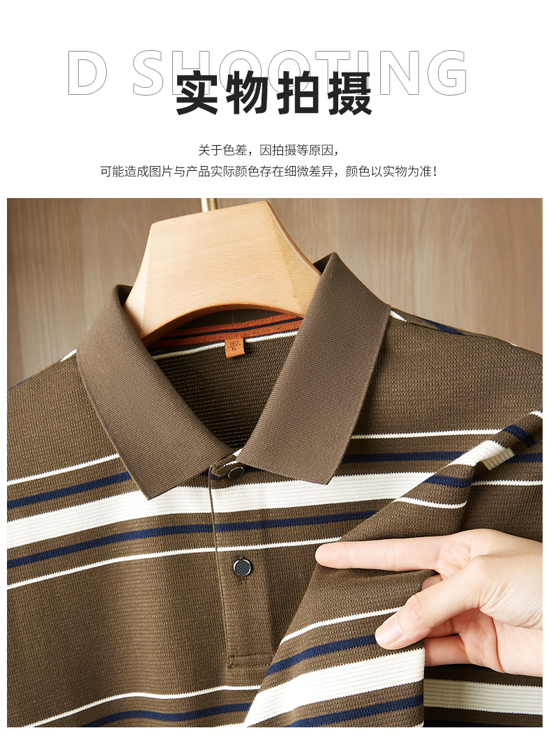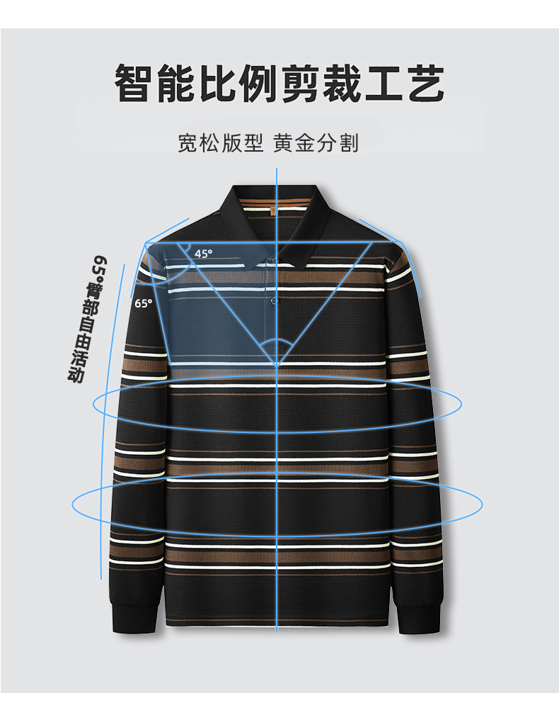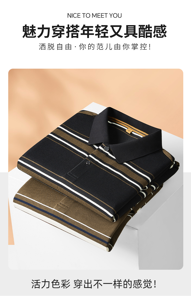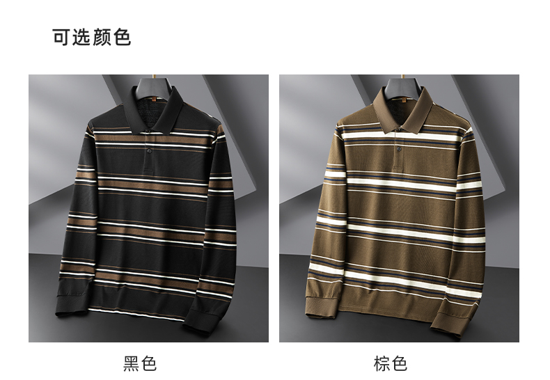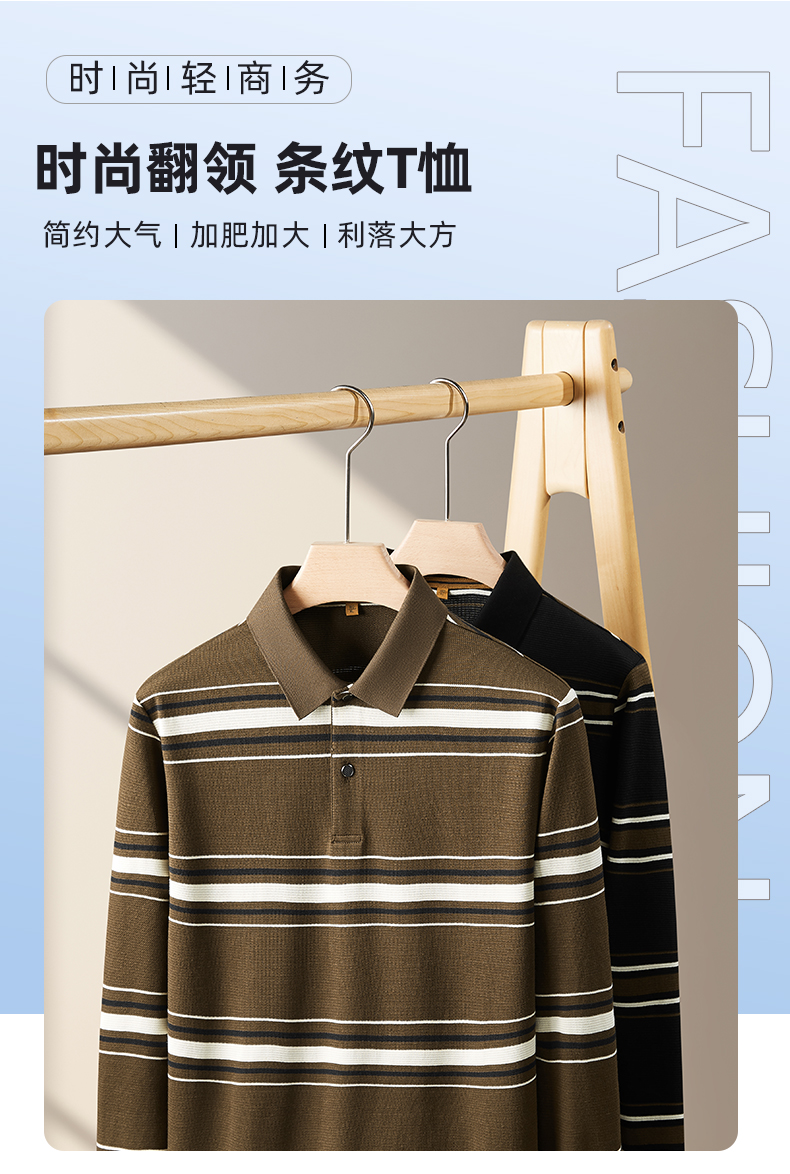 【新款DDP】大依优型大码条纹长袖Polo衫翻领男装加肥加大体恤大号上衣胖子弹力休闲商务