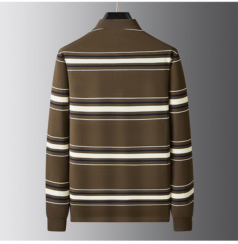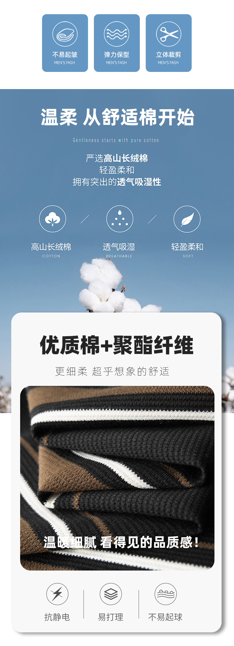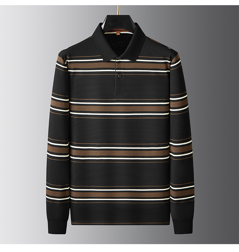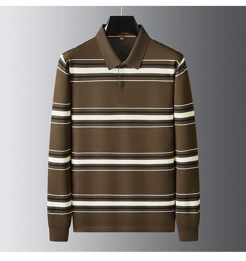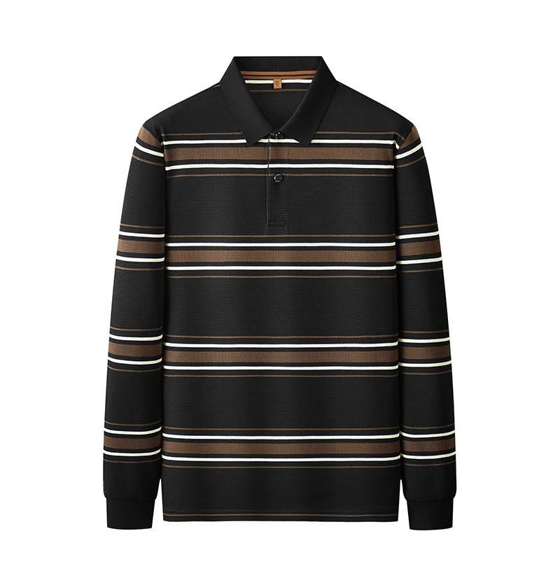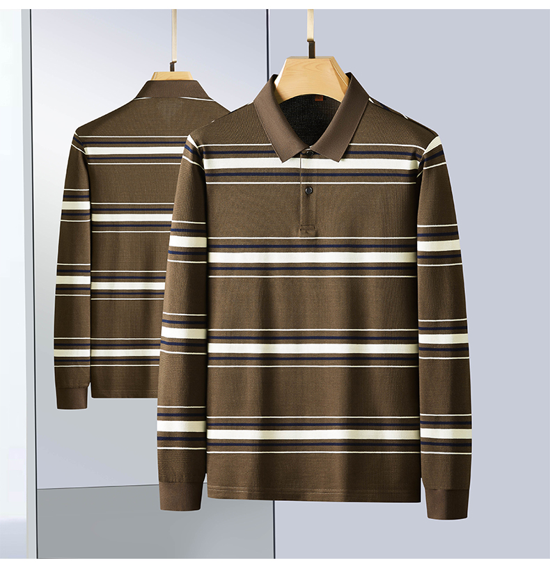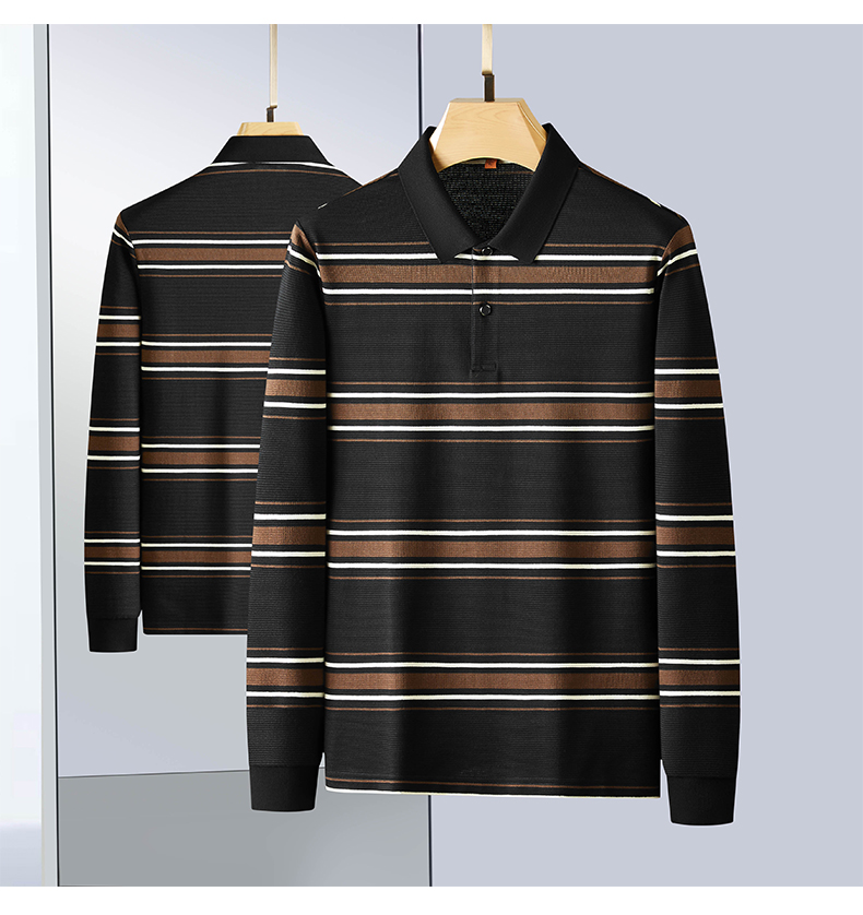 【新款DDP】大依优型大码条纹长袖Polo衫翻领男装加肥加大体恤大号上衣胖子弹力休闲商务