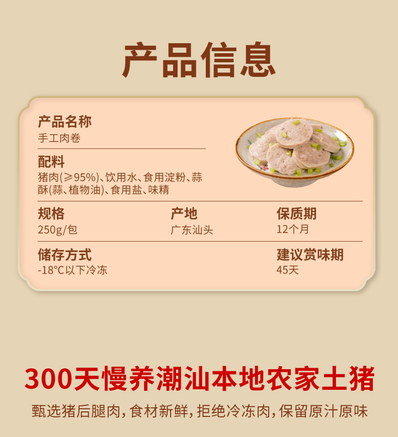 [顺丰冷冻发货]手工猪肉饼肉卷潮汕炒菜煮汤火锅食材250g/包组合