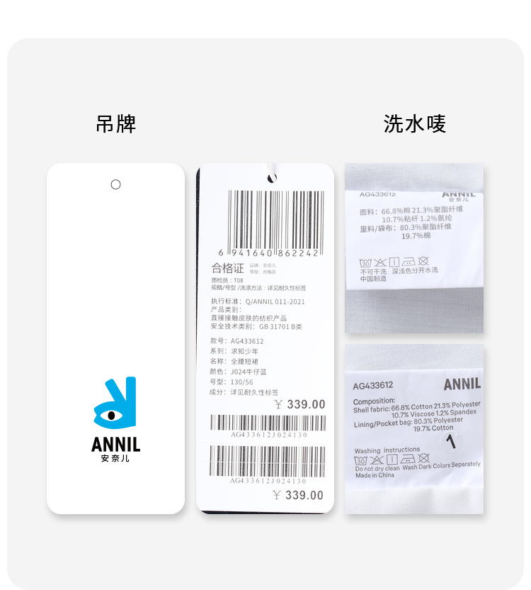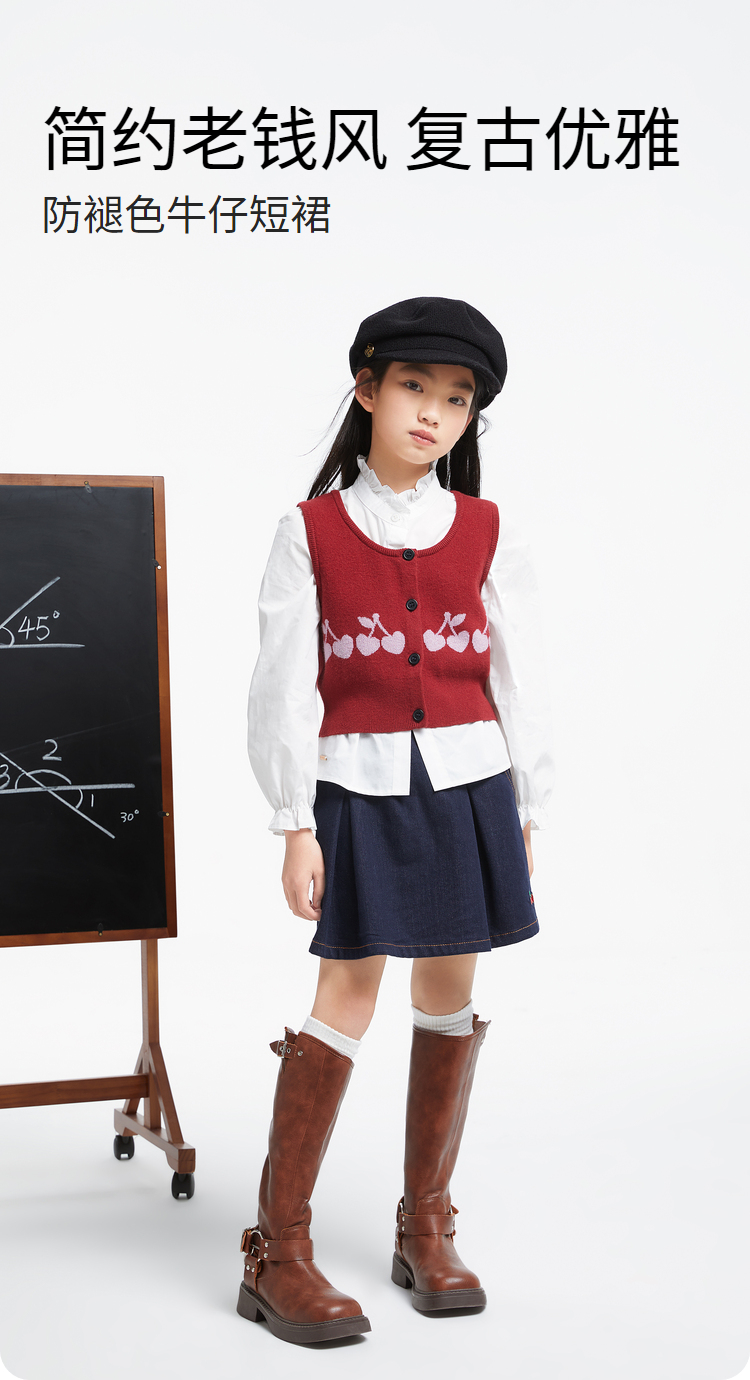 女童防褪色牛仔短裙新款安奈儿童装实体店同款AG433612