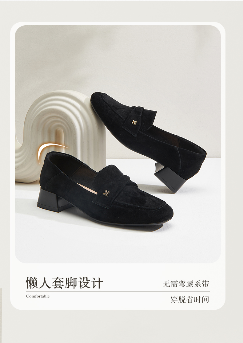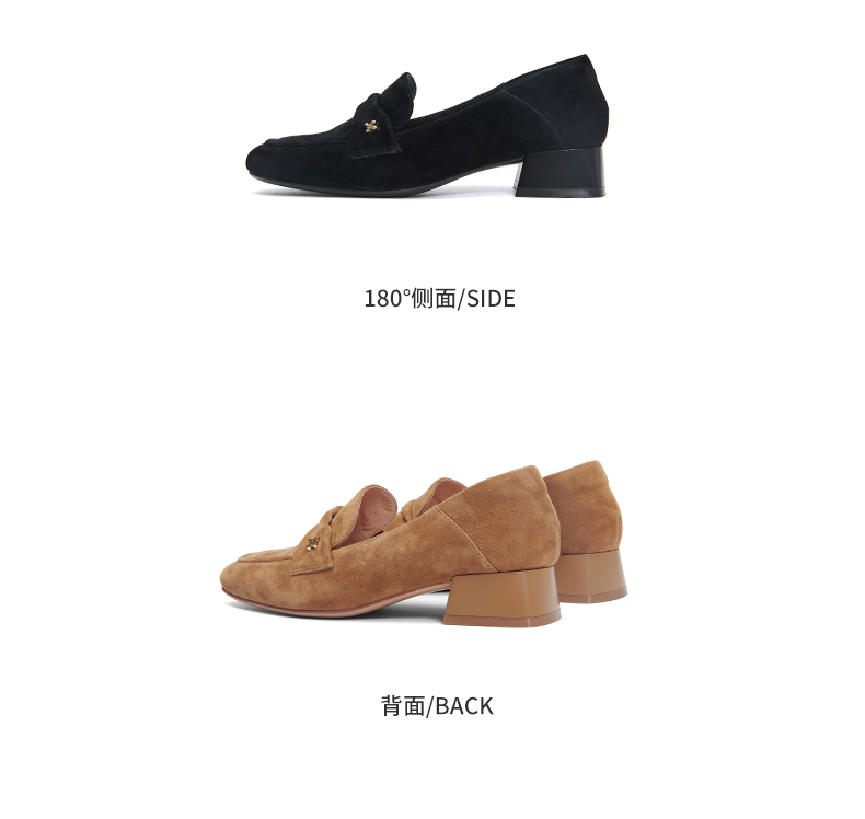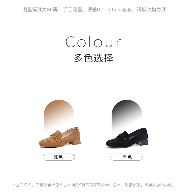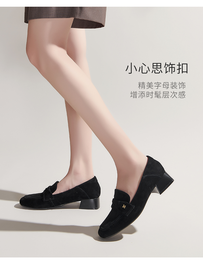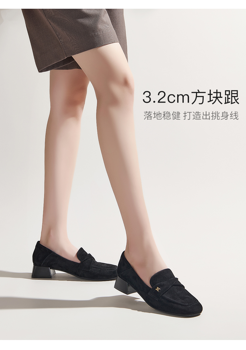 【土豆妈同款】百田森PYQ2C690黑色乐福鞋女粗跟方头法式英伦深口单鞋