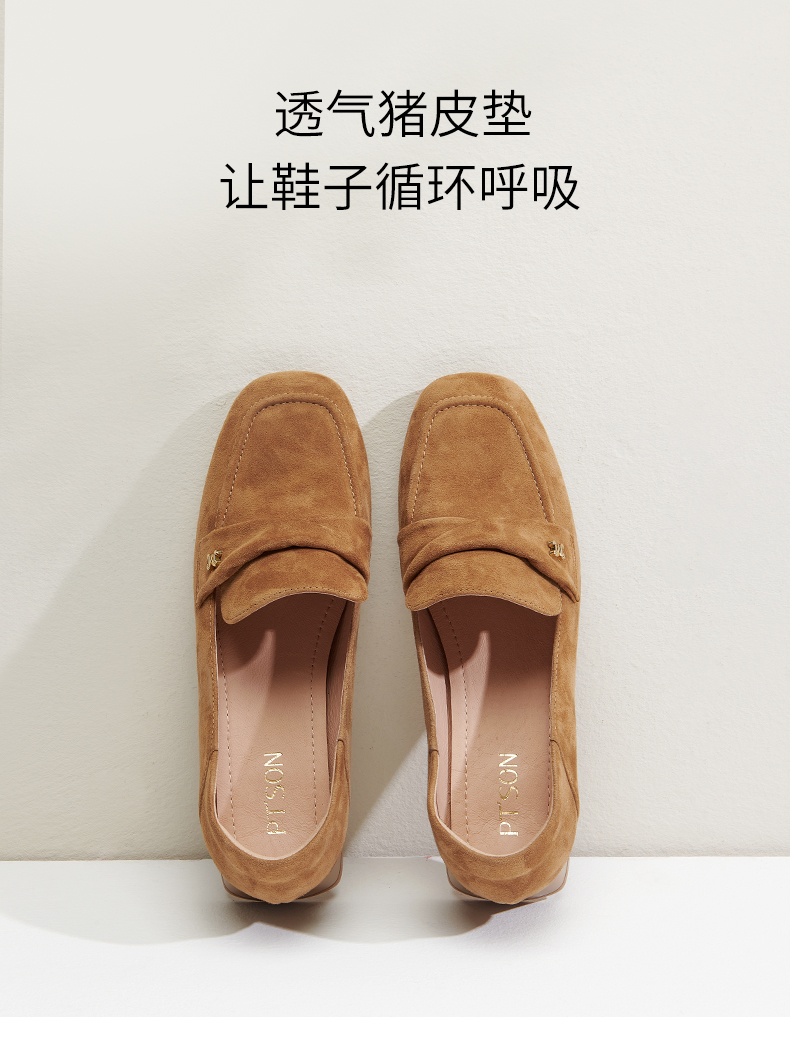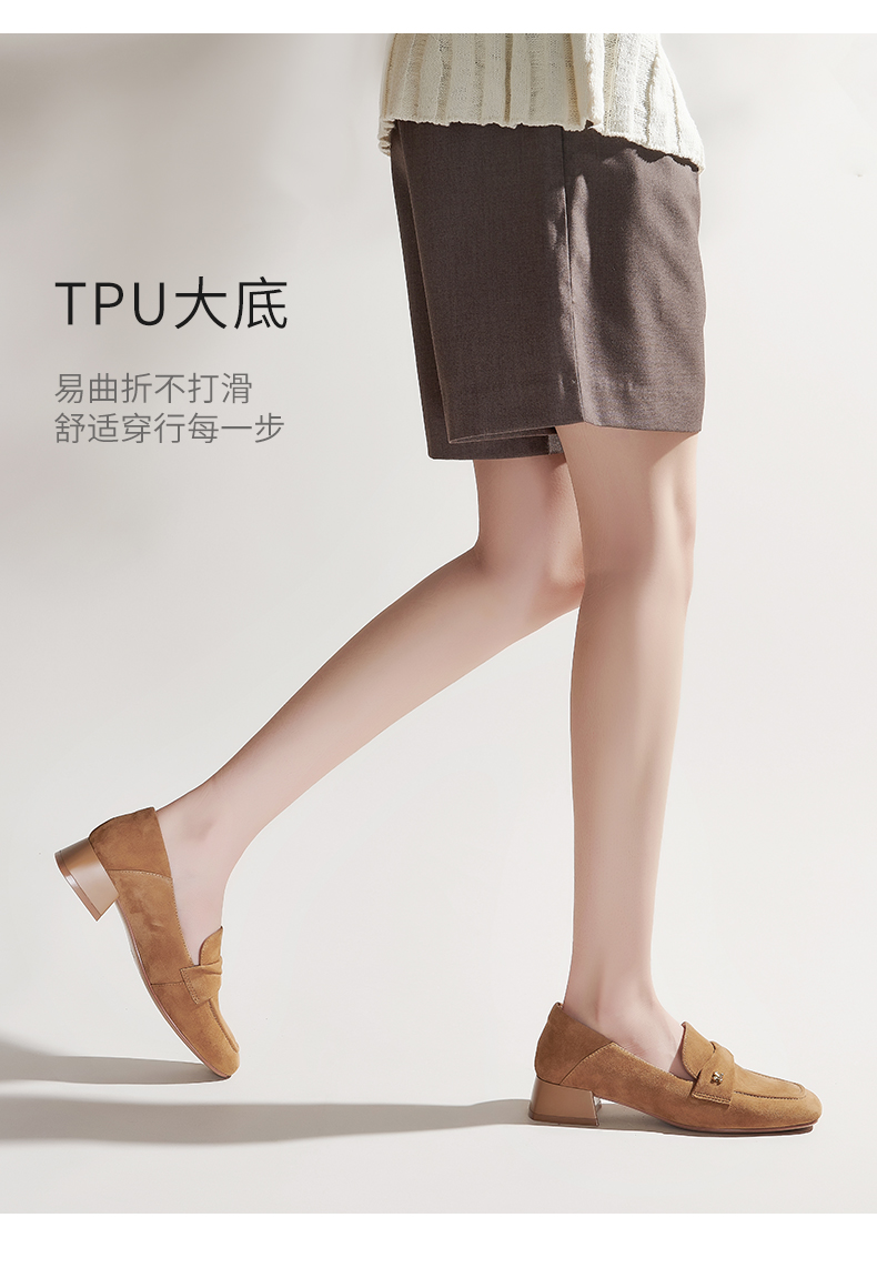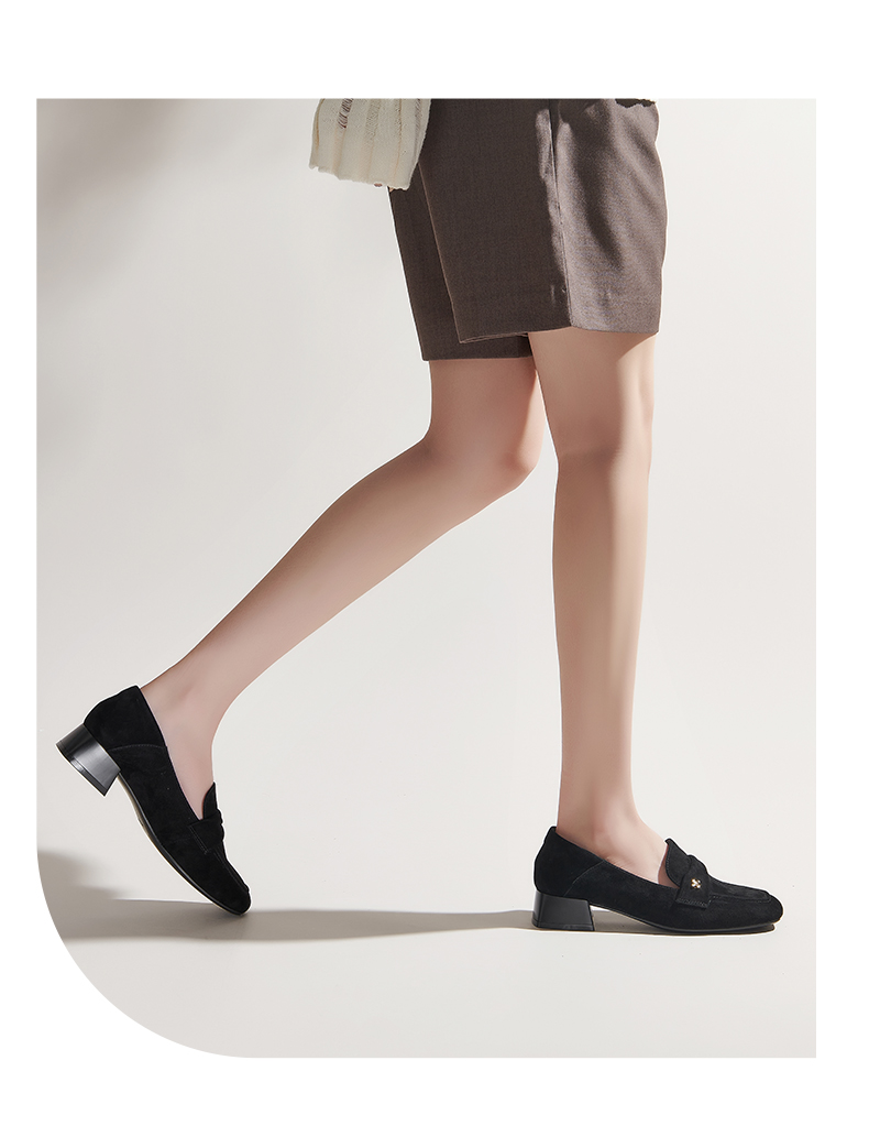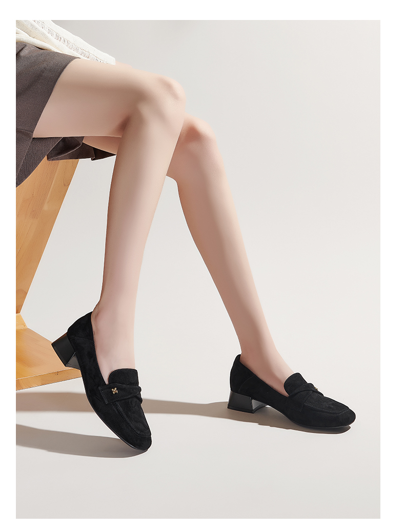 【土豆妈同款】百田森PYQ2C690黑色乐福鞋女粗跟方头法式英伦深口单鞋