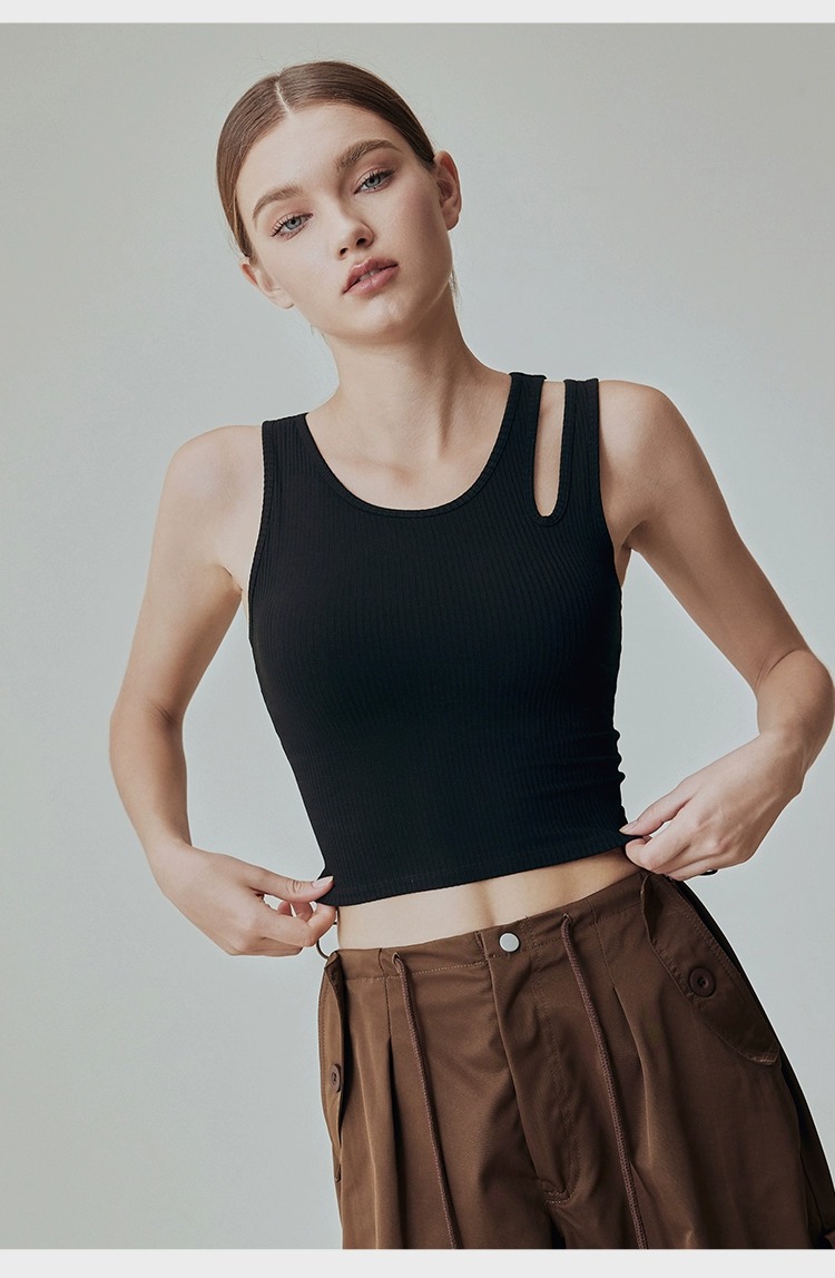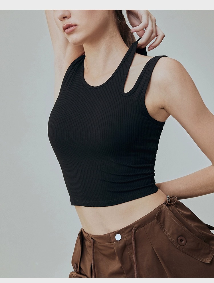 【限时秒】YOGACODE【火树银花系列】镂空肩带速干带胸垫瑜伽背心YCDS450