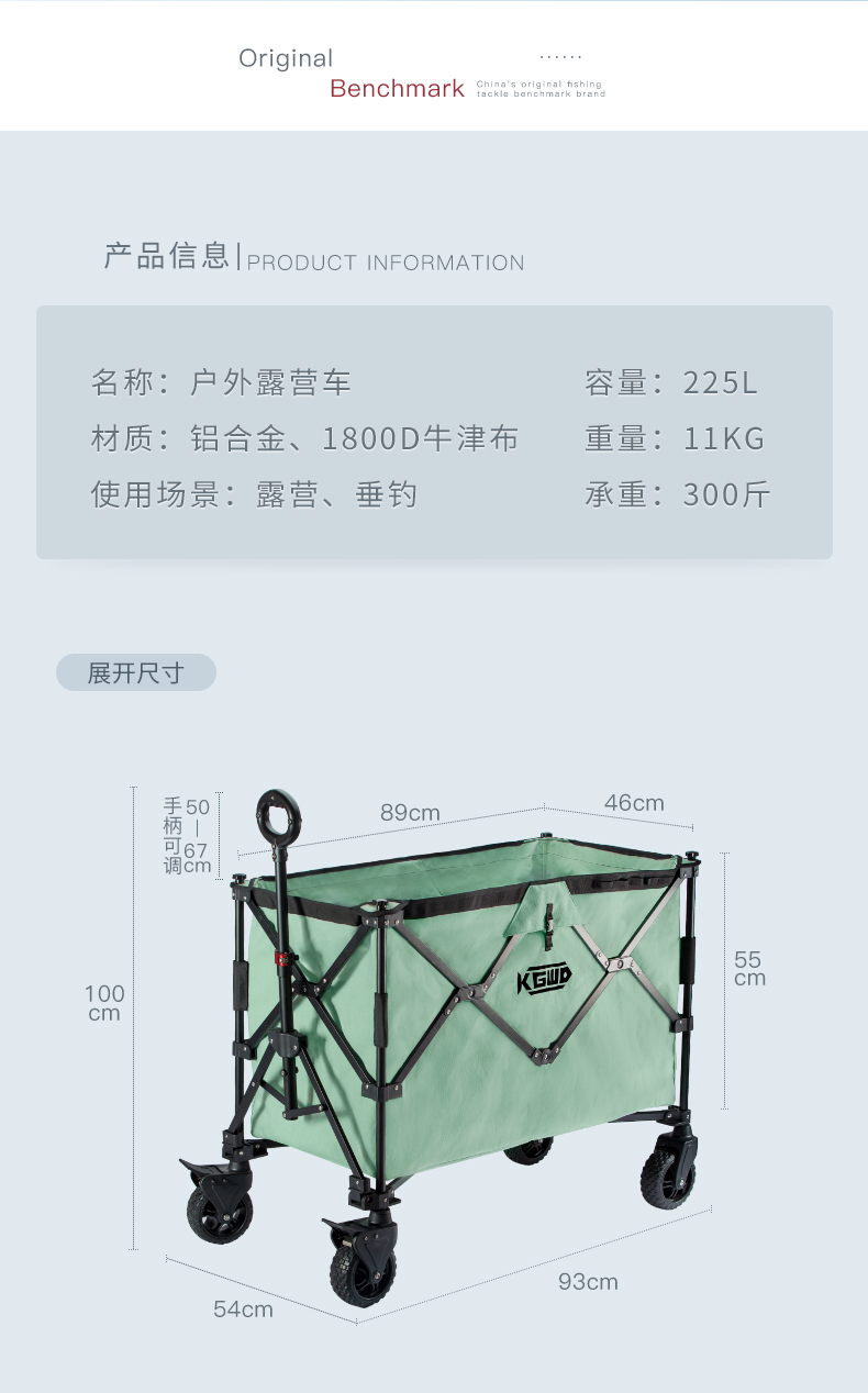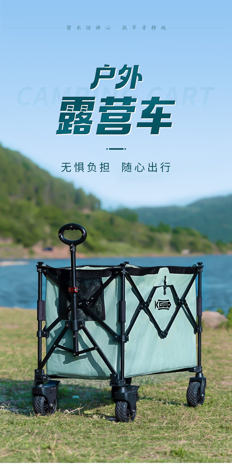 空钩悟道户外露营车 可折叠野餐手推车大容量营地儿童可躺拖车