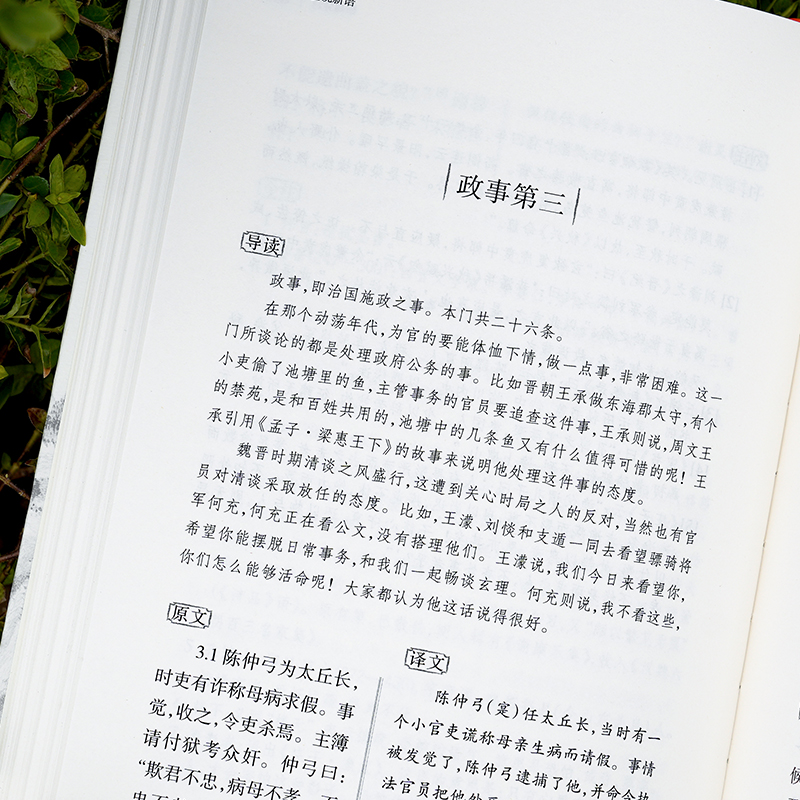 《世说新语》是南北朝时期南朝宋时所创作的文言志人小说,作者为刘义庆。该书收录了东汉魏晋士族阶层的逸闻轶事,风俗习惯,言谈举止,而以两晋为主。东汉末年,天下大乱,军阀混战,宦官专权,王室衰微,统治阶级内部矛盾重重,民不聊生。北方民族纷纷南下,雄踞中原,晋室被迫南迁,政局动荡,有些人议论朝政,受到当局迫害。而有些人为了躲避迫害,隐逸山林,纵酒行乐,不过问时事。《世说新语》正反映了这一时代的社会状况。刘义庆将这些逸闻轶事纂集起来,分门别类,加以罗列。全书共三十六门,一千一百三十条。本次出版,增加了注释、翻译和导读,此外还收录有刘孝标注。