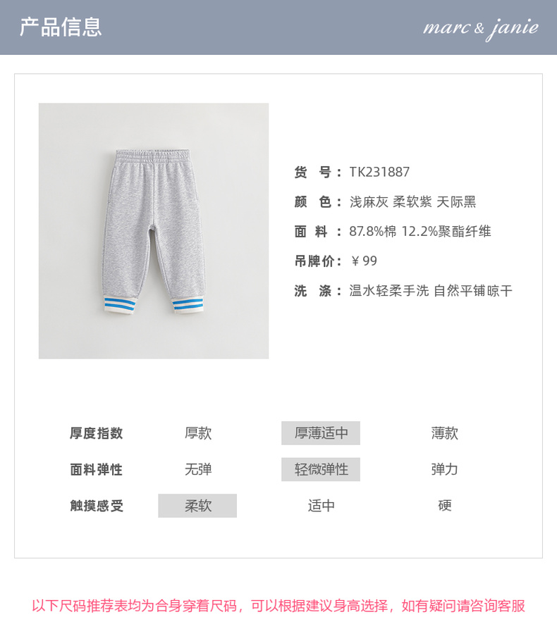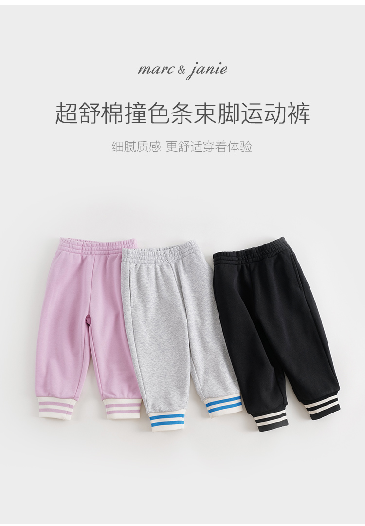 马克珍妮秋装男女童超舒棉撞色休闲运动裤231887