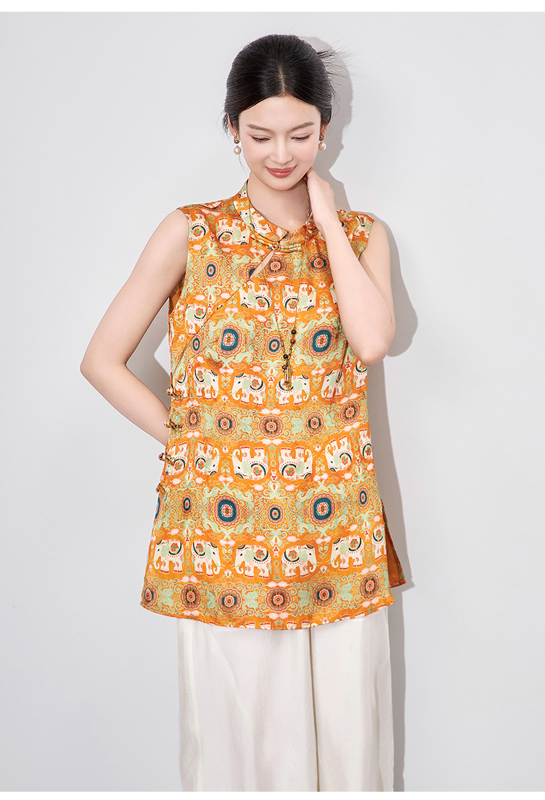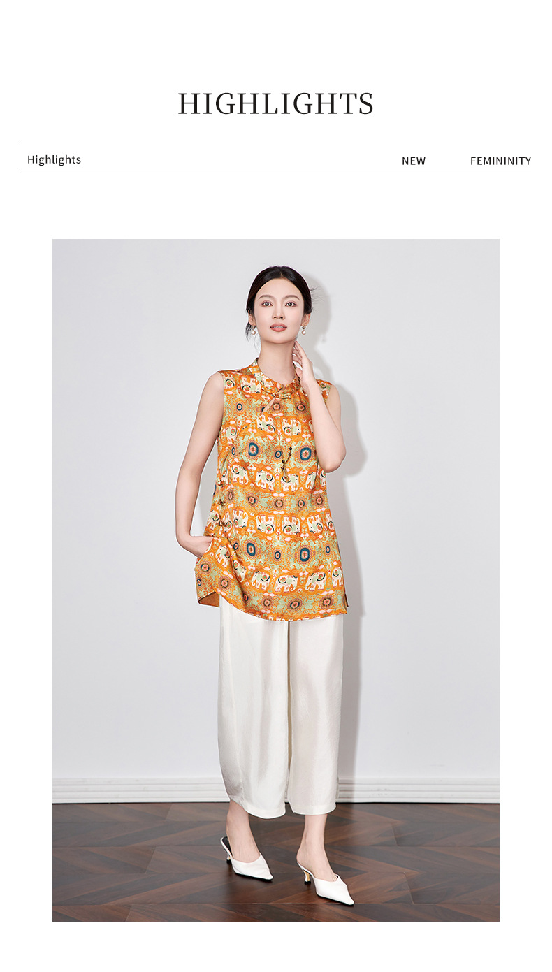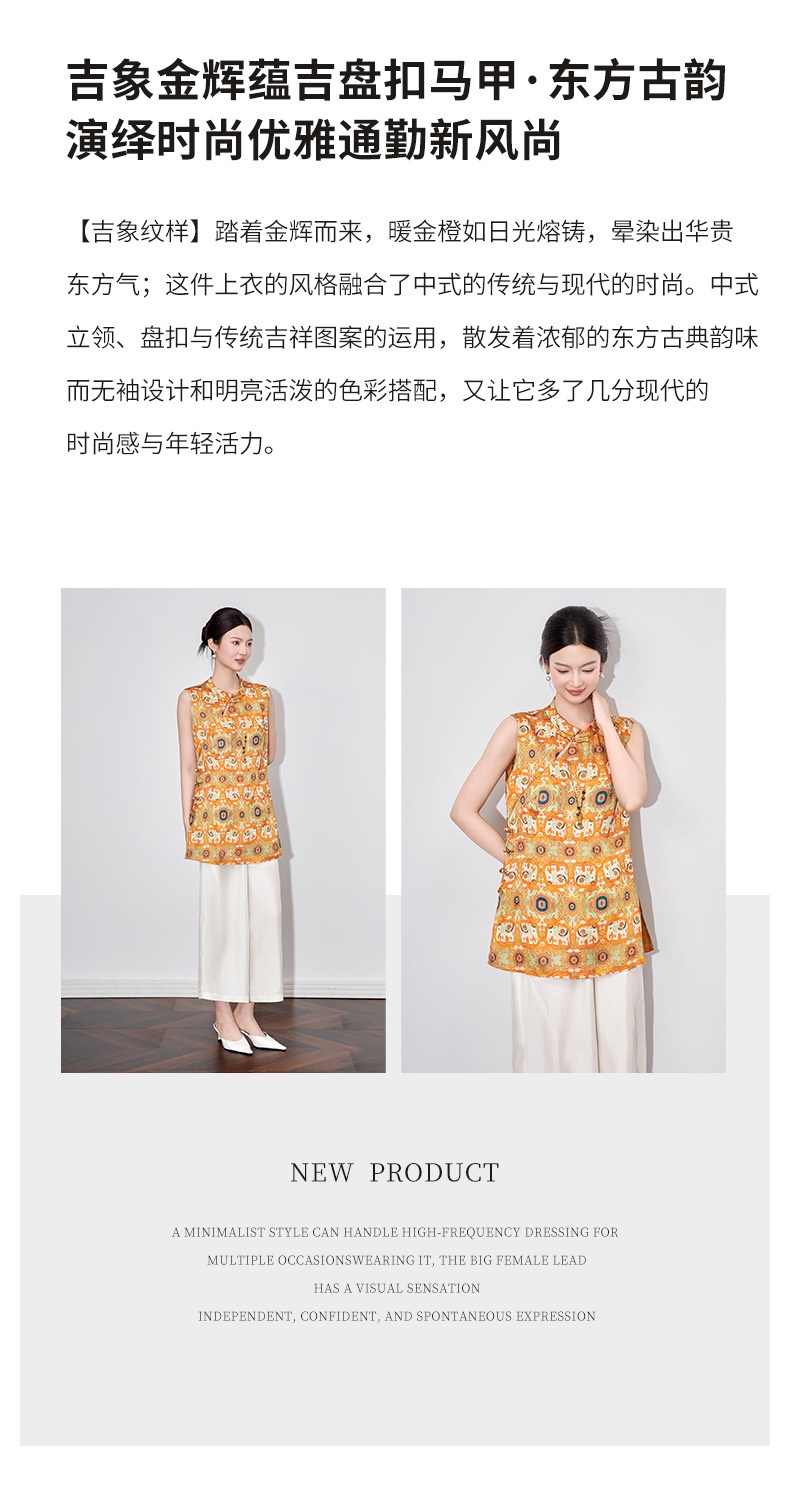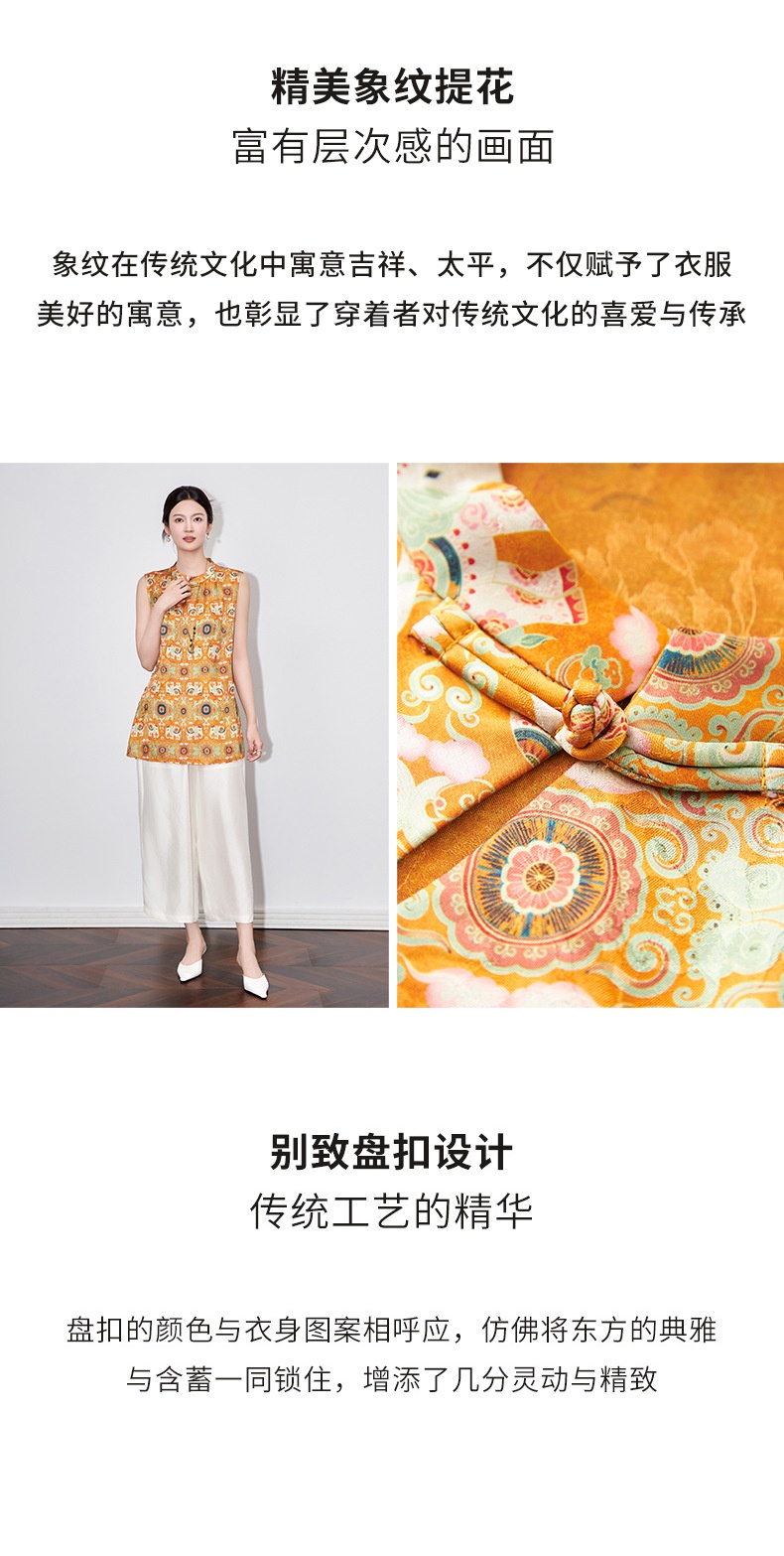 「高货wl」全新升级【铂金会员330/天猫439/差价109】(92715)洛诗琳新中式盘扣香云纱上衣2025夏季小象提花马甲上衣