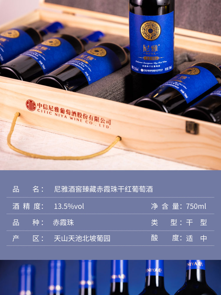 中信尼雅·尼雅酒窖臻藏赤霞珠干红葡萄酒750mlX6 天山北麓优质葡萄 口感平衡余味悠长