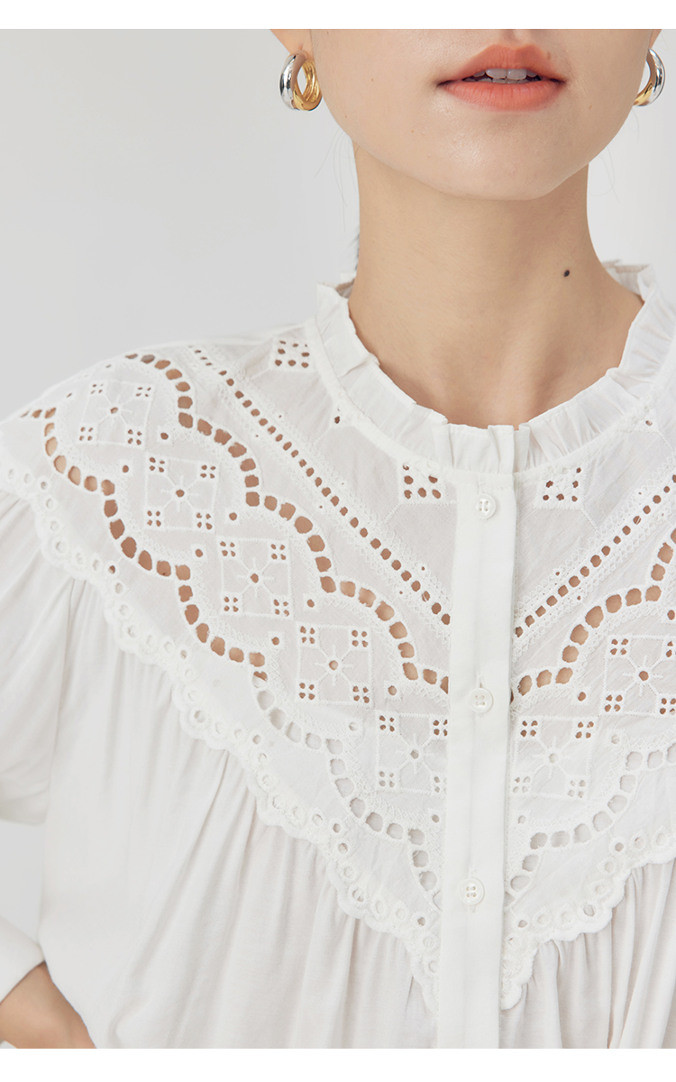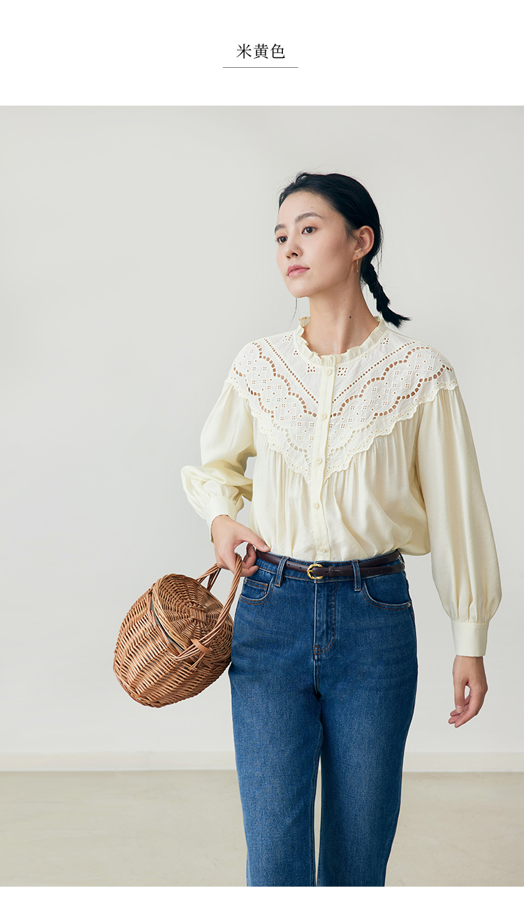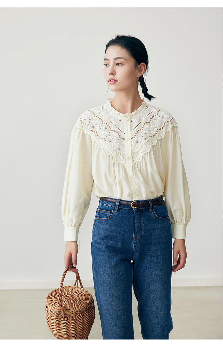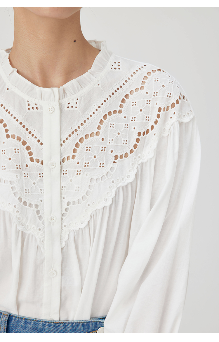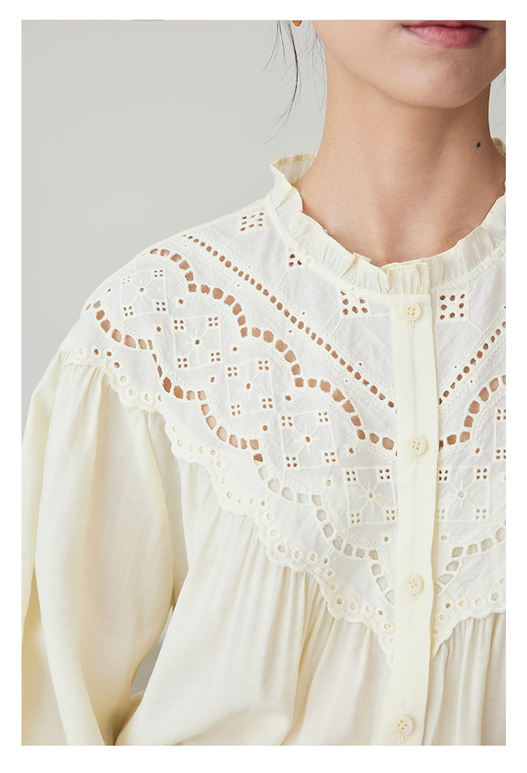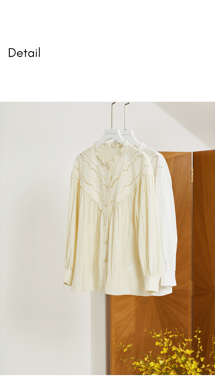HeyDress蕾丝花边领衬衣女春秋法式复古宽松宫廷风长袖气质衬衣