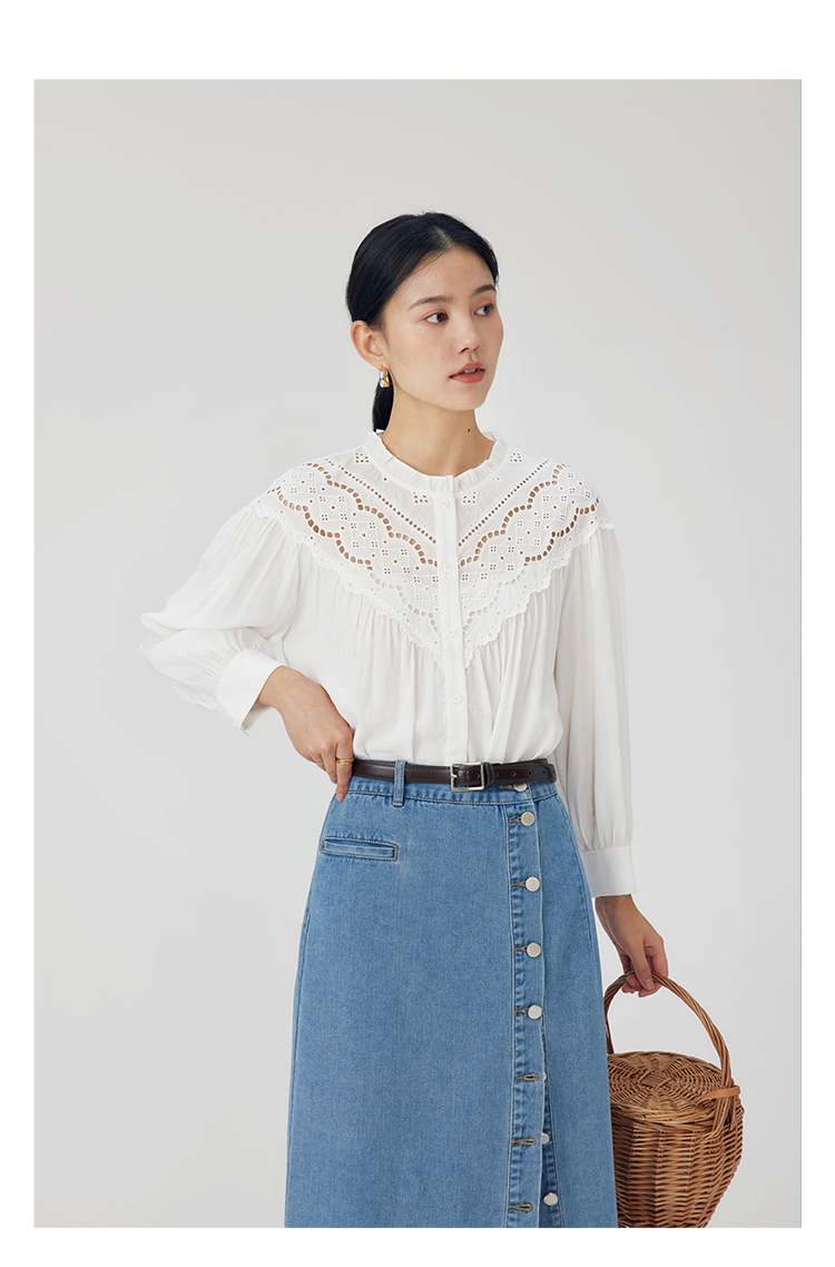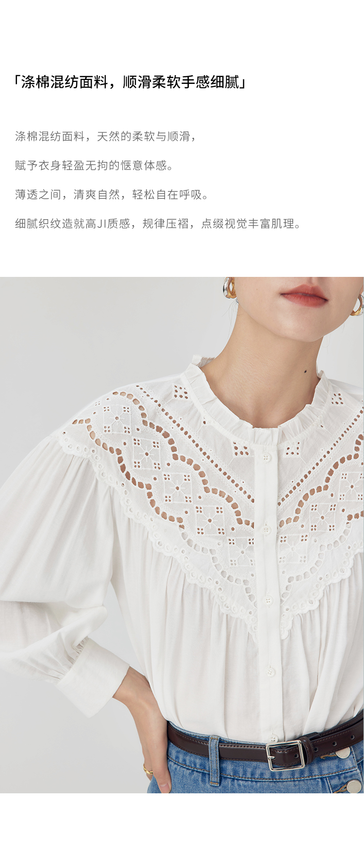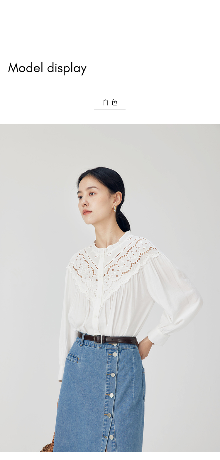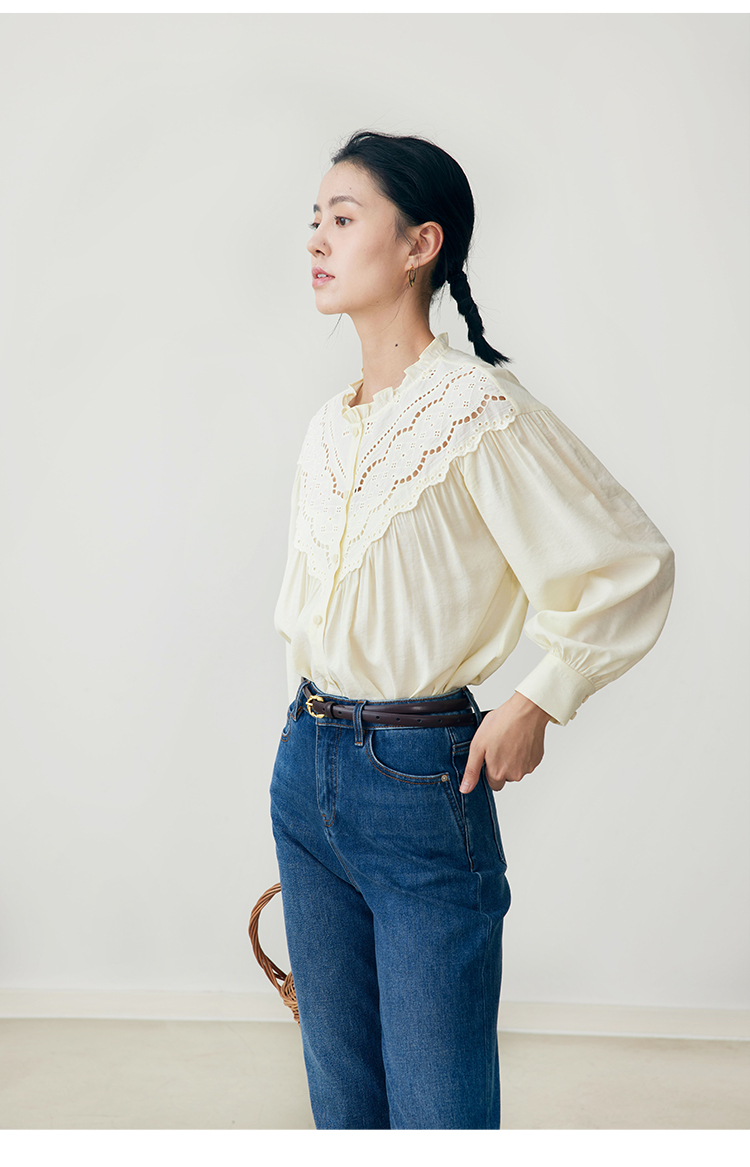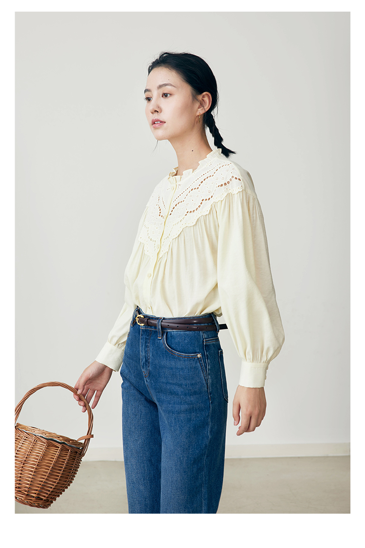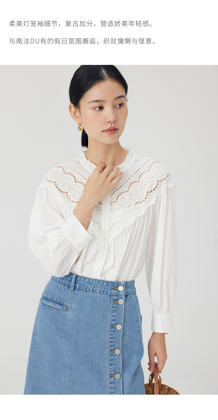 HeyDress蕾丝花边领衬衣女春秋法式复古宽松宫廷风长袖气质衬衣