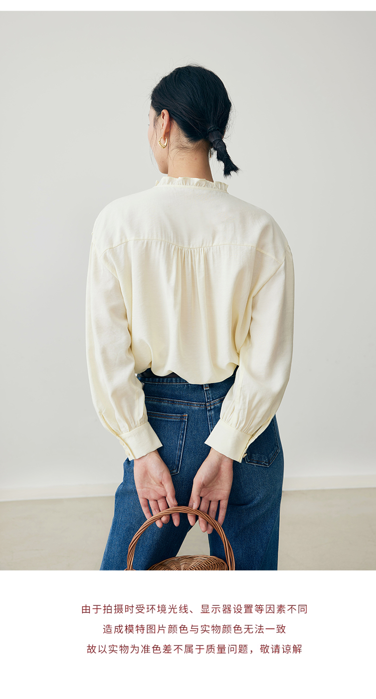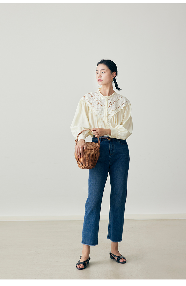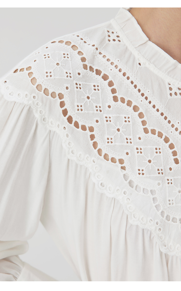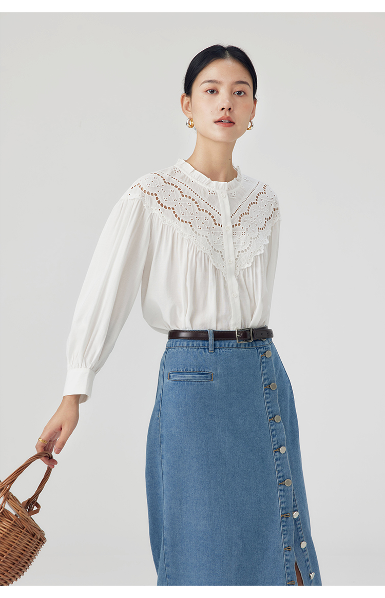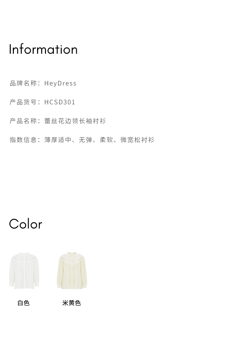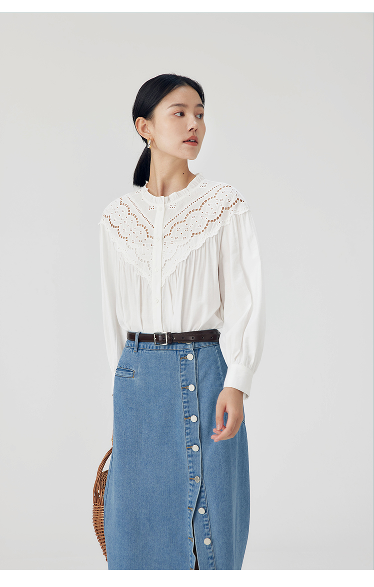 HeyDress蕾丝花边领衬衣女春秋法式复古宽松宫廷风长袖气质衬衣