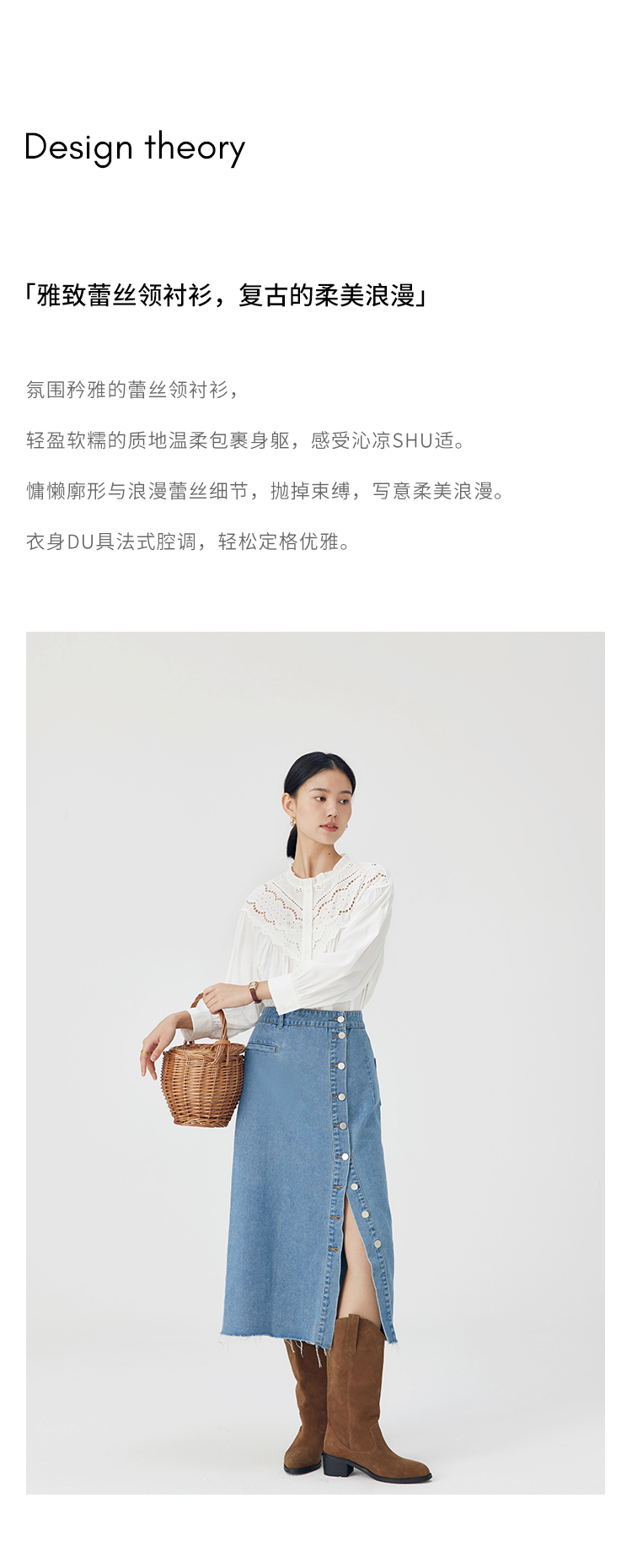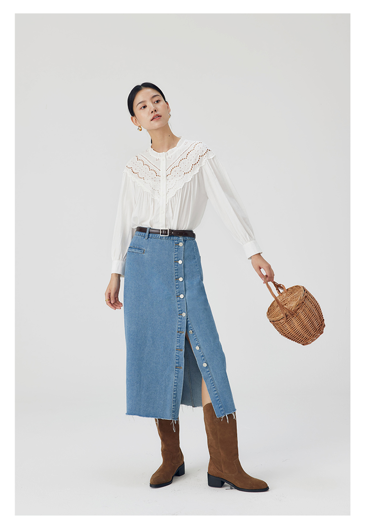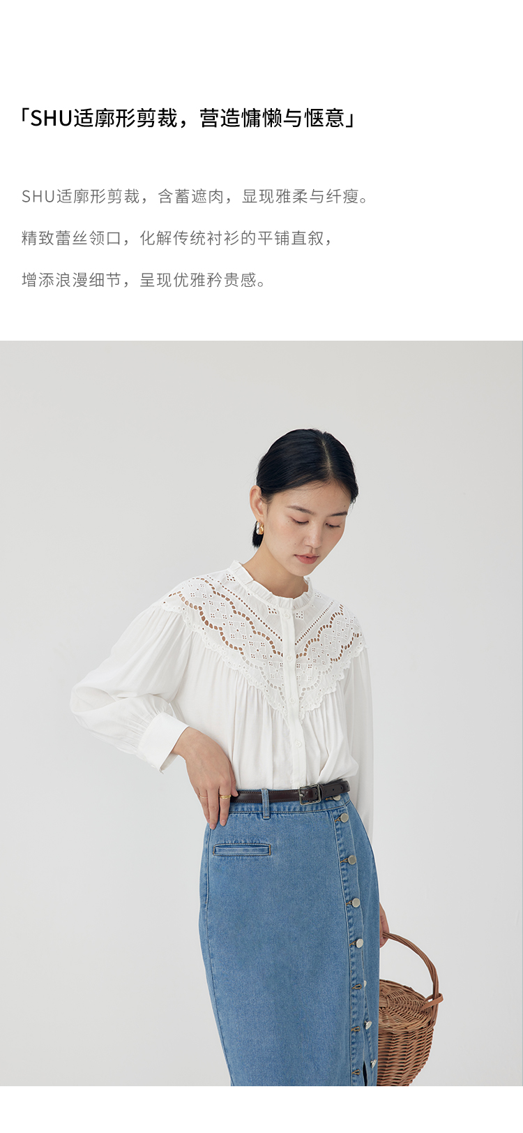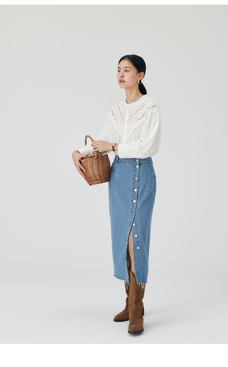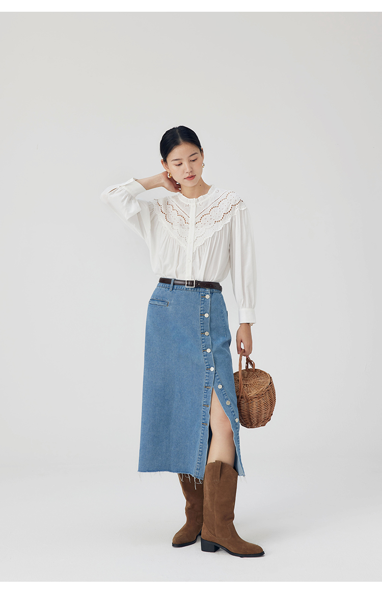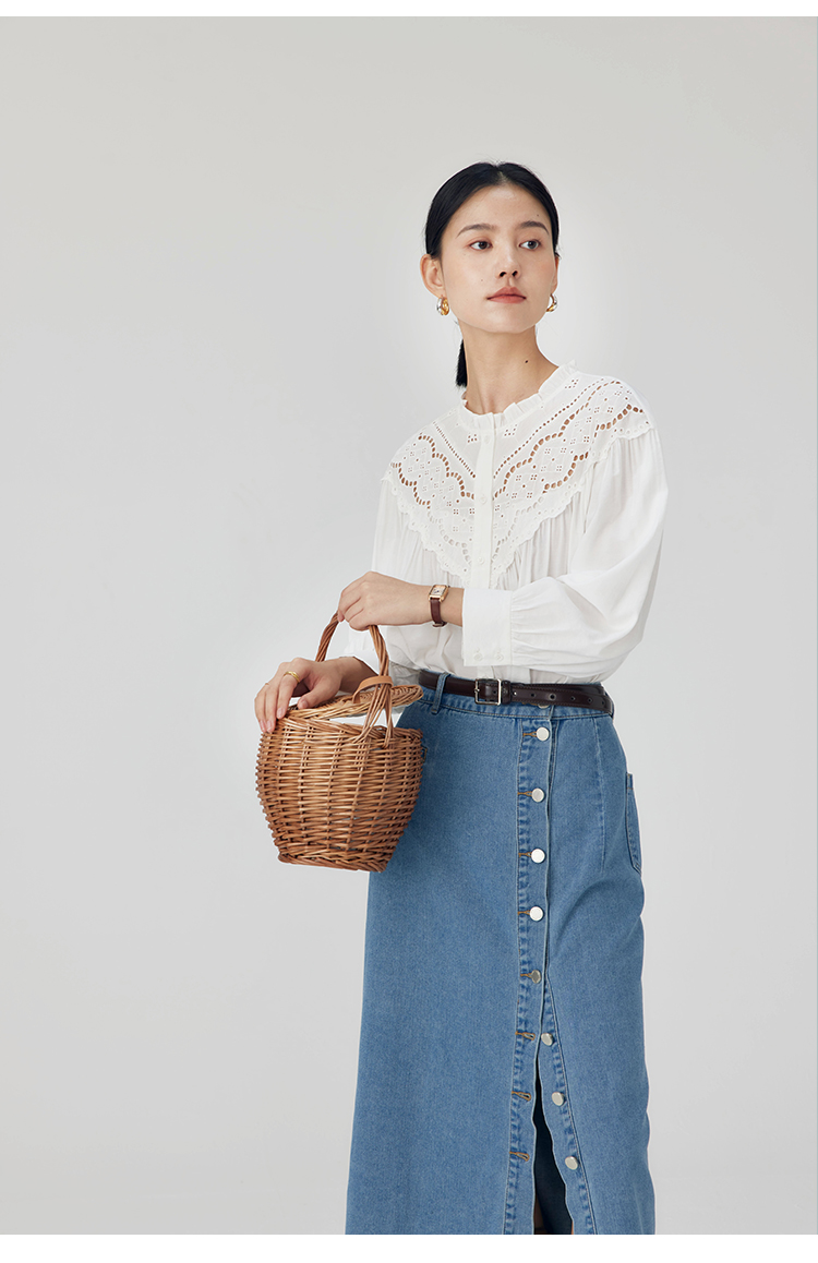 HeyDress蕾丝花边领衬衣女春秋法式复古宽松宫廷风长袖气质衬衣