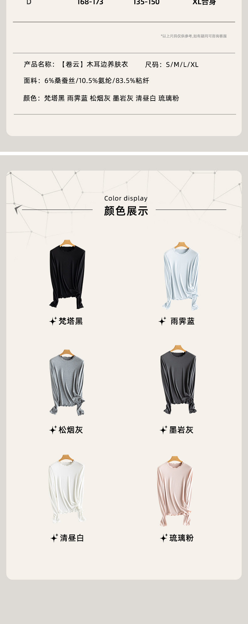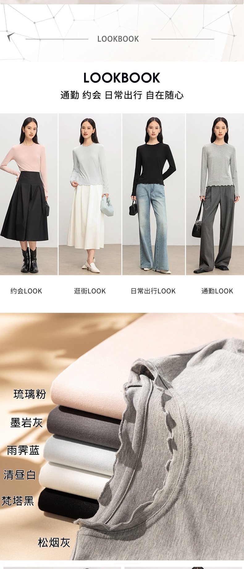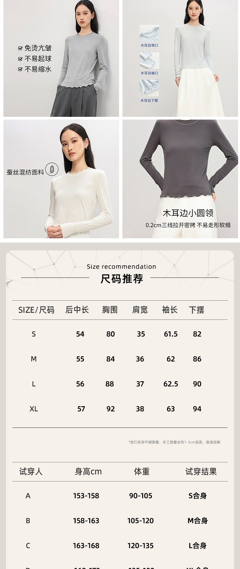 「自」全新升级【铂金会员146/天猫199/差价53】(21354)洛诗琳气质木耳边打底衫2026春季新款花边上衣领打底上衣女