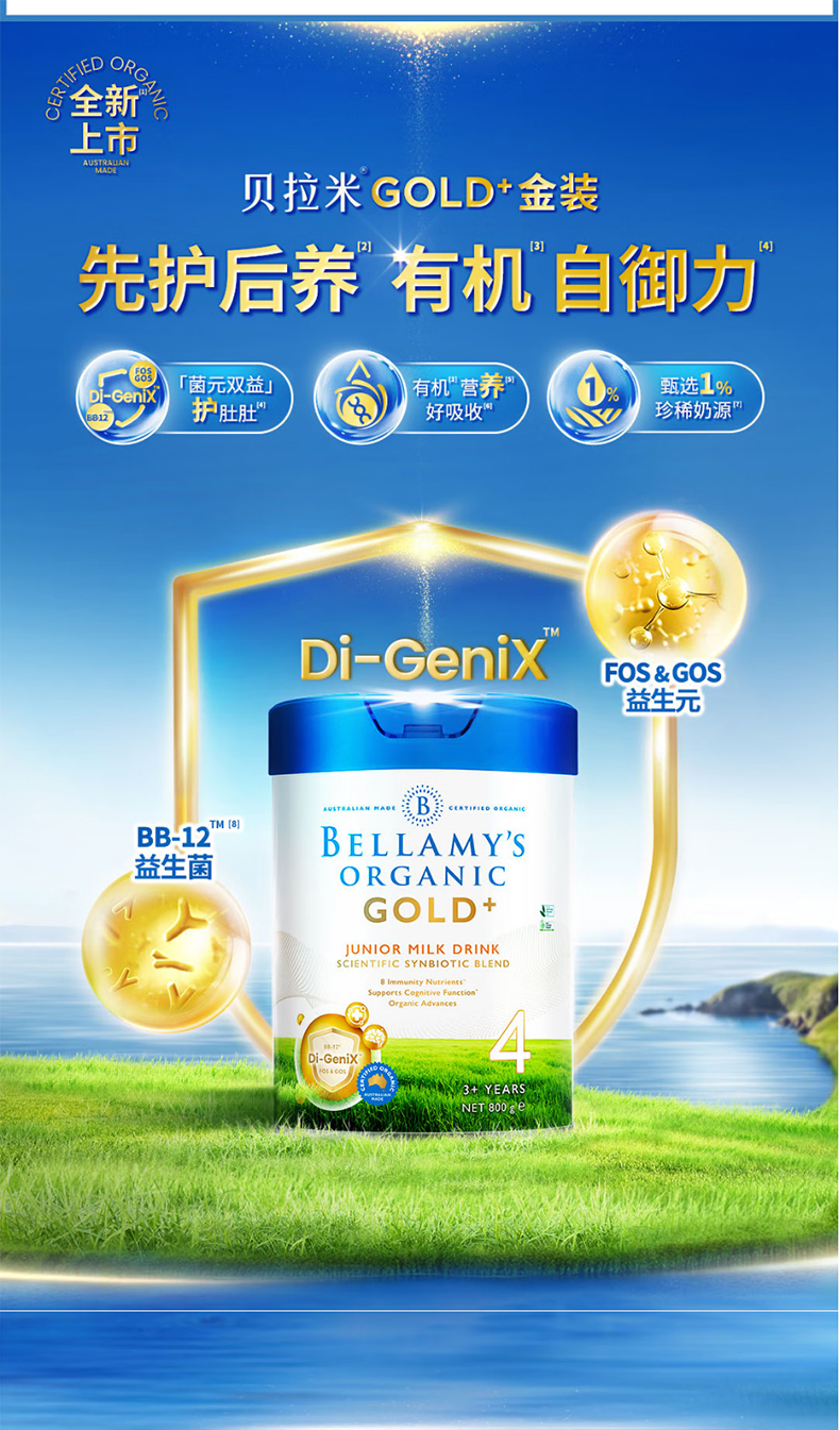 贝拉米(Bellamy)金装版GOLD有机儿童配方奶粉4段(3岁+) 800克/罐 澳洲进口