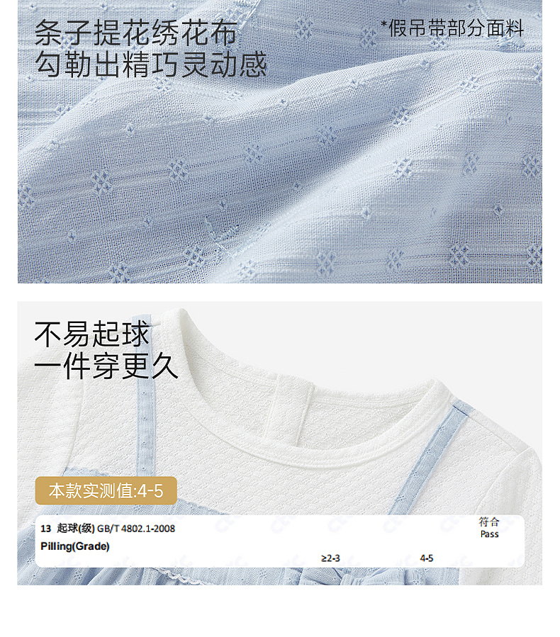 【商场同款】英氏儿童T恤女童长袖上衣春夏新百搭假两件圆领上衣