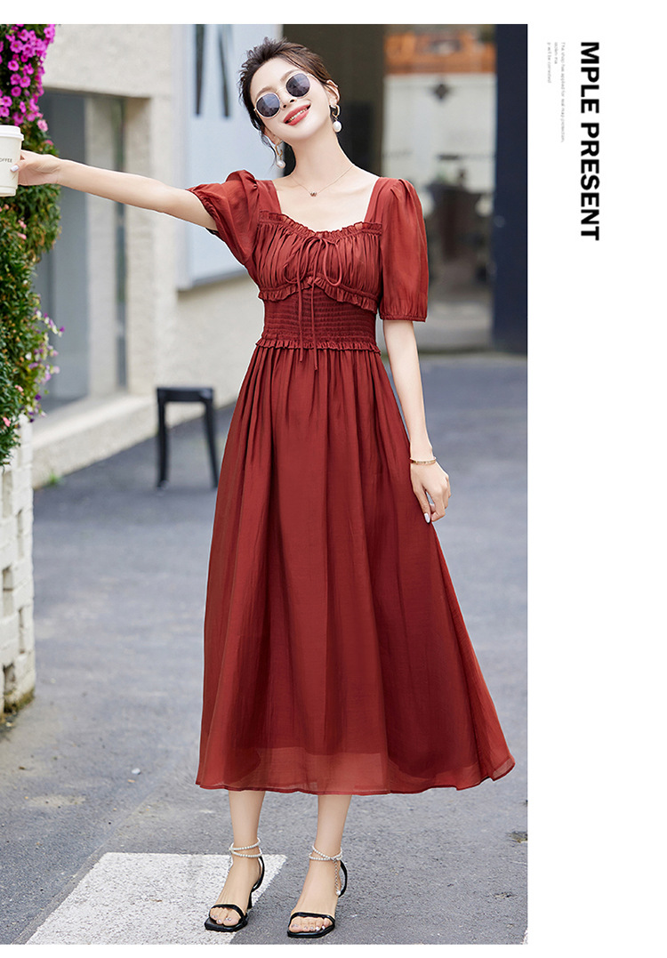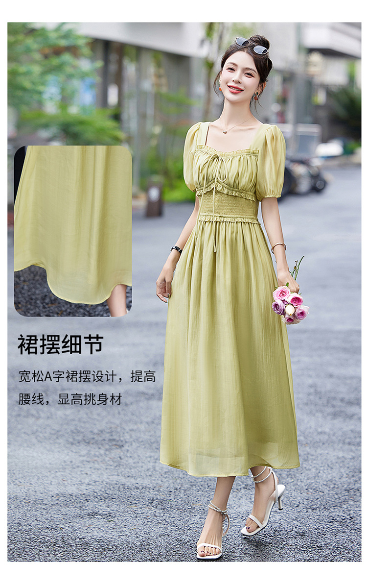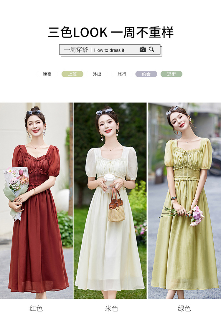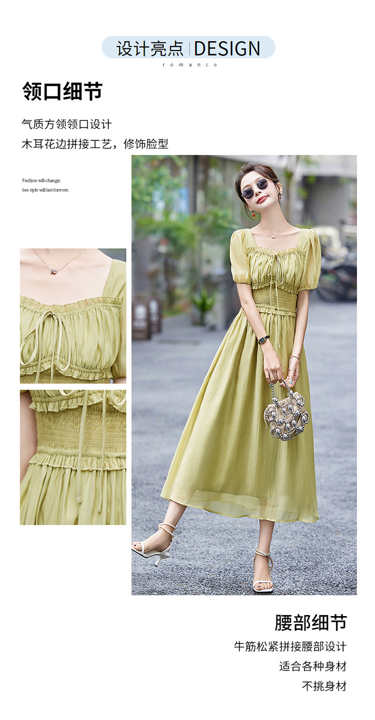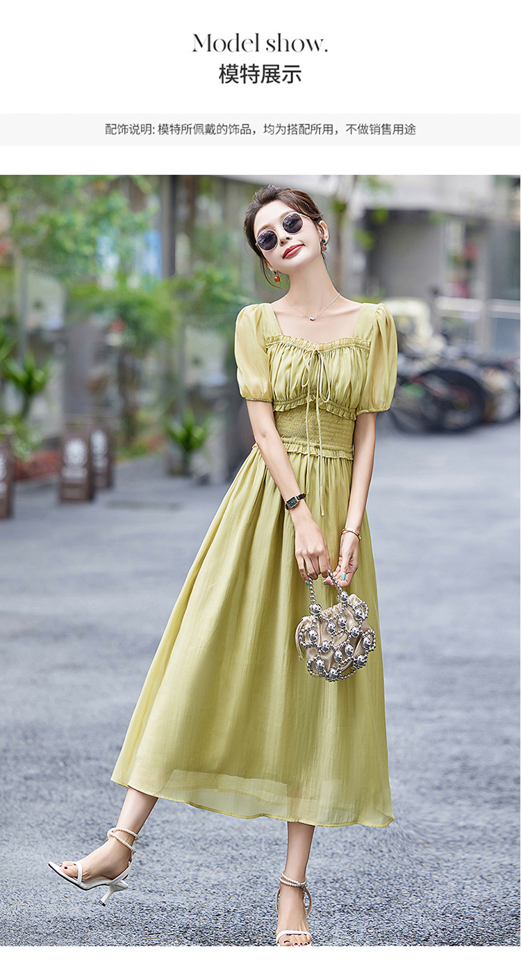 法式收腰气质天丝连衣裙女2025夏季新款弹力收腰显瘦洋气减龄裙子