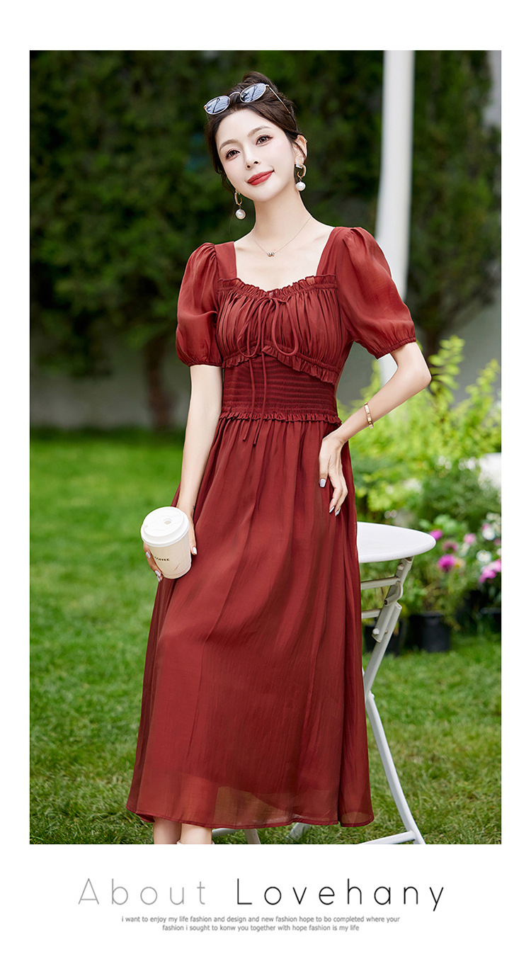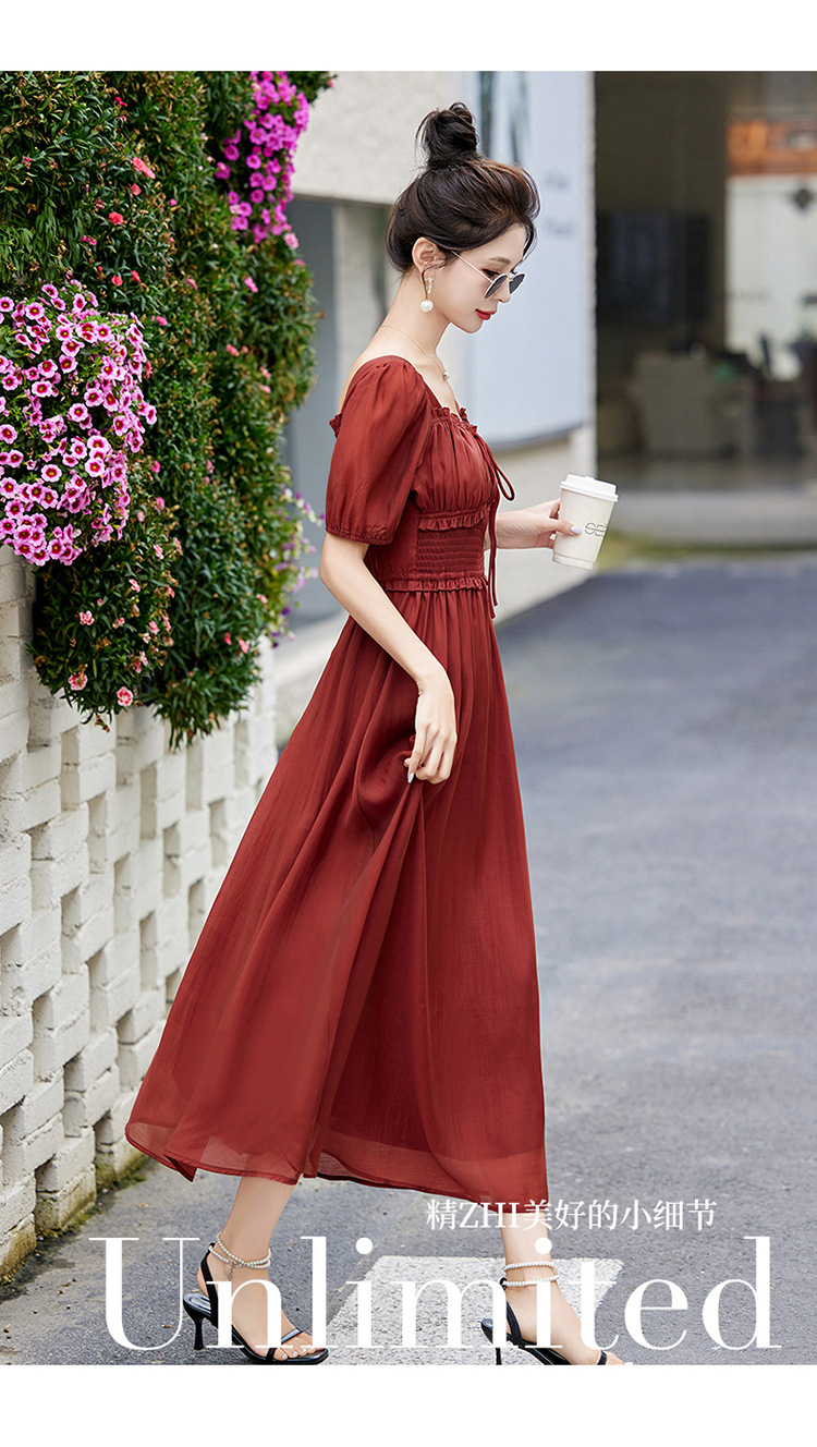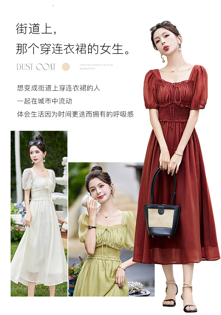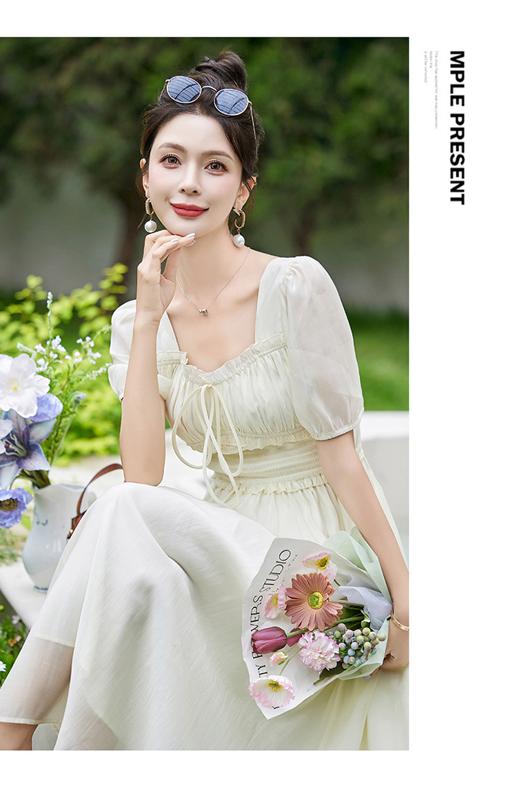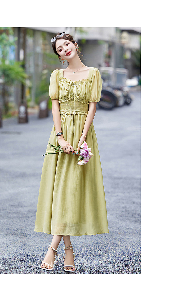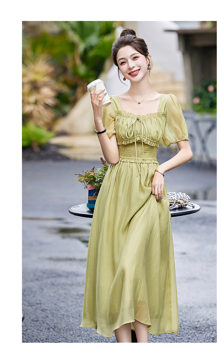 法式收腰气质天丝连衣裙女2025夏季新款弹力收腰显瘦洋气减龄裙子