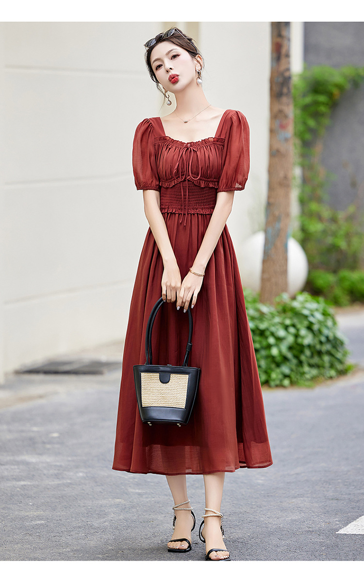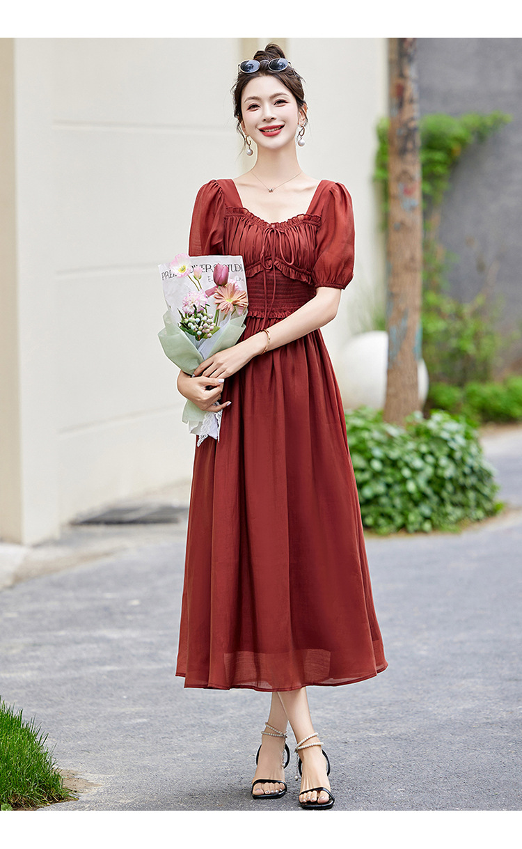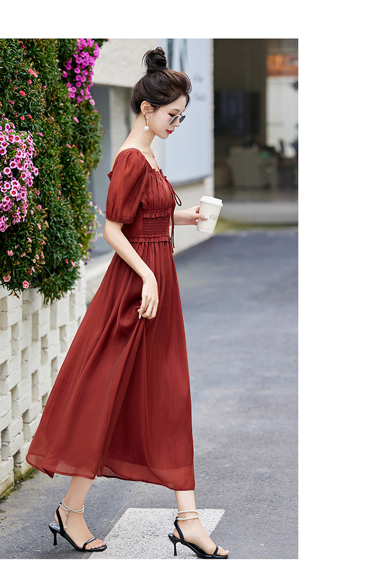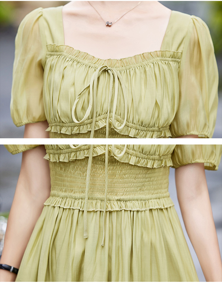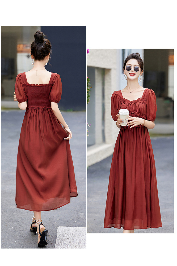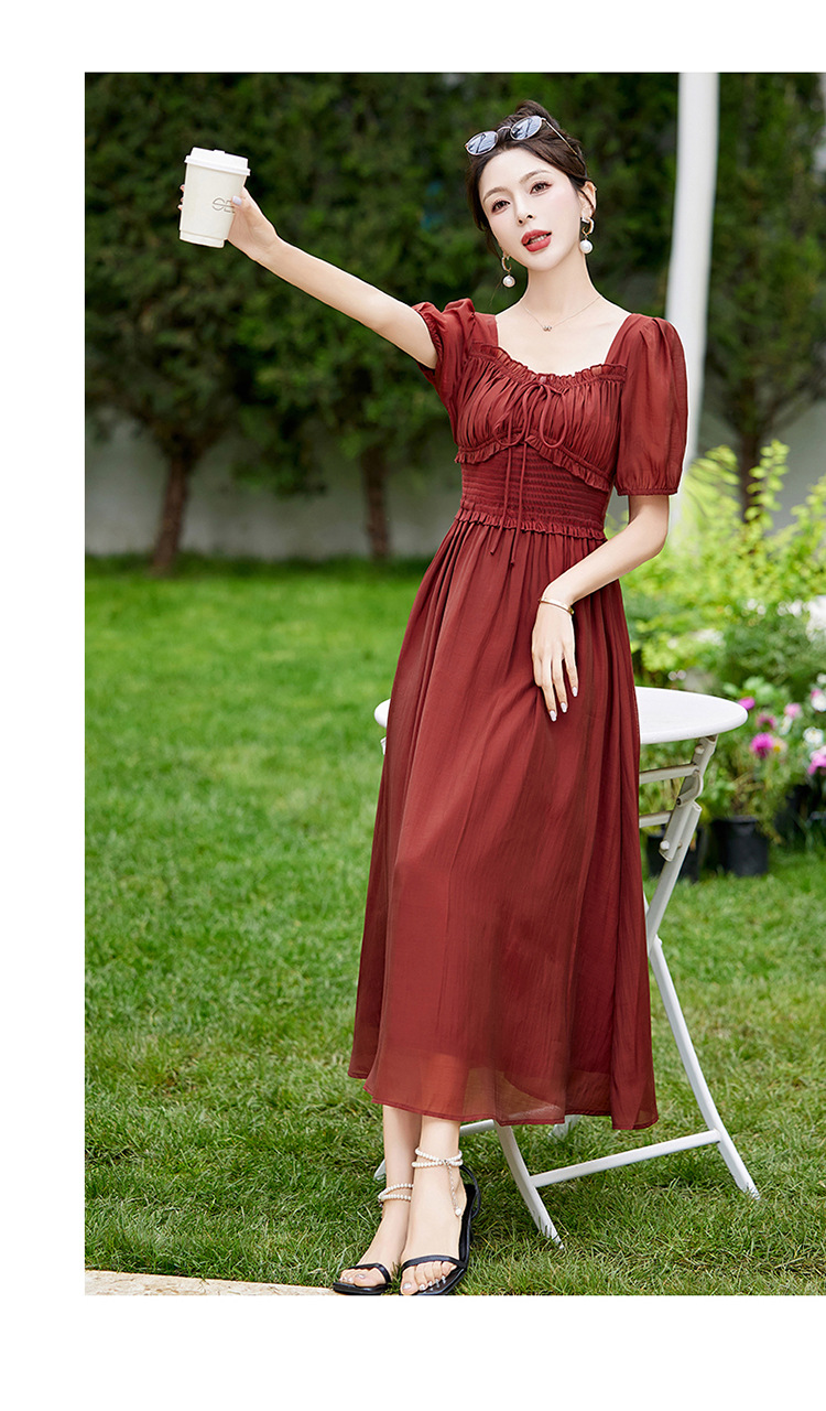 法式收腰气质天丝连衣裙女2025夏季新款弹力收腰显瘦洋气减龄裙子