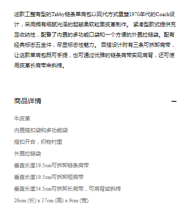 COACH蔻驰 CHAIN TABBY链带单肩包