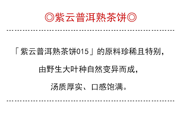 茶香记紫云普洱熟茶饼015野生紫芽自然变异量少珍贵发酵适度专业仓储甜柔醇厚